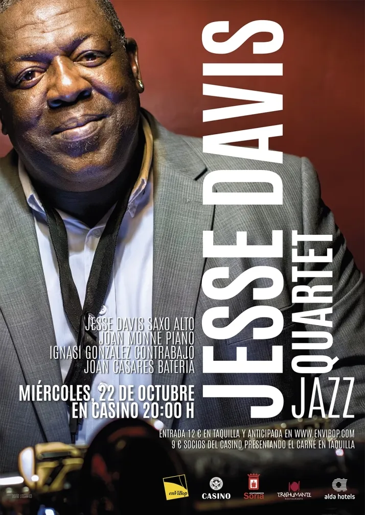 La asociación cultural 'en ViBop' da comienzo a su temporada de otoño con un concierto de jazz internacional. El saxofonista norteamericano Jesse Davis, originario de Nueva Orleans, actuará junto a su cuarteto el próximo miércoles, 22 de octubre, en el Casino Amistad-Numancia.