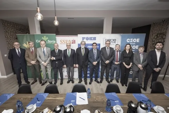 El encuentro ha contado con la participación de los presidentes de FOES, Santiago Aparicio; CEOE Teruel, Juan Ciércoles; y el secretario general de CEOE CEPYME Cuenca, Ángel Mayordomo. Por parte de las entidades financieras, han asistido los presidentes de Caja Rural de Soria, Carlos Martínez; Caja Rural de Teruel, José Cuevas; y Globalcaja, Mariano León.