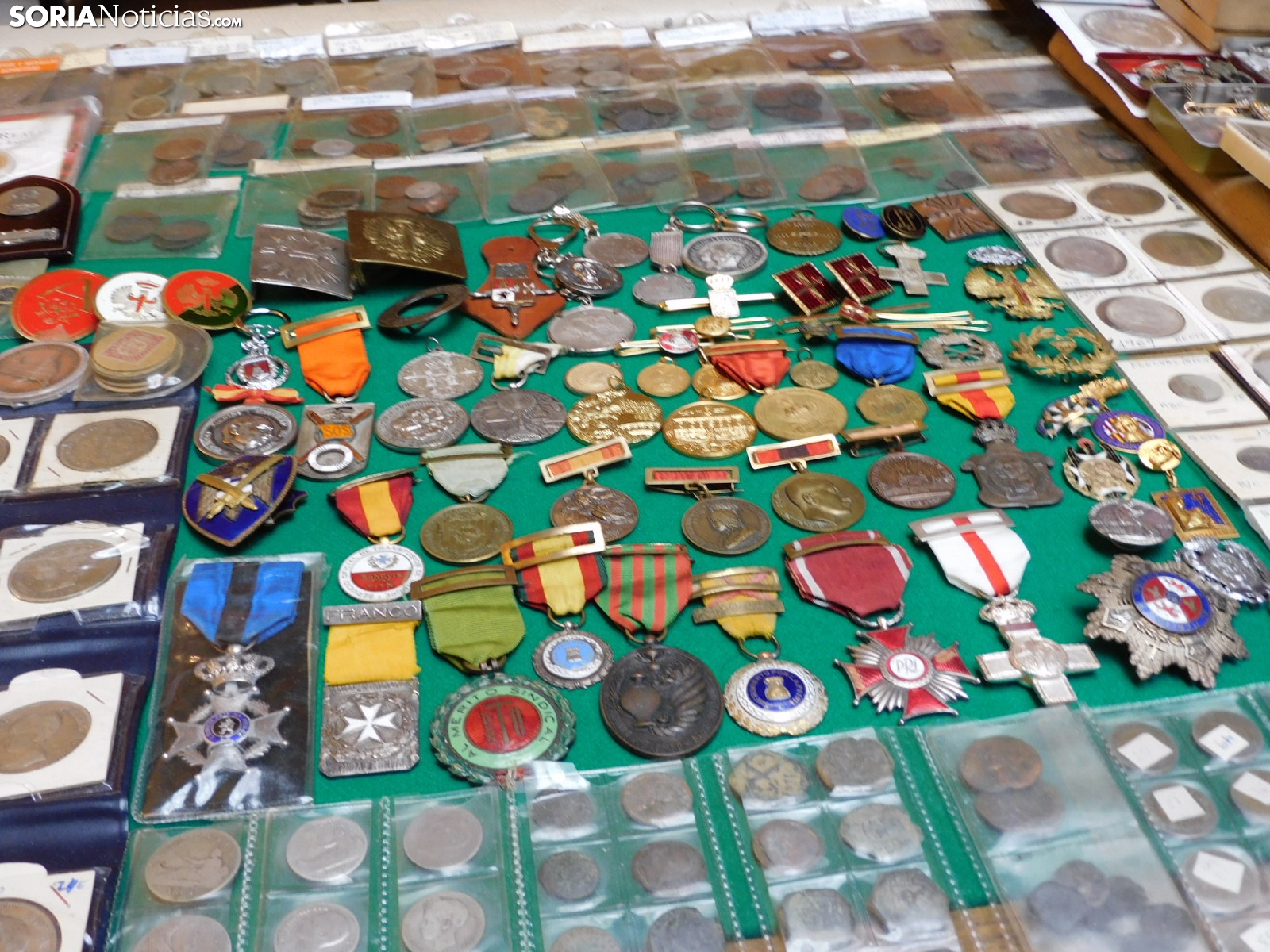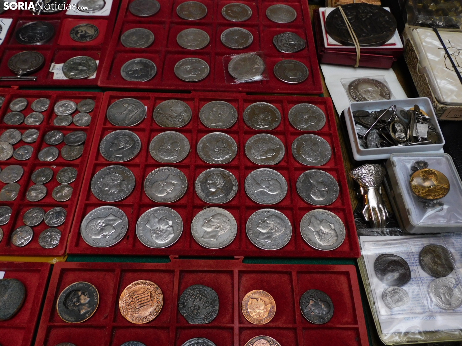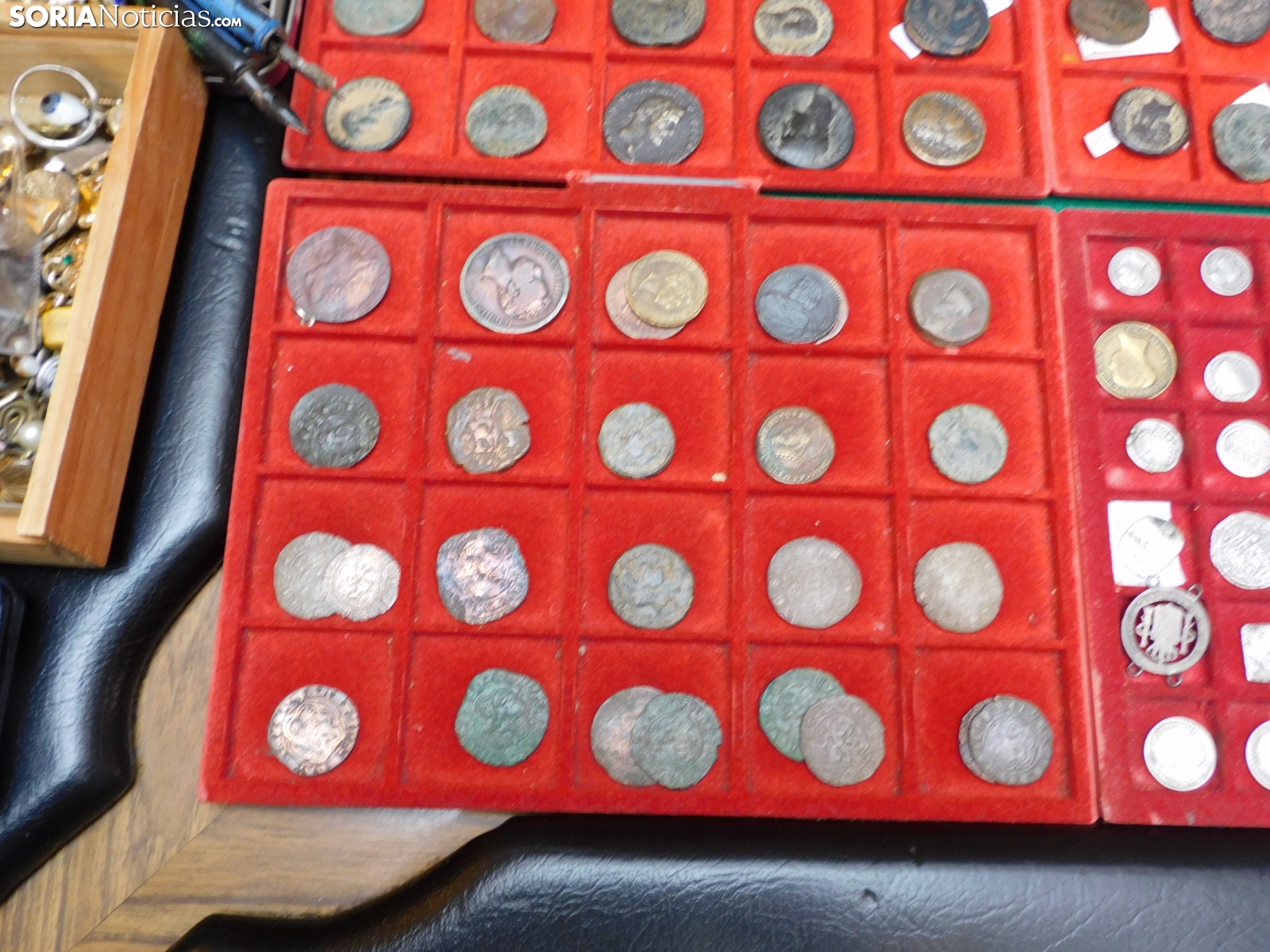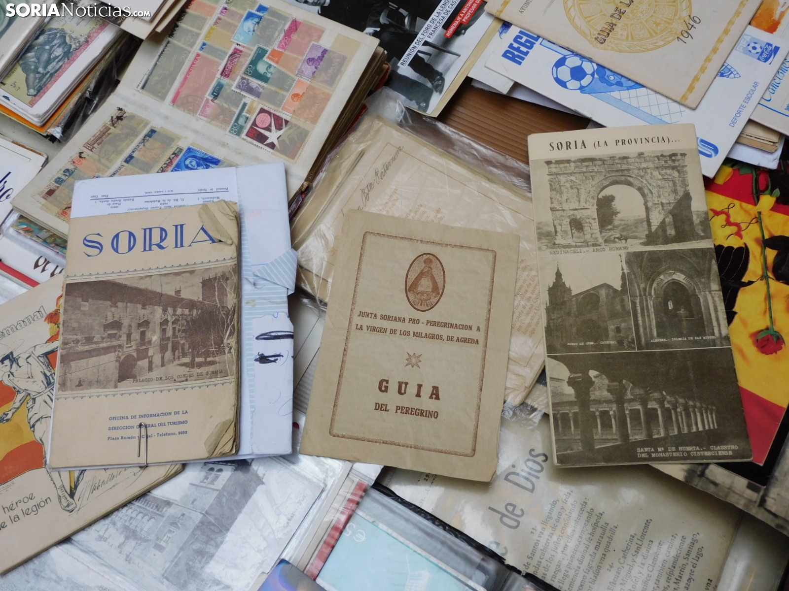 Pero el mercadillo es un mosaico de aficiones. Junto a las monedas, se exhiben medallas conmemorativas, postales antiguas de Soria y de toda España, e incluso curiosidades como programas de mano del antiguo cine Ideal de la capital, datados en 1936, en plena Guerra Civil. También hay espacio para la literatura local.