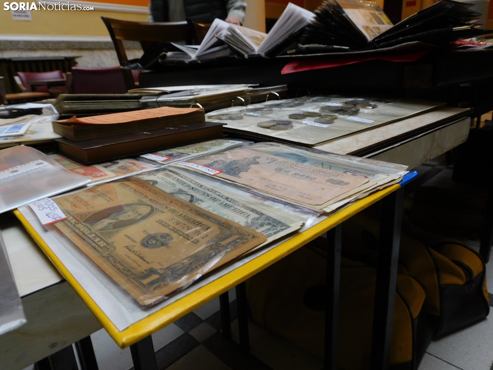 La Asociación Filatélica y Numismática Soriana retoma su mercadillo para coleccionistas en el emblemático edificio de la capital. En una época complicada para el coleccionismo, ofrecen una serie de productos que, en muchas ocasiones, son prácticamente imposibles de conseguir.