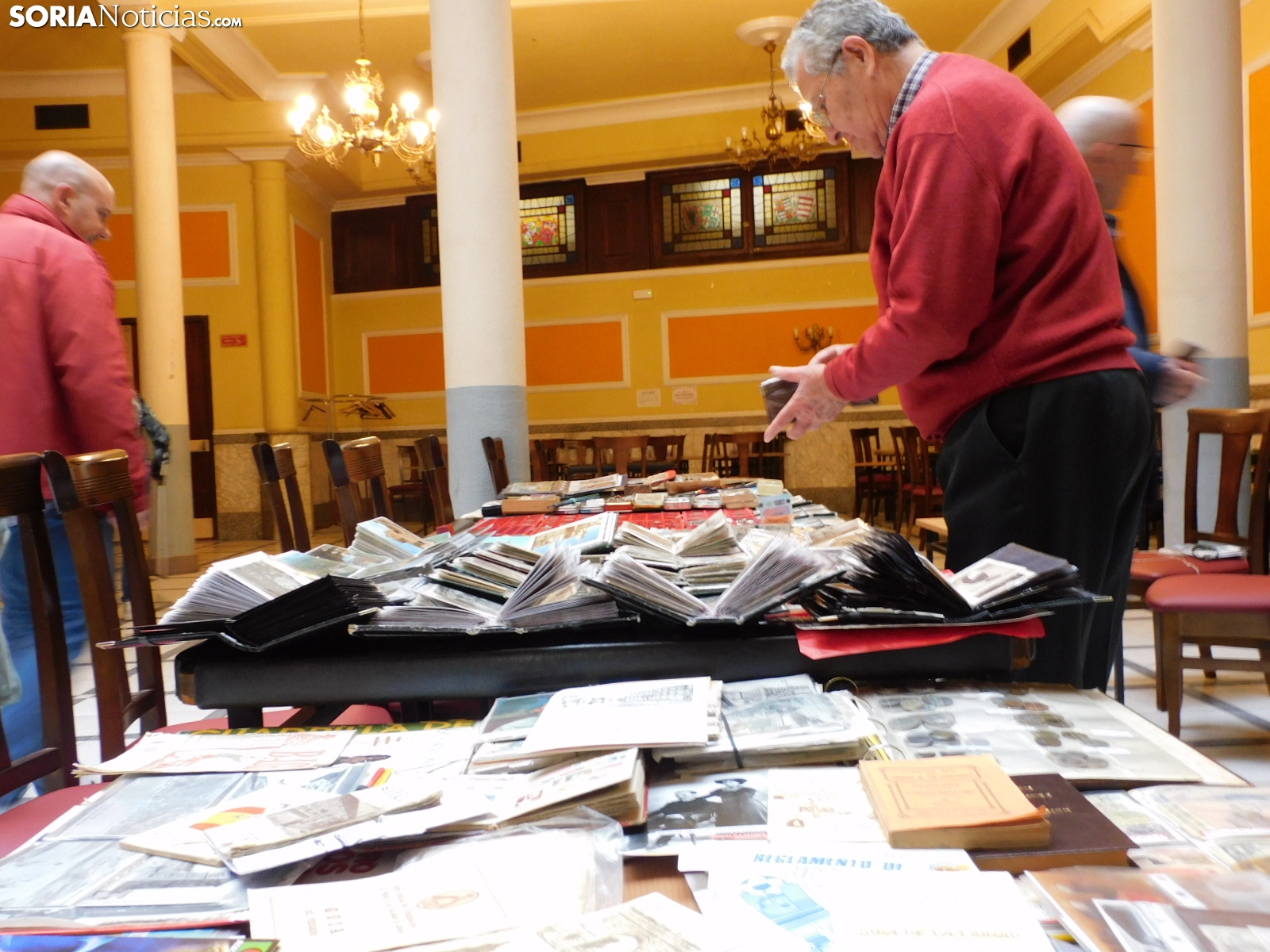 Este domingo, el Casino se han convertido en una cápsula del tiempo. Sobre las mesas, la historia de Soria y del mundo se despliega en forma de monedas, sellos, postales y oytos objetos de coleccionismo que han sobrevivido al olvido. Al frente de este pequeño universo de recuerdos se encuentra Rafael Romera Ibáñez, tesorero de la Asociación Filatélica y Numismática Soriana y el principal organizador de un mercadillo para coleccionistas que es mucho más que un punto de venta: es un bastión de la memoria colectiva.