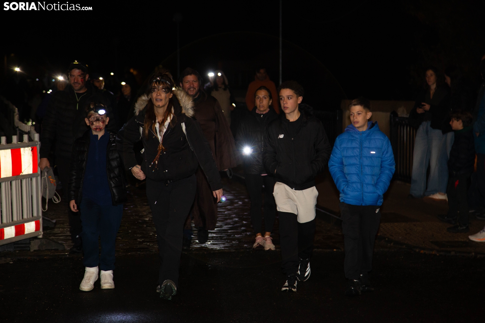 Centenares de personas -disfrazadas para la ocasión y más motivadas que de costumbre- de todas las edades han tomado parte en una nueva edición, esta noche de viernes, de la Carrera de las Ánimas, precisamente en los parajes que inspiraron a Gustavo Adolfo Bécquer para la leyenda que lleva este nombre. Con el cielo amenazando lluvia y temperaturas a la baja, los atletas han compartido escenario con personajes tenebrosos que surgían desde las tinieblas. Algún charco y el terreno resbaladizo han puesto la nota exigente a la prueba. El evento, de carácter no competitivo, destinará la totalidad de su recaudación a la Fundación Menudos Corazones, que apoya a niños con cardiopatías congénitas