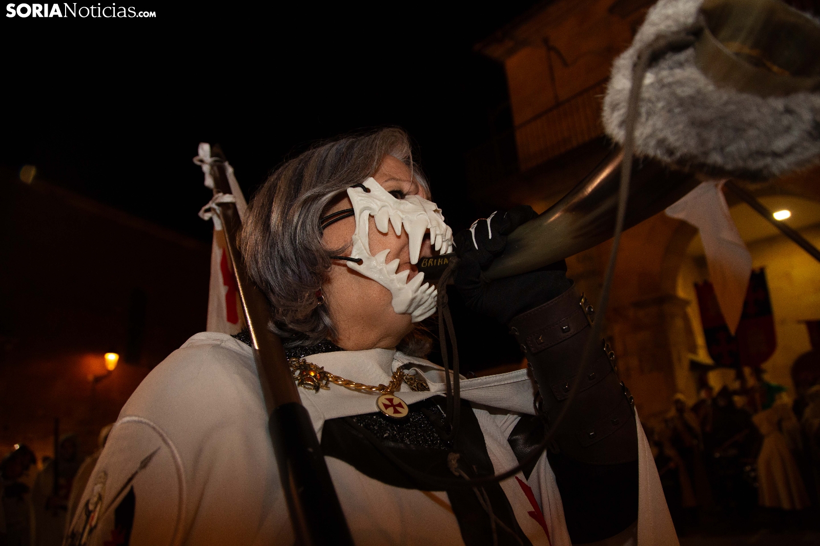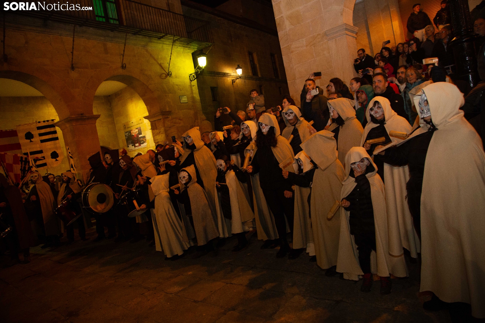 Soria ha vuelto a vivir una de sus noches más especiales con la celebración del Desfile de las Ánimas, una cita declarada Fiesta de Interés Turístico Regional que cada 31 de octubre llena las calles de fuego, misterio, tradición y cultura. Centenares de vecinos y visitantes han acompañado a las antorchas por el corazón de la ciudad, en un recorrido que combina leyenda, percusión y simbolismo ancestral. Cita multitudinaria la de esta tarde-noche de viernes, sin excesivo frío, con novedades en la representación y con más que numerosa participación, tanto en la comitiva como en el público.