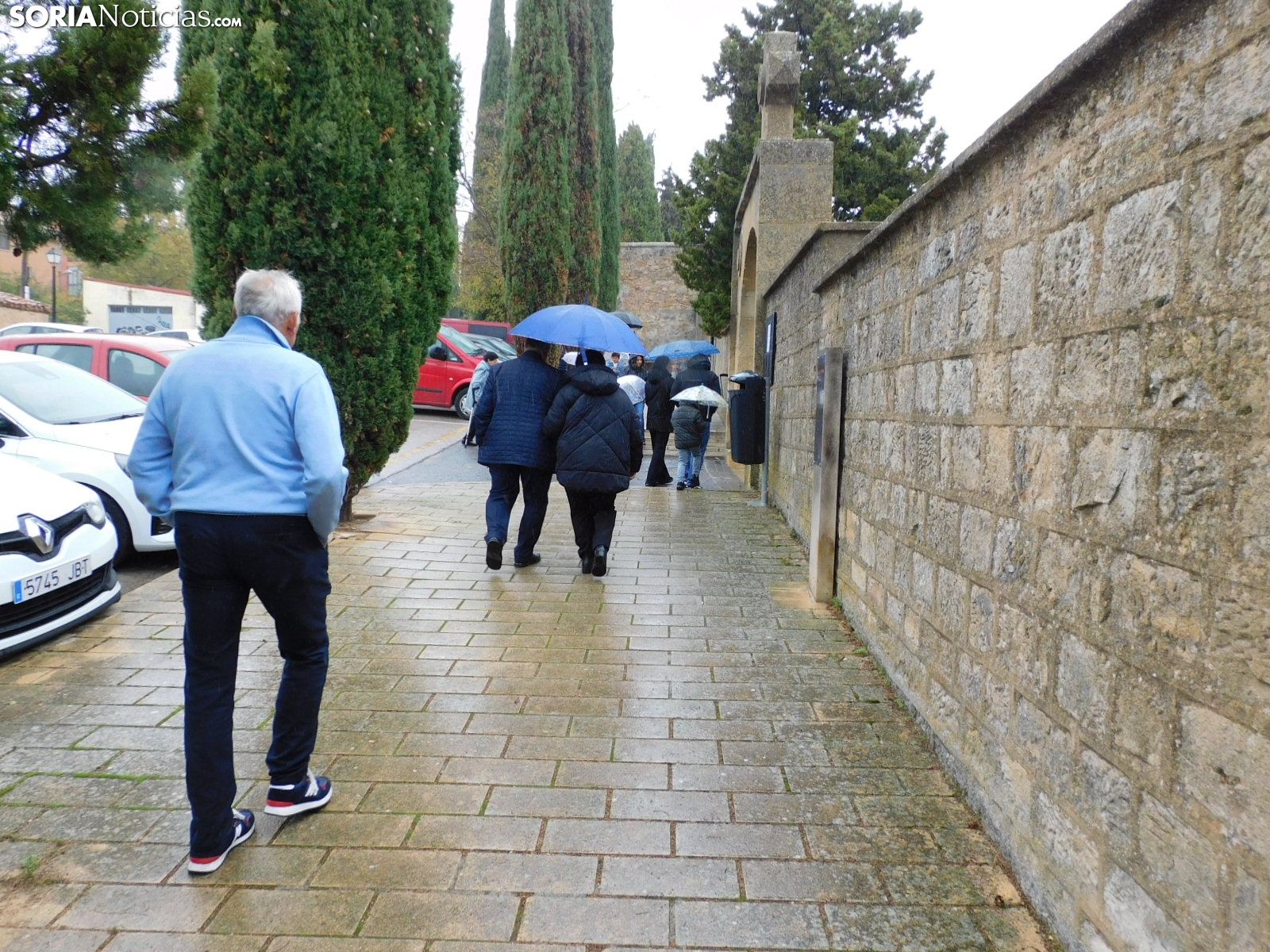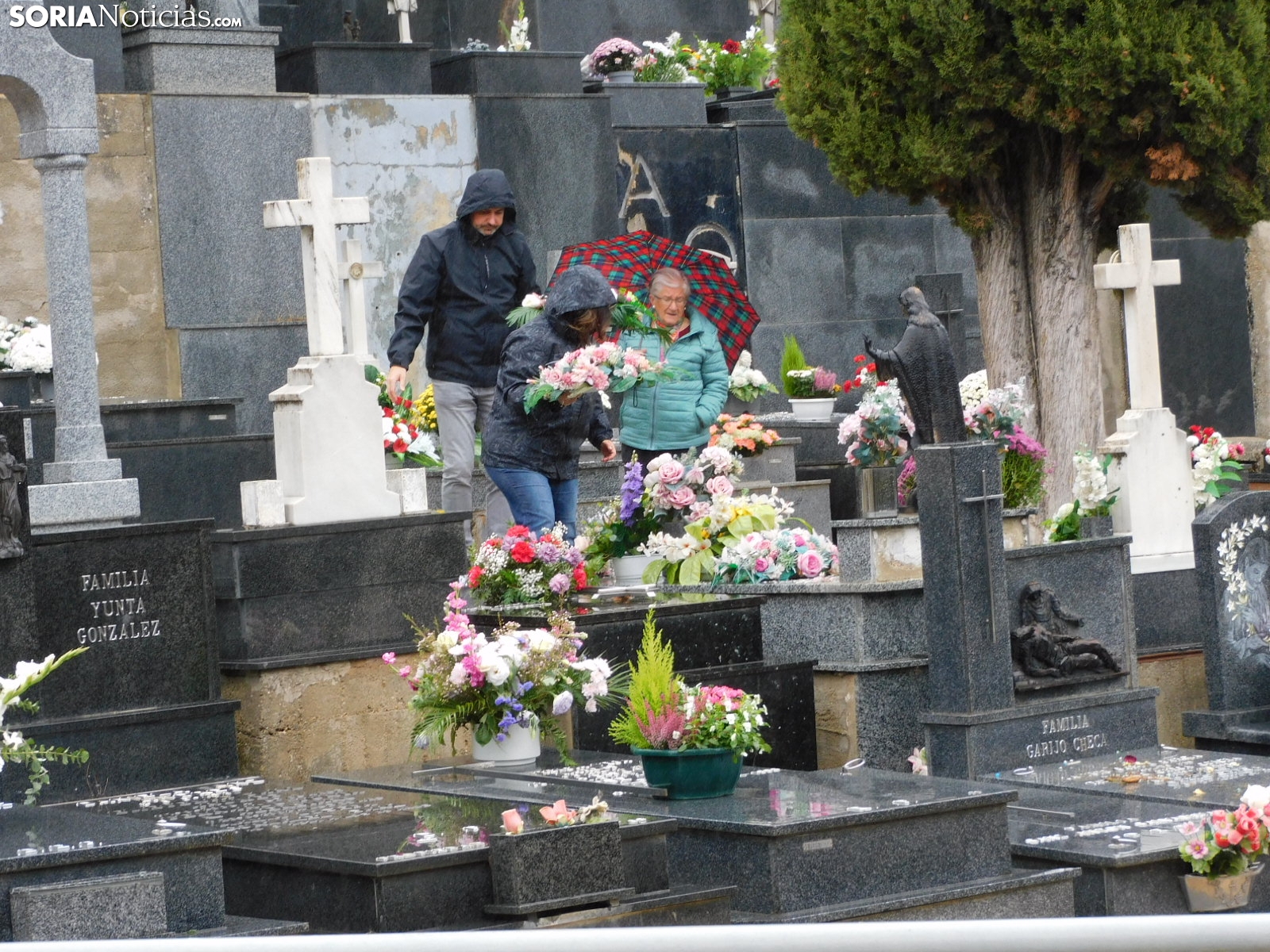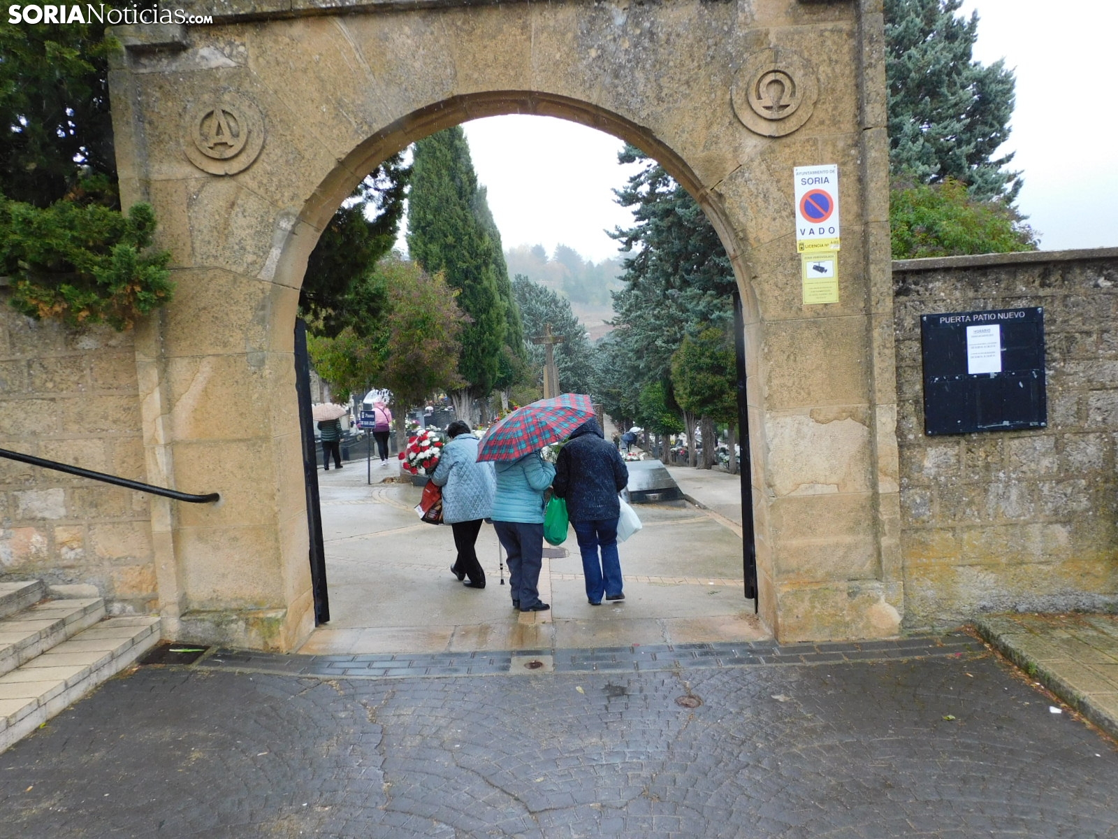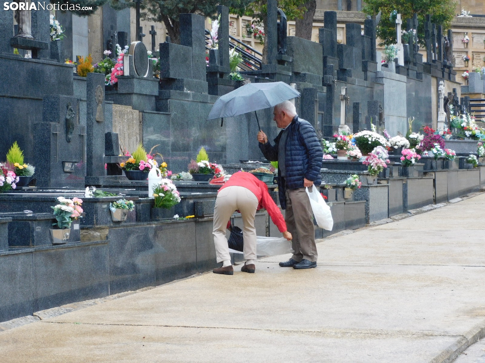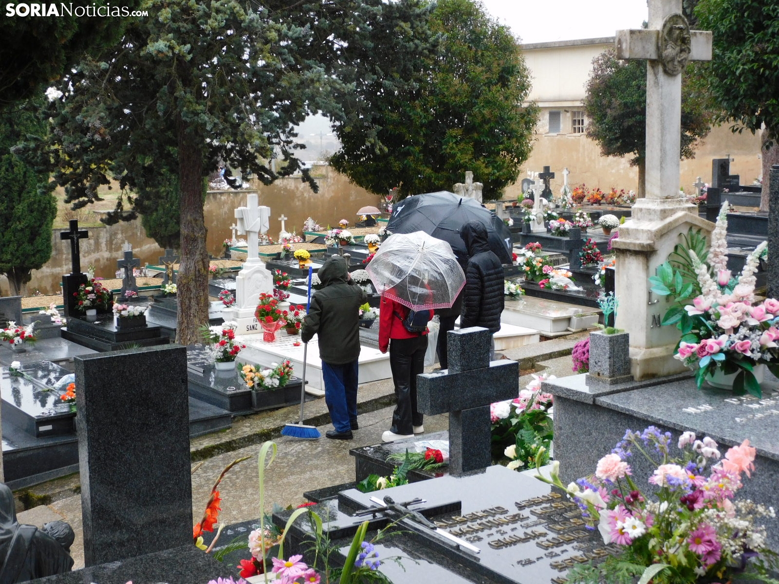 Centenares de personas han acudido esta mañana al cementerio de El Espino de Soria capital para visitar a sus difuntos en el día de Todos Los Santos. A pesar del mal tiempo, los sorianos, con sus respectivos paraguas, se han acercado hasta el recinto. Sin duda, una de las tumbas más visitadas ha vuelto a ser la de Leonor Izquierdo, esposa de Antonio Machado.