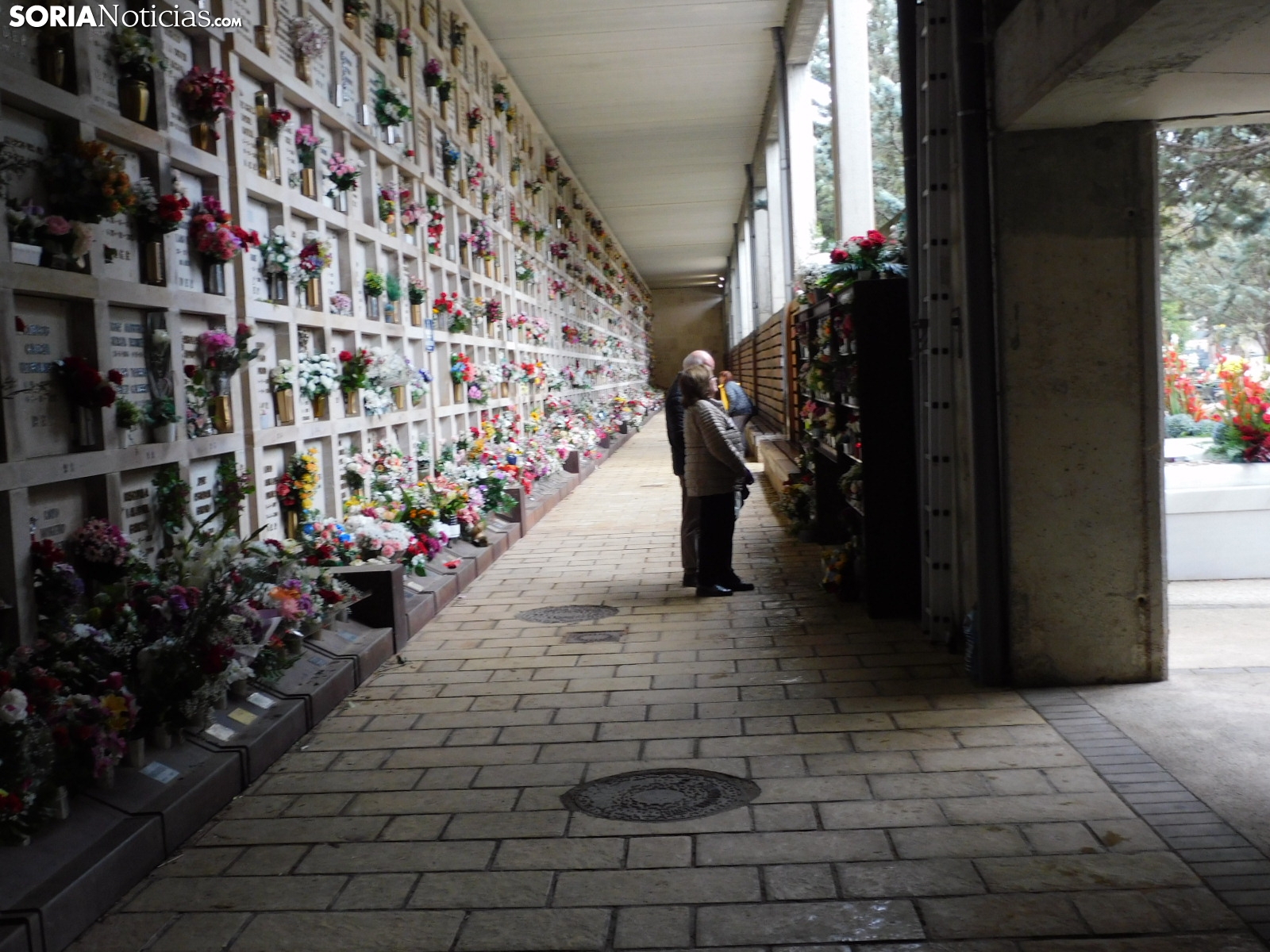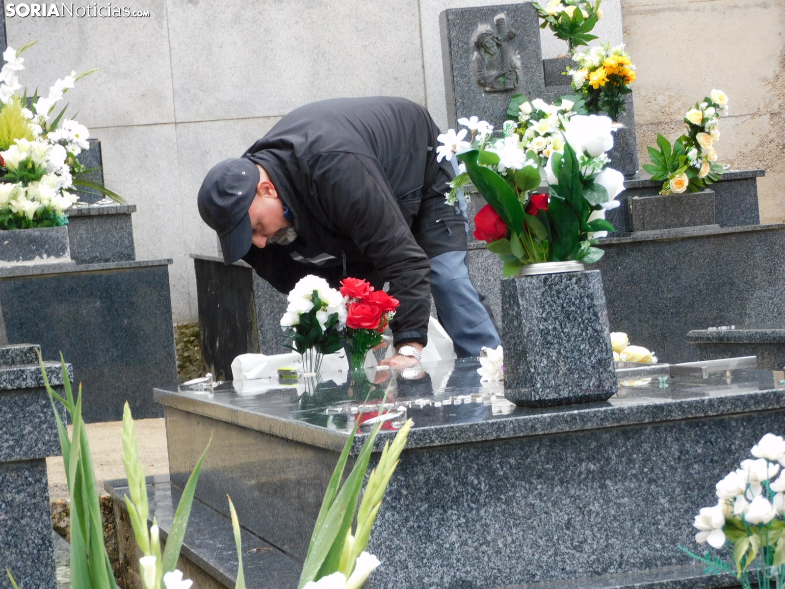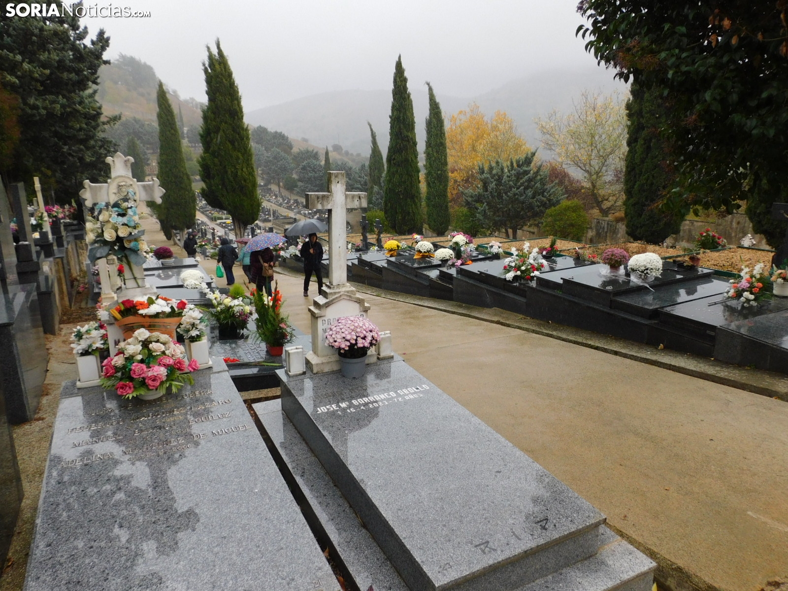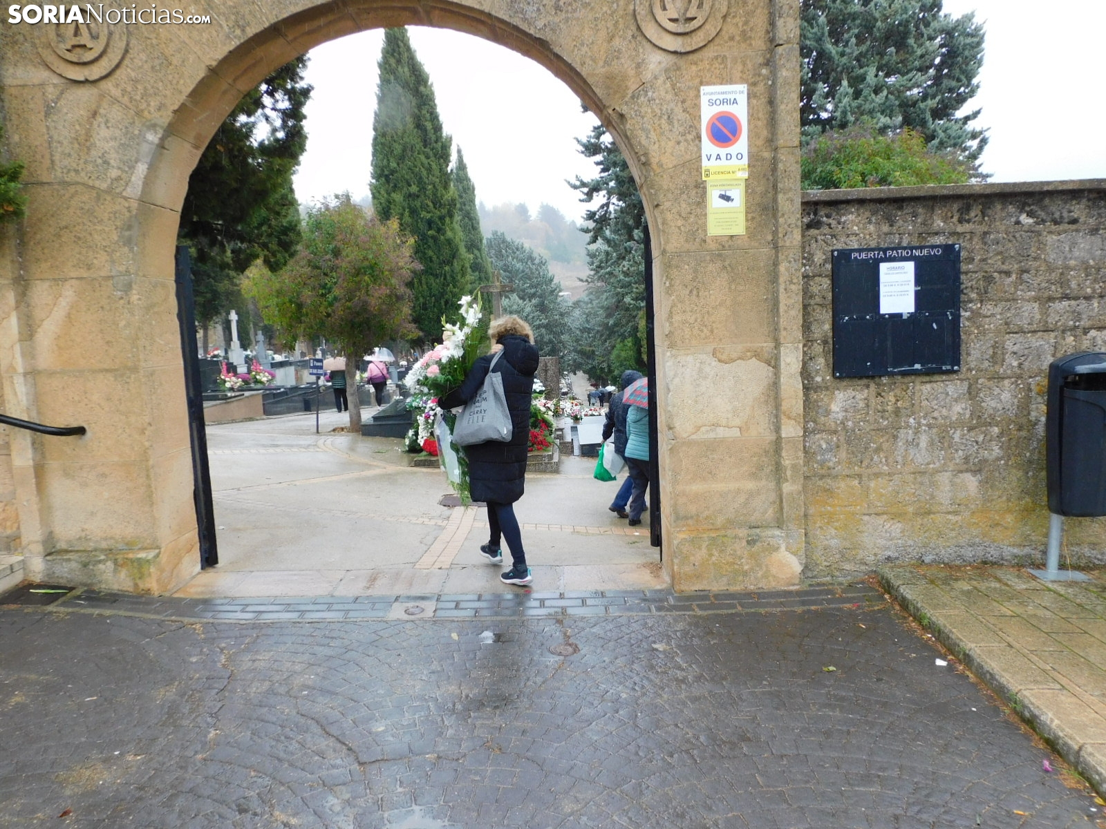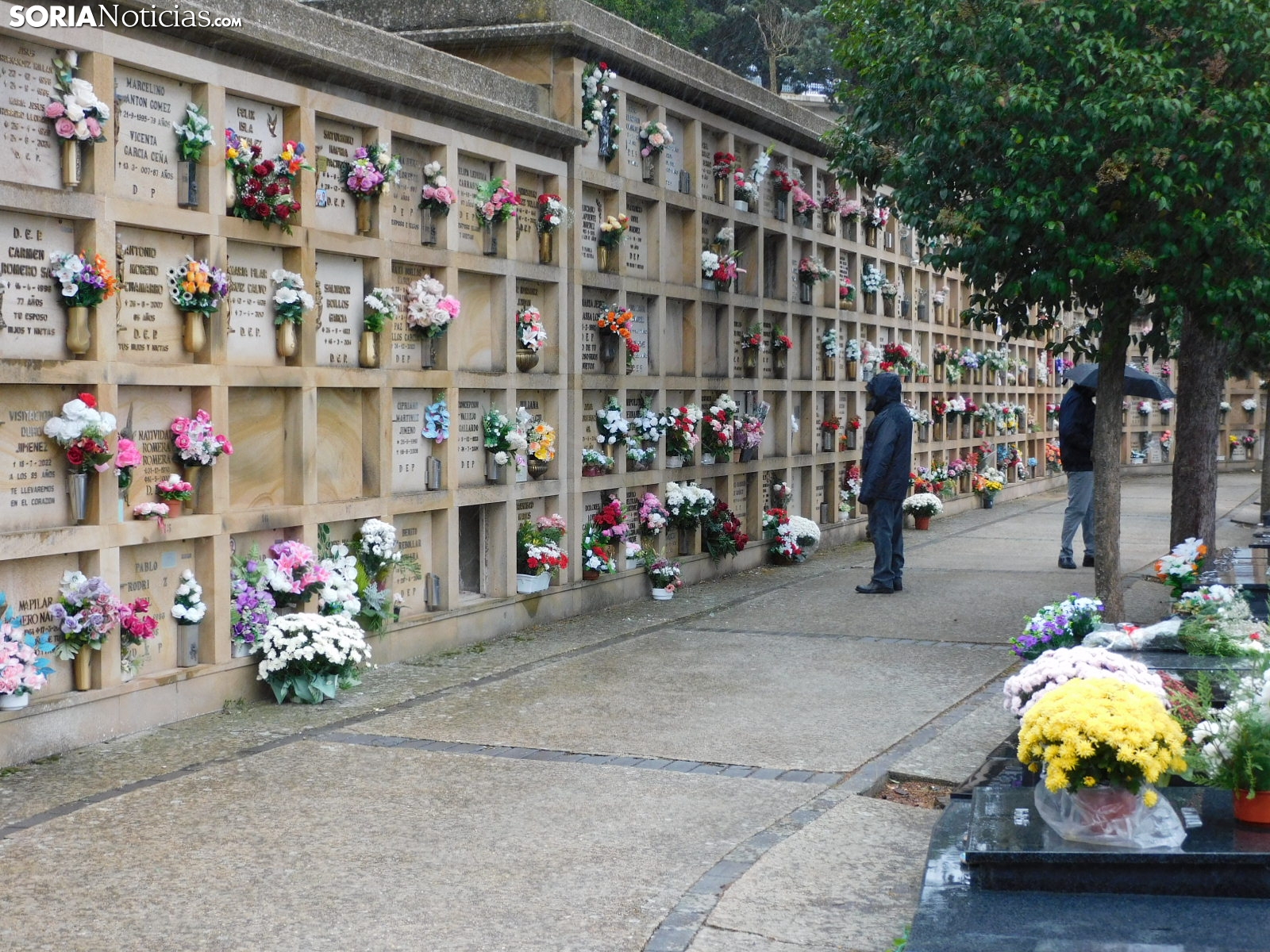 Centenares de personas han acudido esta mañana al cementerio de El Espino de Soria capital para visitar a sus difuntos en el día de Todos Los Santos. A pesar del mal tiempo, los sorianos, con sus respectivos paraguas, se han acercado hasta el recinto. Sin duda, una de las tumbas más visitadas ha vuelto a ser la de Leonor Izquierdo, esposa de Antonio Machado.
