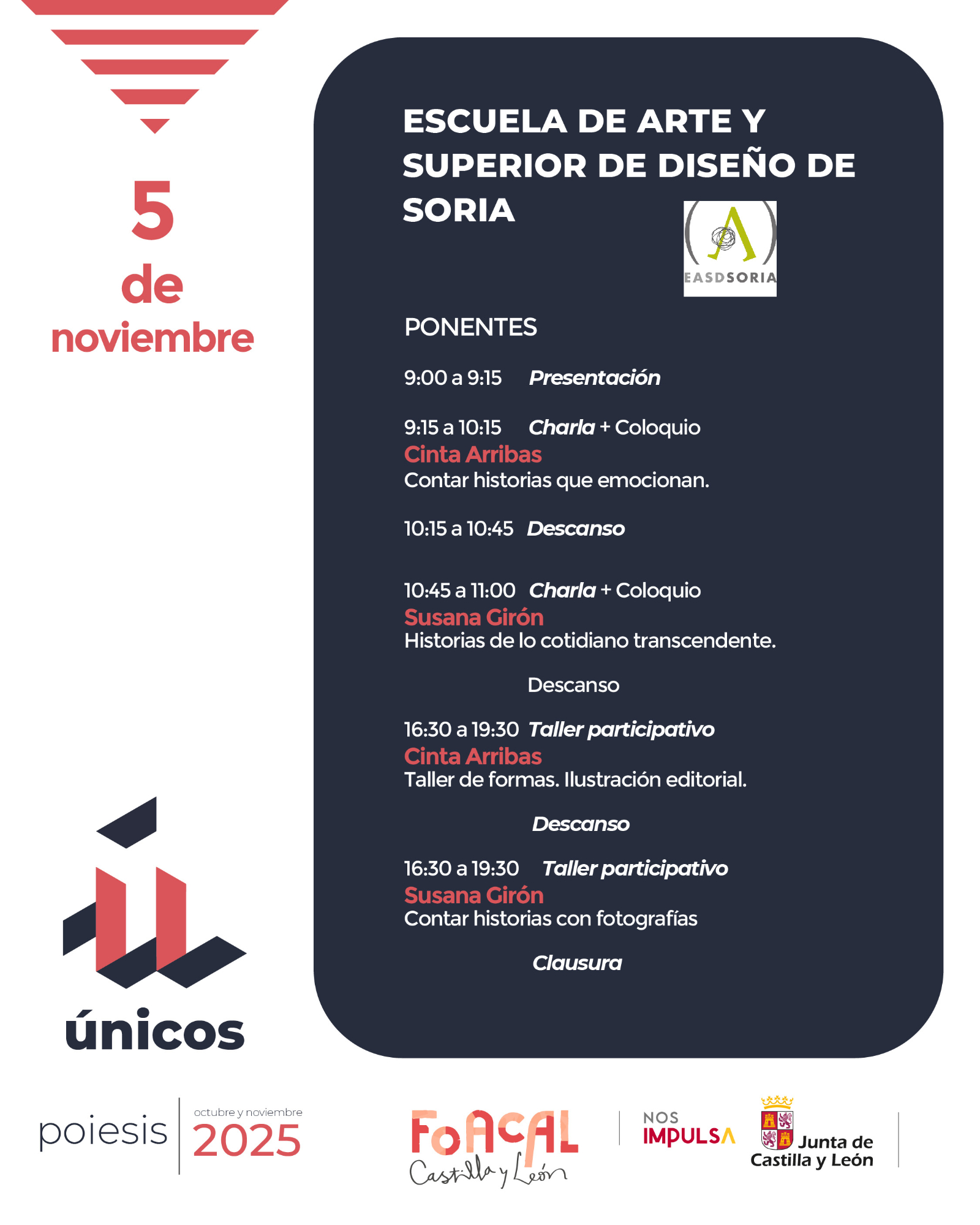 Ambas artistas presentarán sus trabajos y compartirán sus experiencias en sendas ponencias durante la mañana. Por la tarde, dirigirán talleres prácticos y participativos diseñados para que los estudiantes puedan aplicar los conocimientos adquiridos y desarrollar sus propias ideas creativas.
