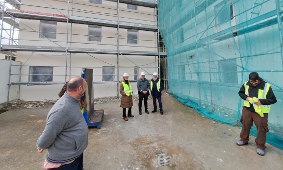 El subdelegado del Gobierno en Soria, Miguel Latorre, acompañado por el teniente coronel jefe de la Comandancia, Sergio Peñarroya, ha visitado este martes las obras de mejora energética que se están llevando a cabo en el acuartelamiento de Gómara. Esta actuación se financia a través del Plan de Recuperación, Transformación y Resiliencia (PRTR) y cuenta con un presupuesto total de 535.486 euros.