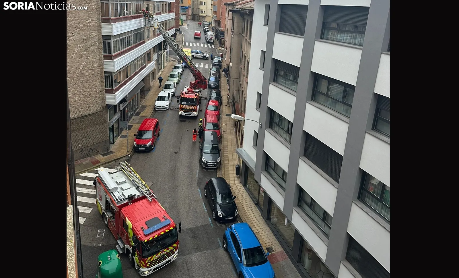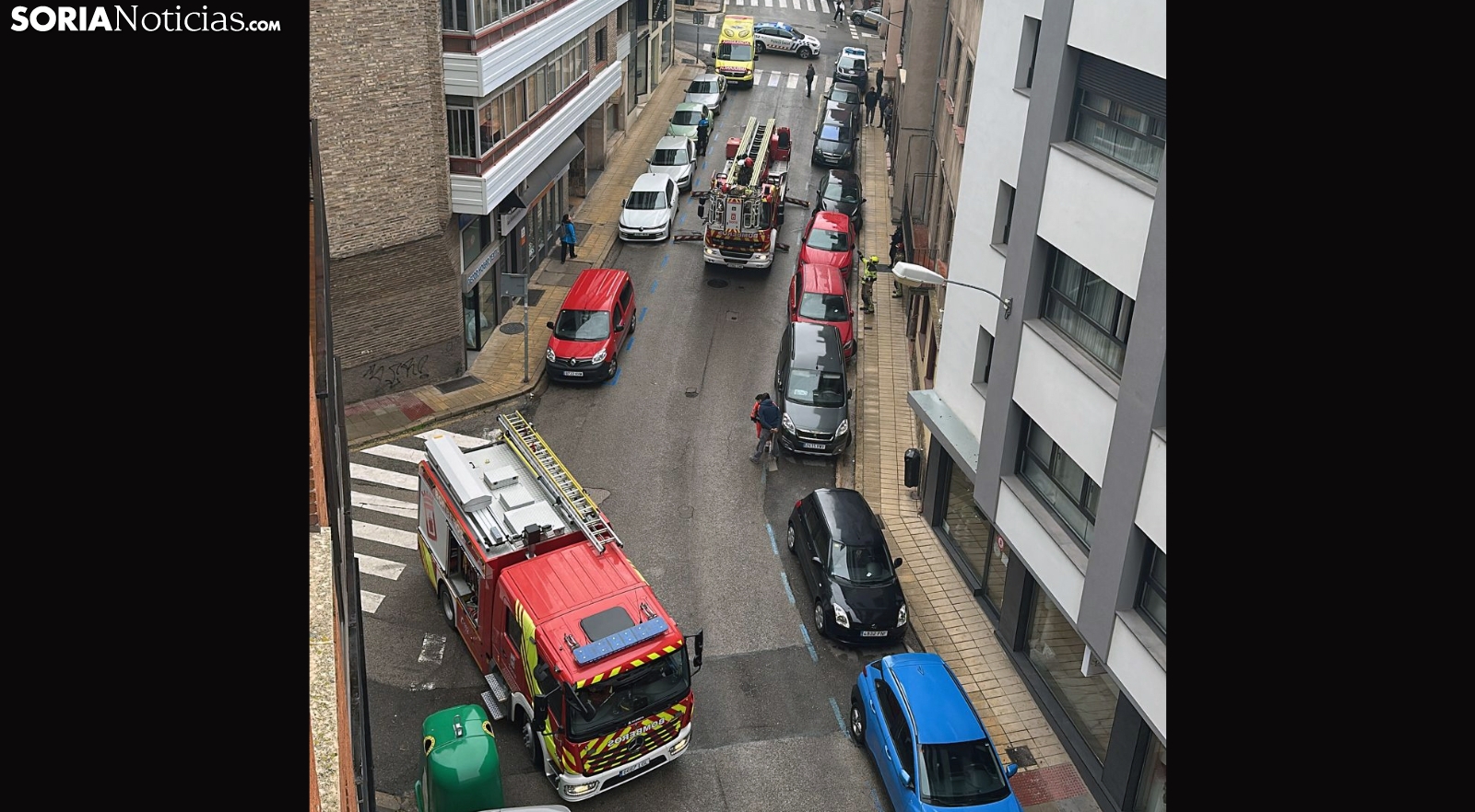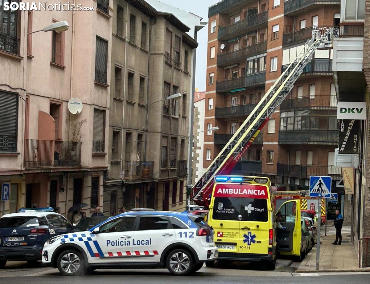 Poco antes de las once de esta mañana de viernes un amplio despliegue de emergencias hacía acto de presencia en la calle Cortes de Soria, concretamente a la altura del número 3.
