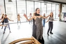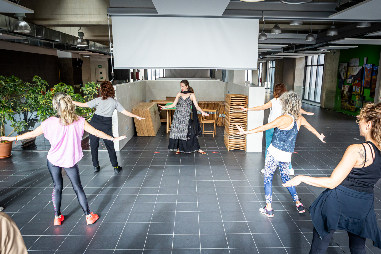 El taller organizado en el marco del Certamen de Cortos ha sido concebido como una sesión de iniciación, abierta a todo el mundo sin necesidad de formación previa. Lamas adapta la complejidad de las coreografías al nivel del grupo.