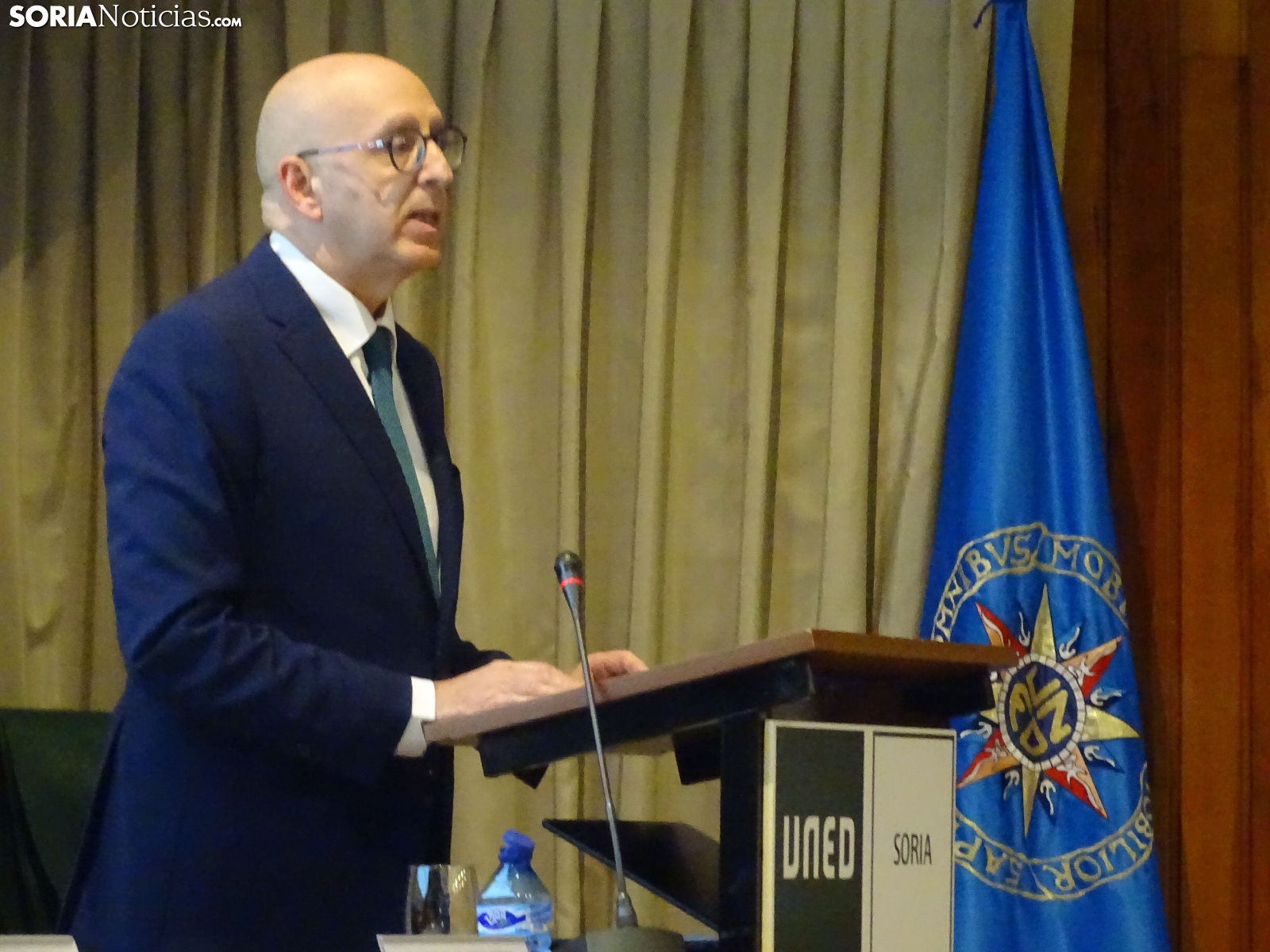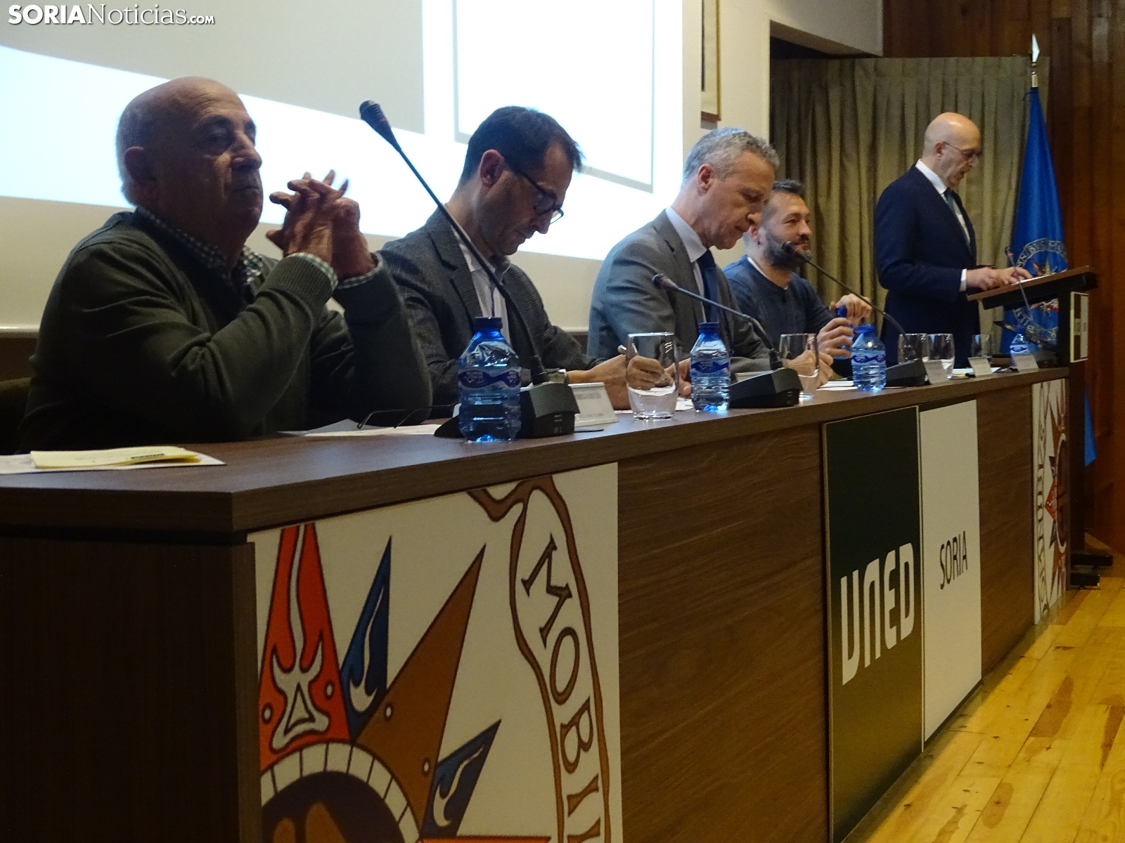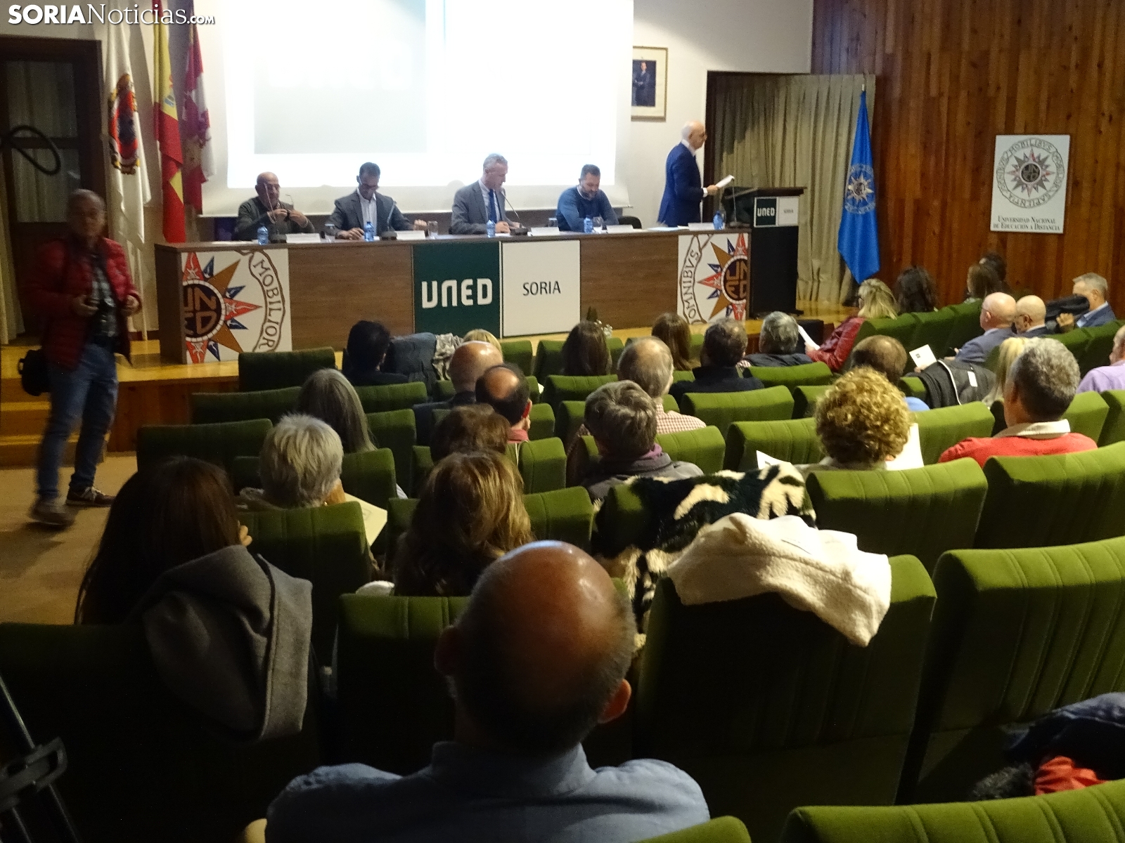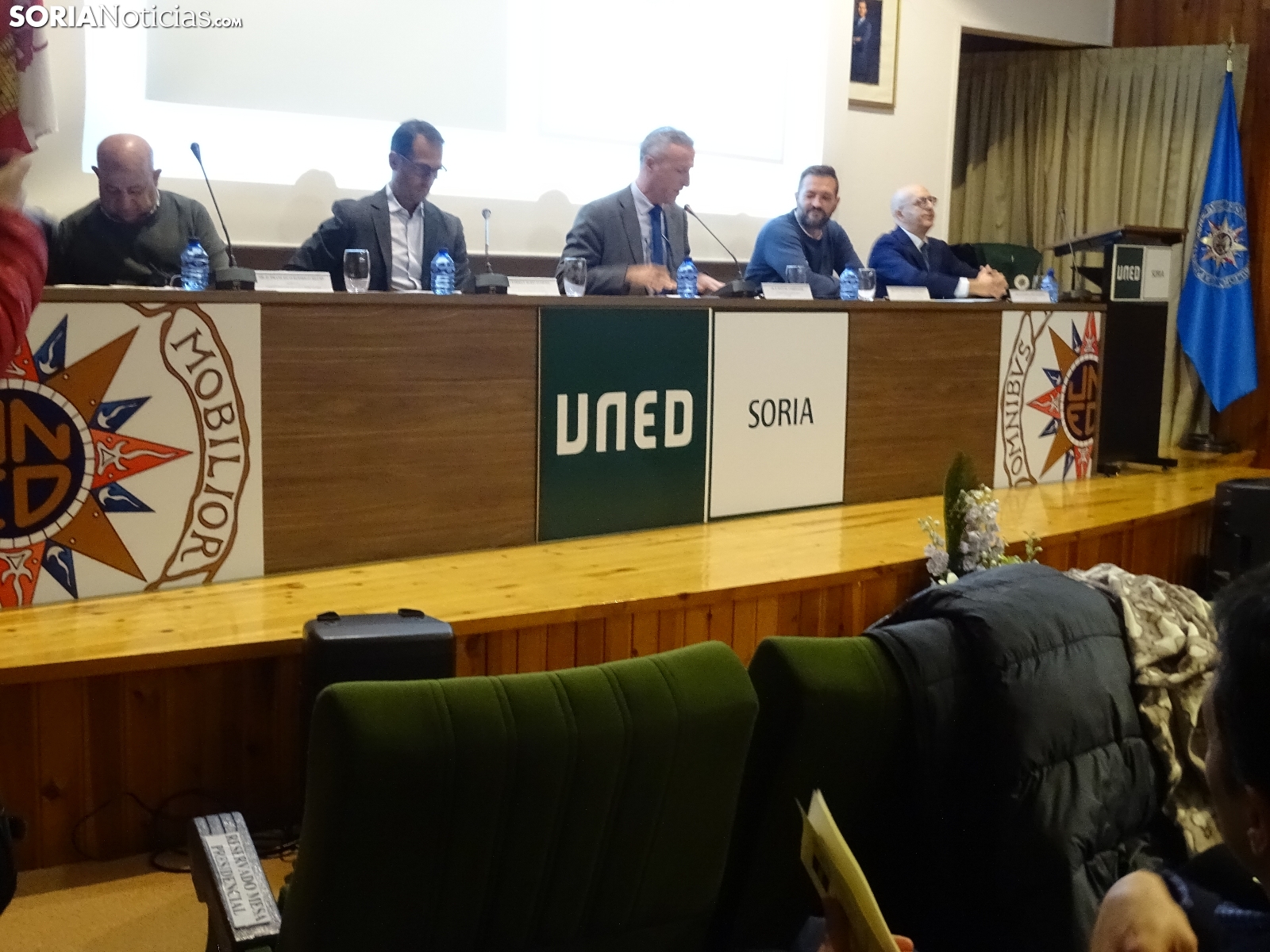 El acto ha contado con una mesa presidencial formada por Jesús de Andrés, vicerrector de Centros Asociados de la UNED; Enrique Rubio Romero, vicepresidente cuarto de la Diputación; Manuel Salvador Esteban, concejal del Ayuntamiento de Soria; Francisco Rodrigo Recio, presidente de la Mancomunidad de los 150 pueblos, además de Saturio Ugarte.