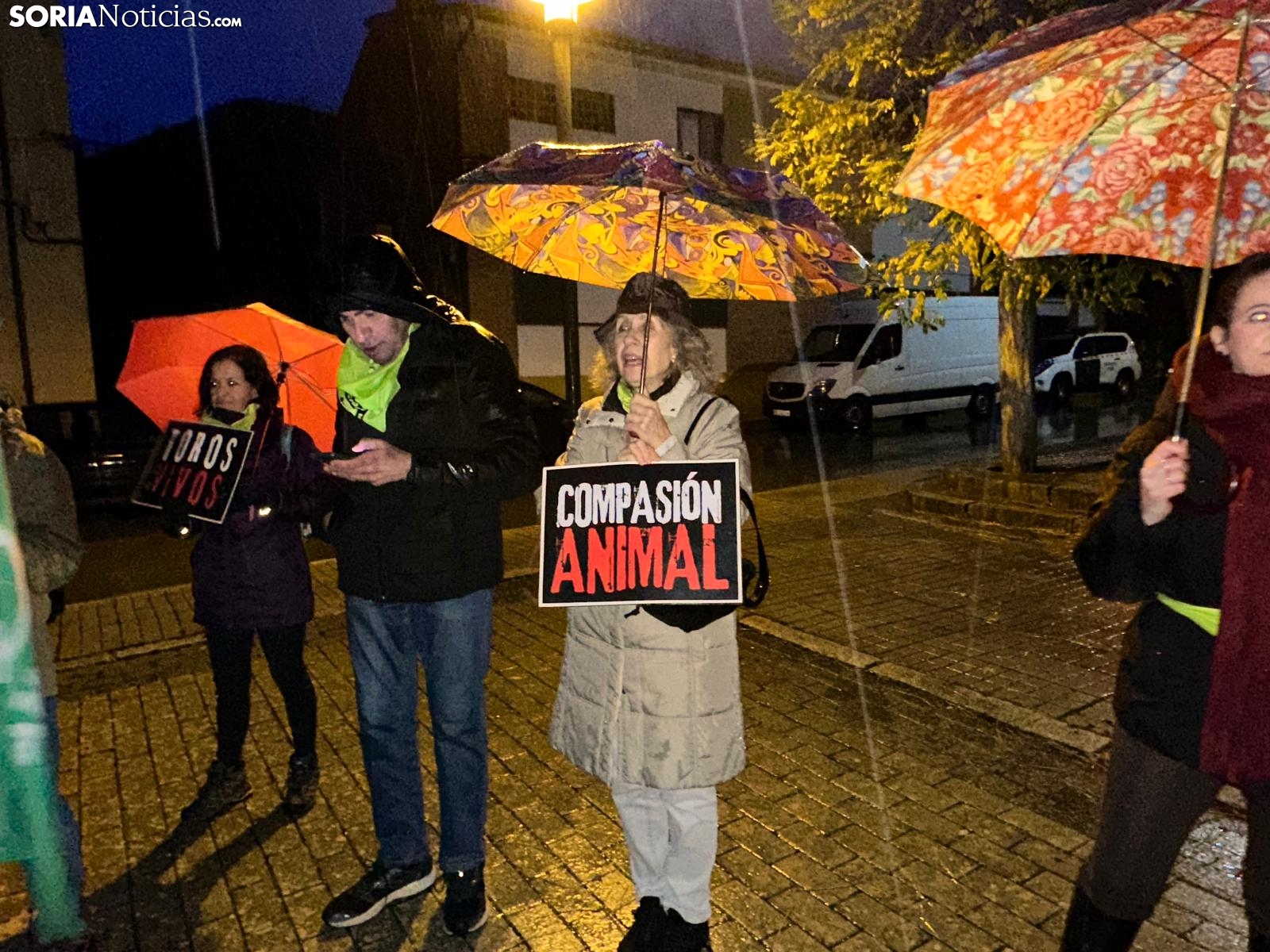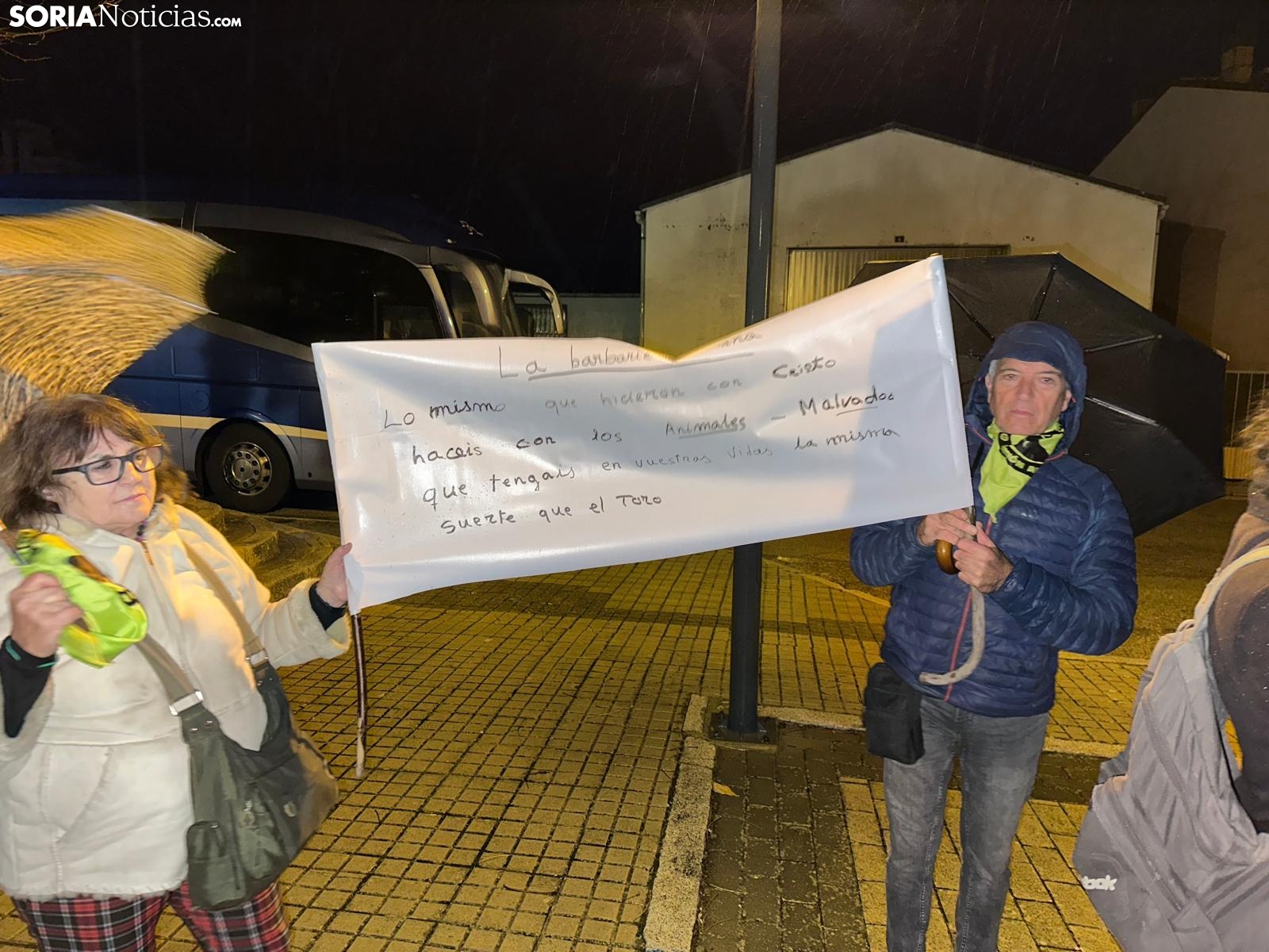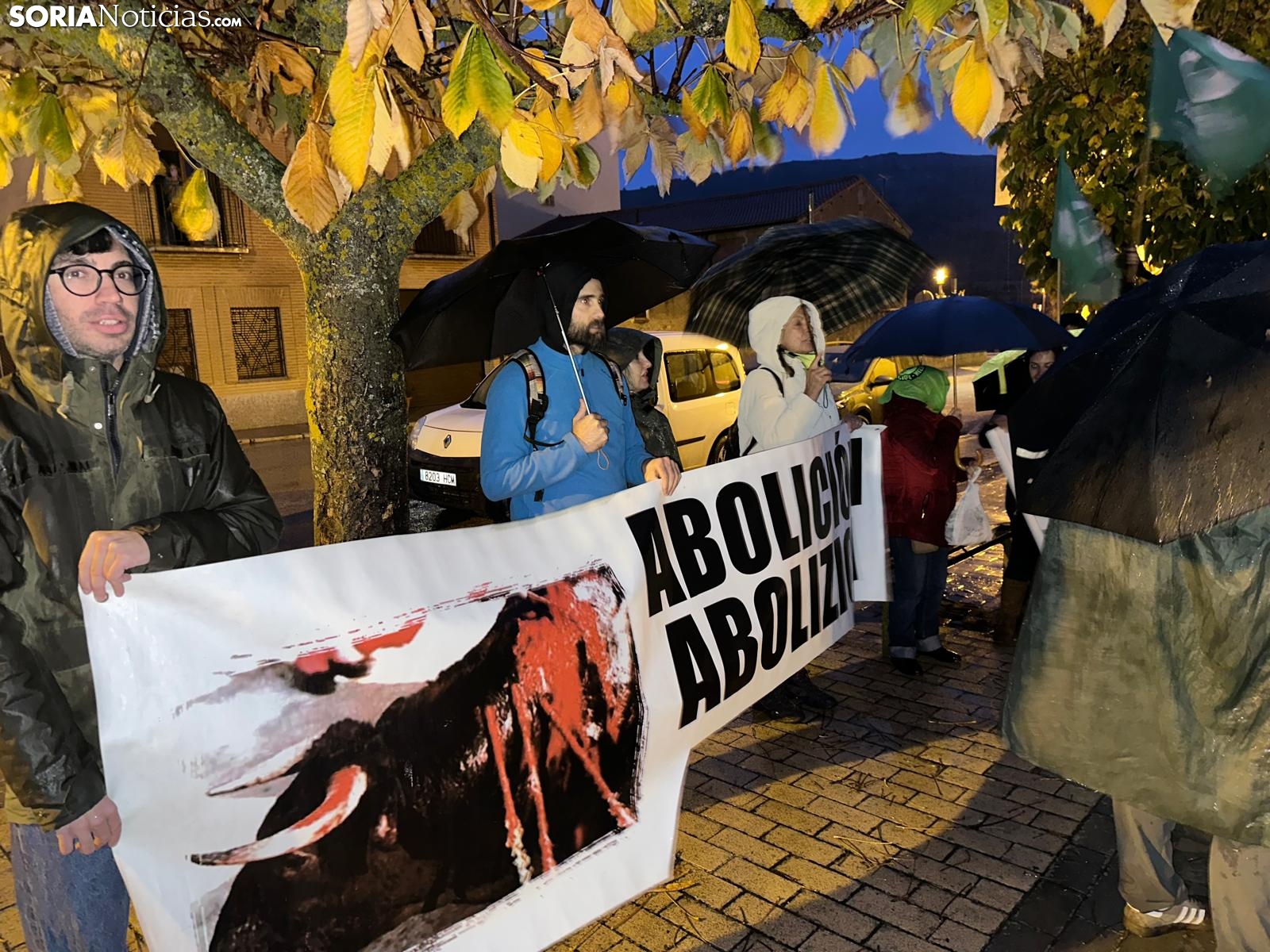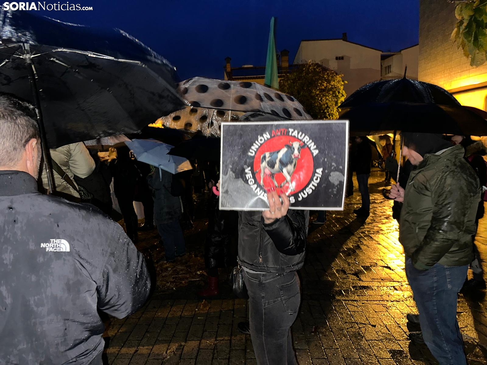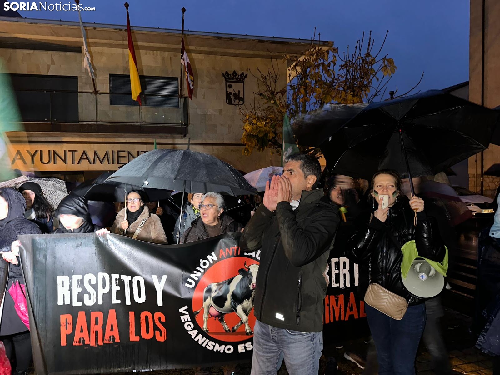 El partido animalista se ha manifestado frente al Ayuntamiento de Medinaceli exigiendo que sea la última vez que se celebre este festejo, tachando de "asesinos" a aquellos que lo apoyan.
