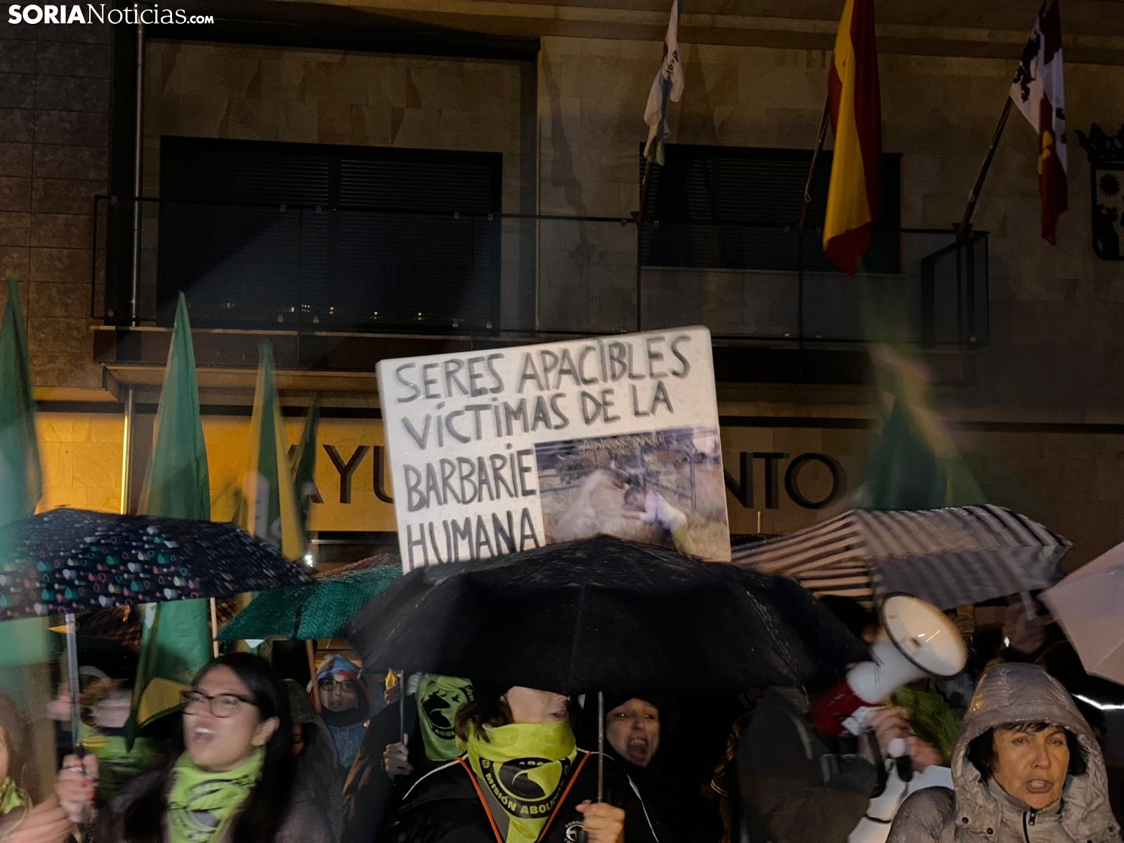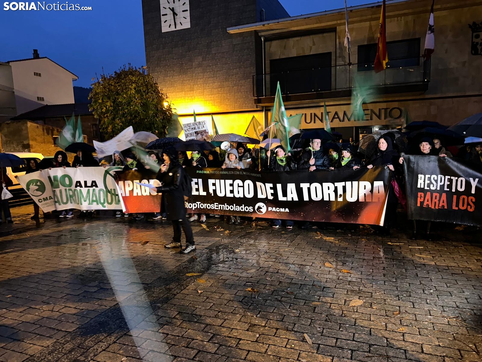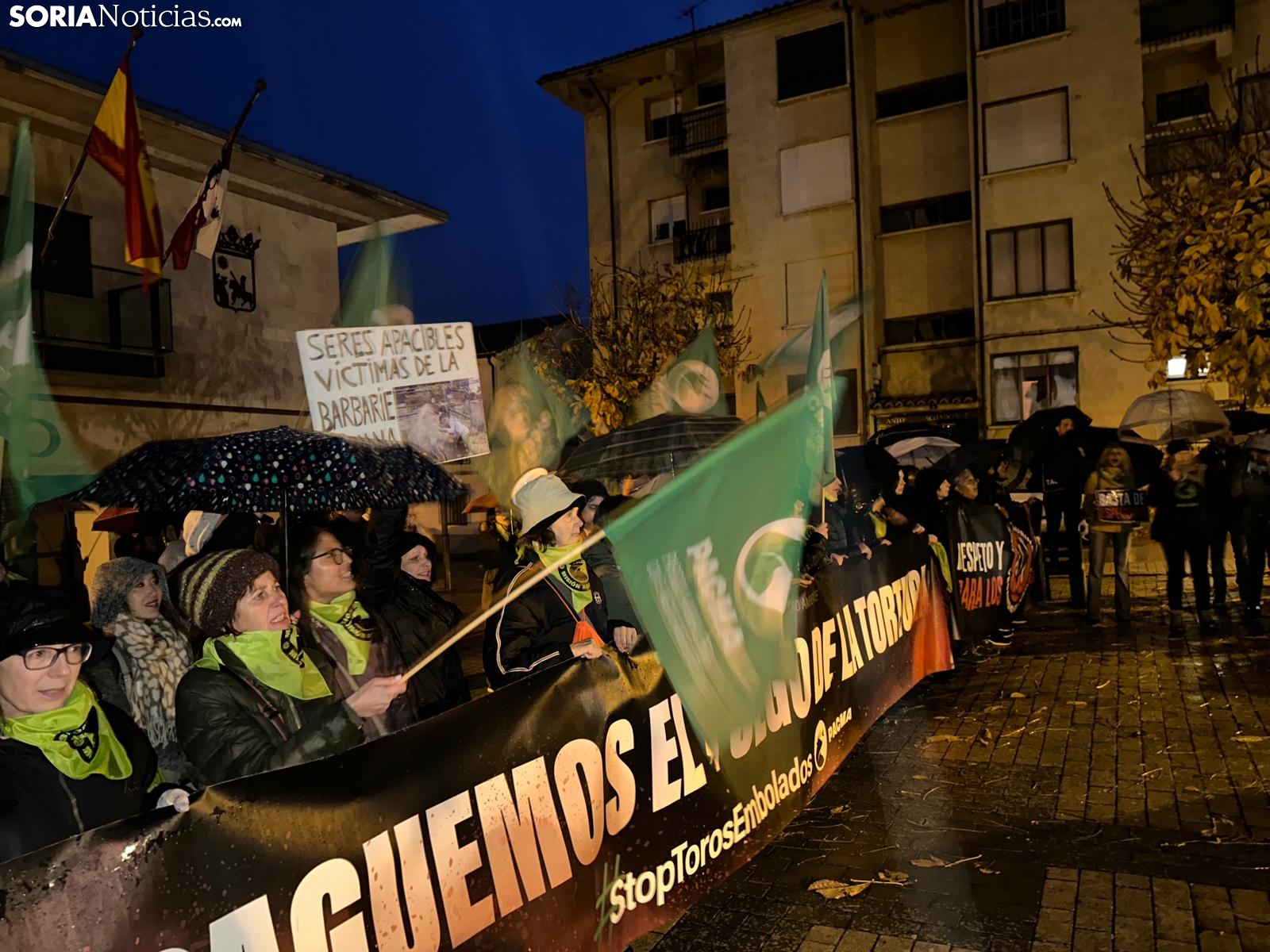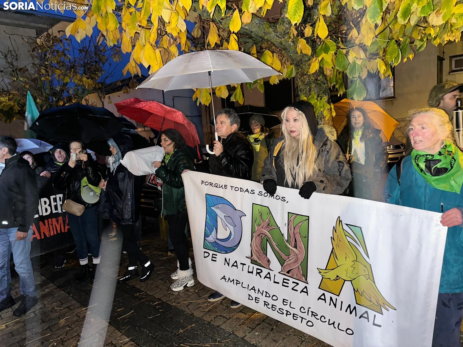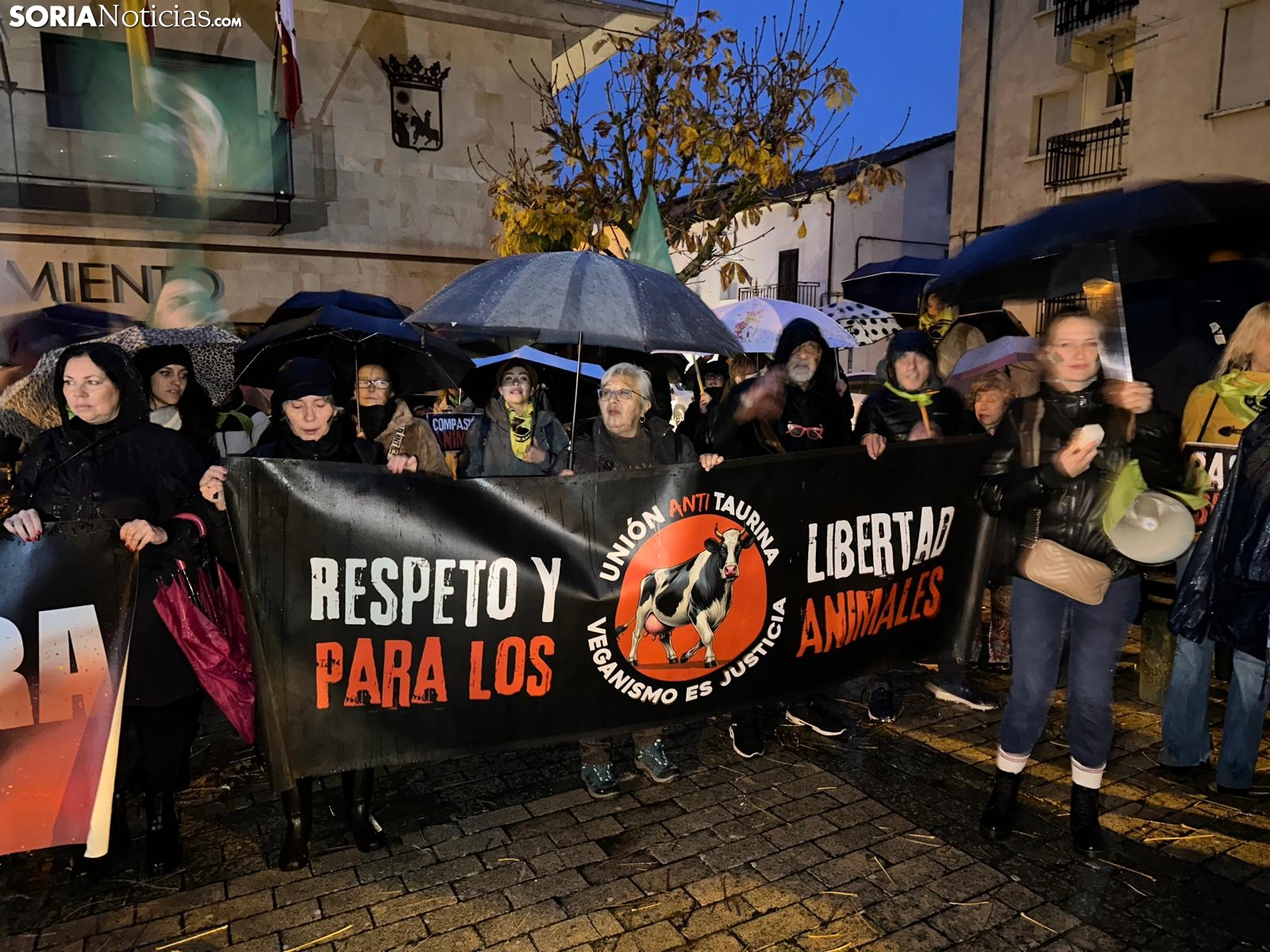 El partido animalista se ha manifestado frente al Ayuntamiento de Medinaceli exigiendo que sea la última vez que se celebre este festejo, tachando de "asesinos" a aquellos que lo apoyan.