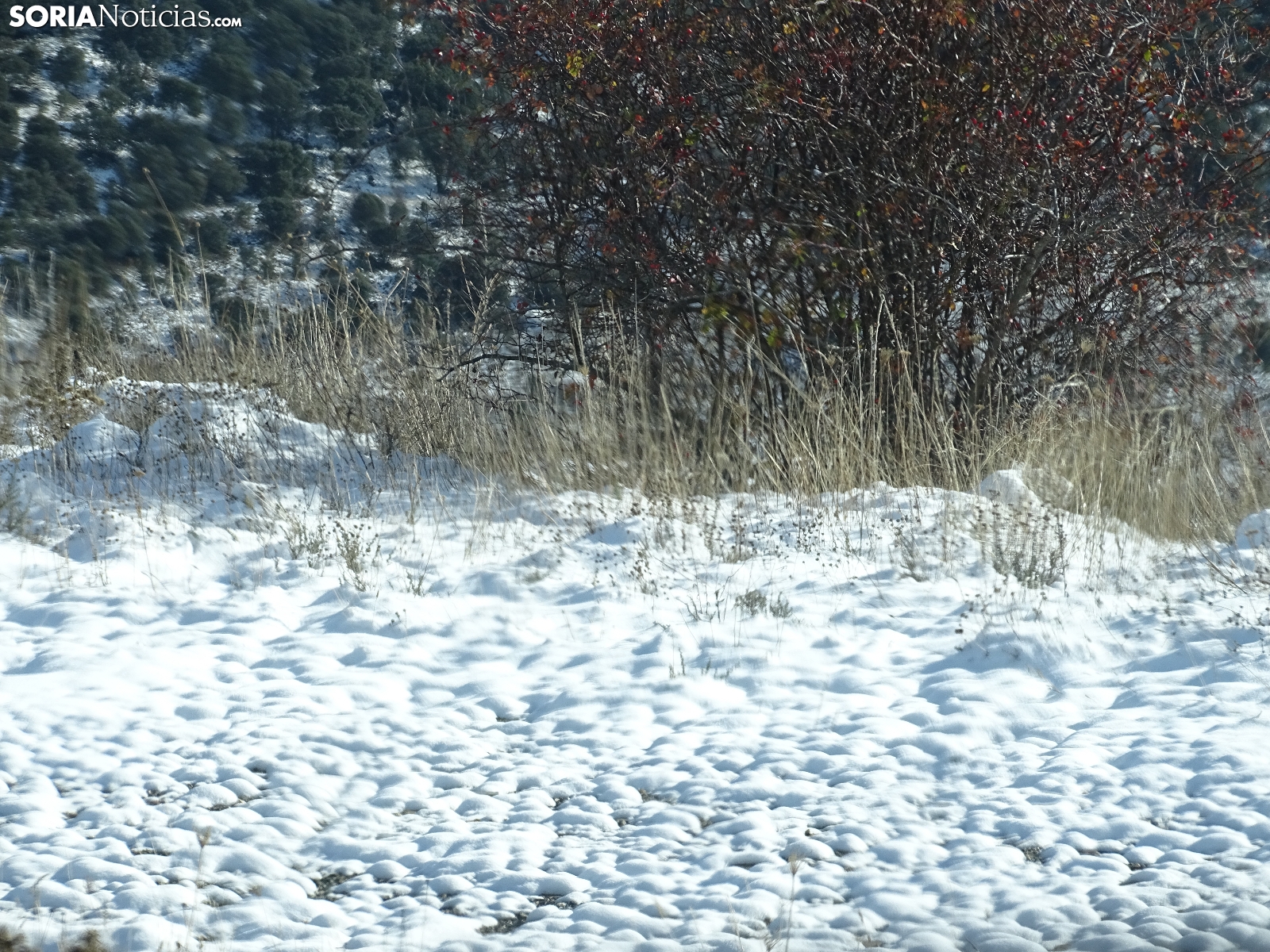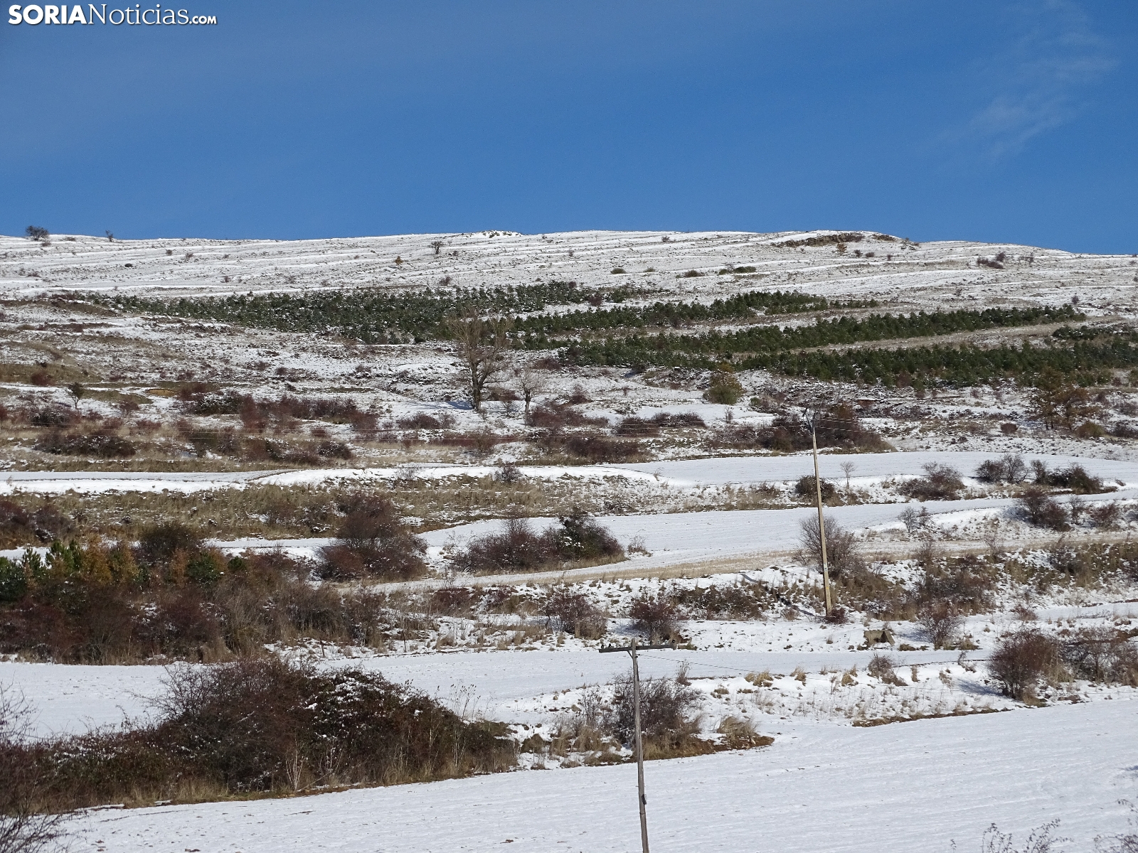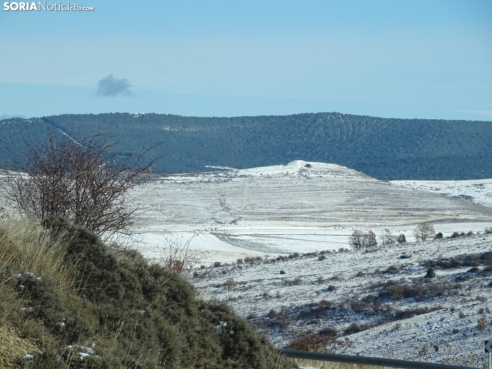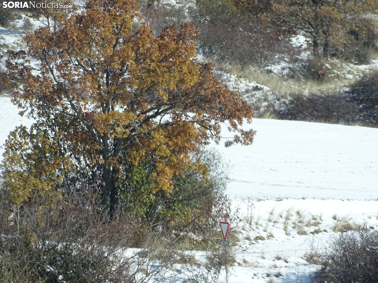 Aunque el invierno oficialmente no ha llegado, sí que se ha buscado un aliado en el otoño de este noviembre para dejar su impronta. La ola polar de frío ha llegado de lejanas zonas como Escandinavia, antojando nevadas reseñables en Pinares, el Moncayo y Tierras Altas. Precisamente en esta última demarcación, los valles y sus crestas se muestran brillantes y blancos, con cielos que dan paso a nubes lenticulares, alargadas, que dan constancia de un viento muy veloz, ya en altura. Paisajes con ocres de robledales que se intercanalan con verdes de pinos y carrascas al pie de sábanas de pastos, que se nutren de la humedad de la nieve la cual que, a buen seguro, servirá para ayudar a una lozana primavera.