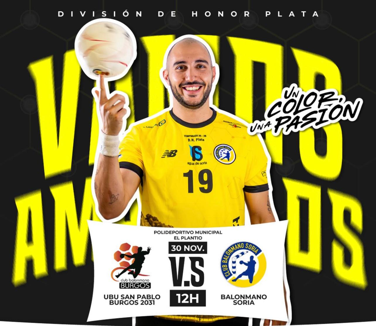 El BM Soria se enfrenta desde las 12:00h. al San Pablo Burgos en el Plantío. Los amarillos afrontan una de las salidas más complicadas de la temporada, ante un rival confeccionado para aspirar al ascenso a Asobal, con el objetivo de sumar dos puntos que le den oxígeno en la lucha por eludir el descenso.