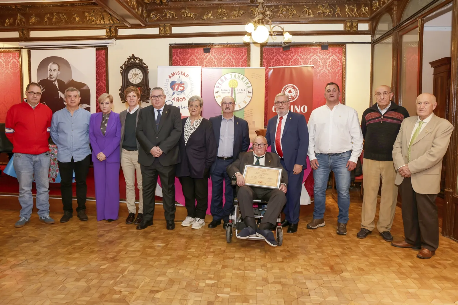 Desde la organización han querido dar las gracias a los profesionales que los han acompañado en el Salón Gerardo Diego, del Círculo Amistad Numancia, popular Casino, como han sido los novilleros, Israel Aparicio (premiado por los amigos de la Peña Taurina El Pacharán de las 6), David Espejón, David Gutiérrez y el matador de toros, David de Miranda (aunque no estuviera en persona, pero sí envió carta y video de disculpas por su ausencia).
