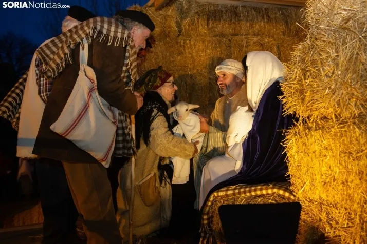 Para mantener la autenticidad de la cita, que moviliza a entre 70 y 80 voluntarios, existe una norma no escrita pero fundamental: los participantes deben estar vinculados al Municipio, ya sean residentes o descendientes que regresan para colaborar. “La idea es que sea realmente el pueblo. Si no, no tiene mucho sentido”, asegura el coordinador, quien supervisa desde fuera que “el engranaje funcione para que el visitante tenga la mejor experiencia”. Este esfuerzo colectivo logra generar una atmósfera cálida que combate el riguroso frío de diciembre en Soria, un elemento climático que la organización mitiga ofreciendo “chocolate caliente al finalizar el recorrido”. Como matiza Fernández, describiendo el ambiente como entrañable, “el frío se soluciona con un poco de chocolate al final y con el cariño de todos nosotros”, la clave del éxito de este belén. Entre los colaboradores, los hay de todas las edades: desde los más pequeños, capaces de sorprender a los visitantes con tareas complicadas, como elaborar morcillas, hasta barberías donde puedes ir a que te afeiten de la forma más tradicional.