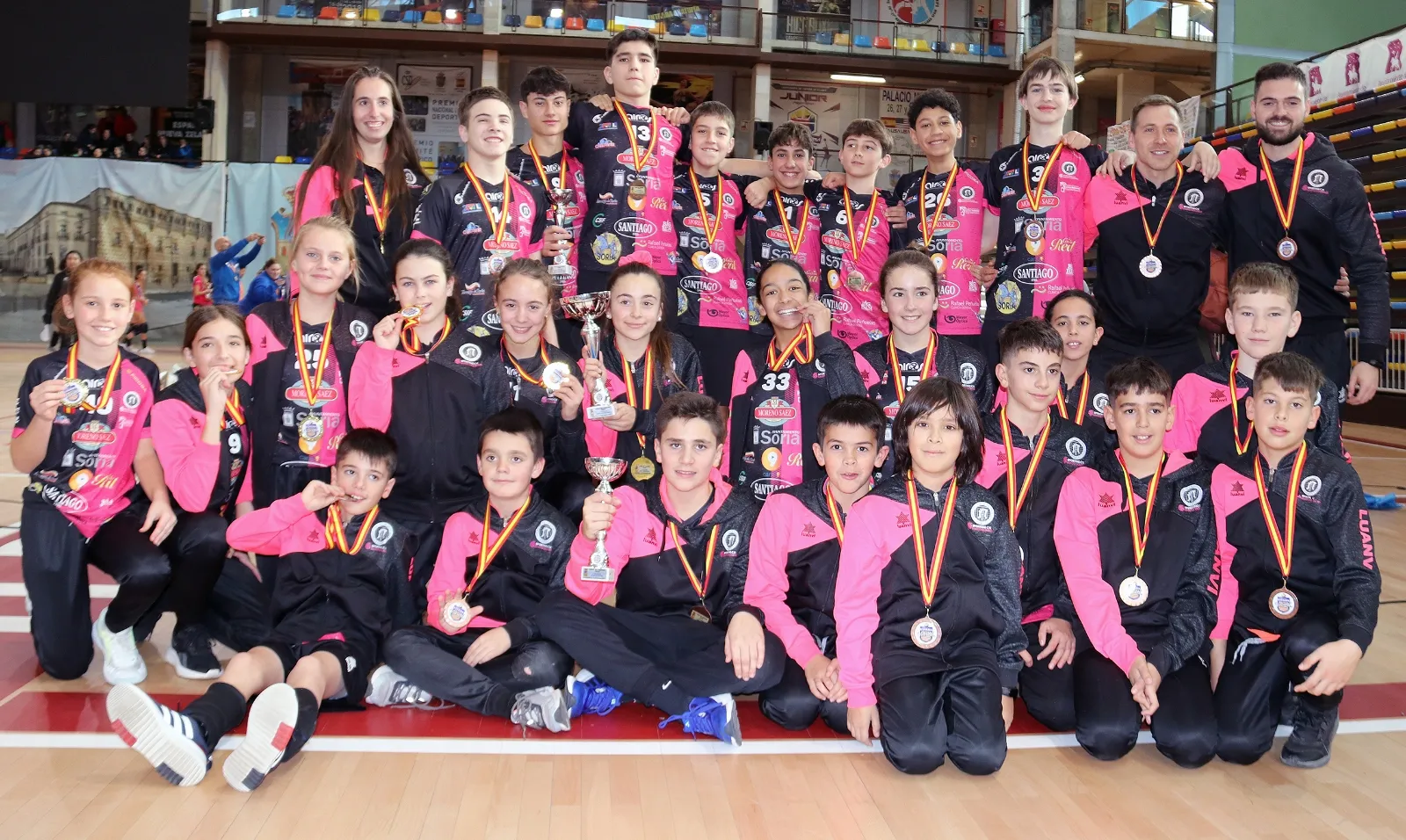 De su cantera, el Sporting Santo Domingo ha inscrito a cuatro equipos -tres femeninos y uno masculino- en la Copa de España de voleibol. Una cita que nació en 2013 en Guadalajara, y que ahora Valladolid albergará la competición de 2025, del 27 al 30 de diciembre. Allí acudirá el club deportivo soriano, uno de los más laureados, con cinco podios (tres oros y dos bronces) en las dos últimas ediciones. La entidad que preside César Gonzalo estará representada en la ciudad del Pisuerga por las infantiles del Hospital Latorre Sporting A, las alevines del Sporting Santo Domingo A, los alevines del Sporting Río Duero A y las benjamines del Sporting Santo Domingo A. Los entrenadores de estos equipos son, respectivamente, Juan Francisco Pérez, Sergio Corredor, Pablo Mugarza y María Gómez y Lorena Alonso.