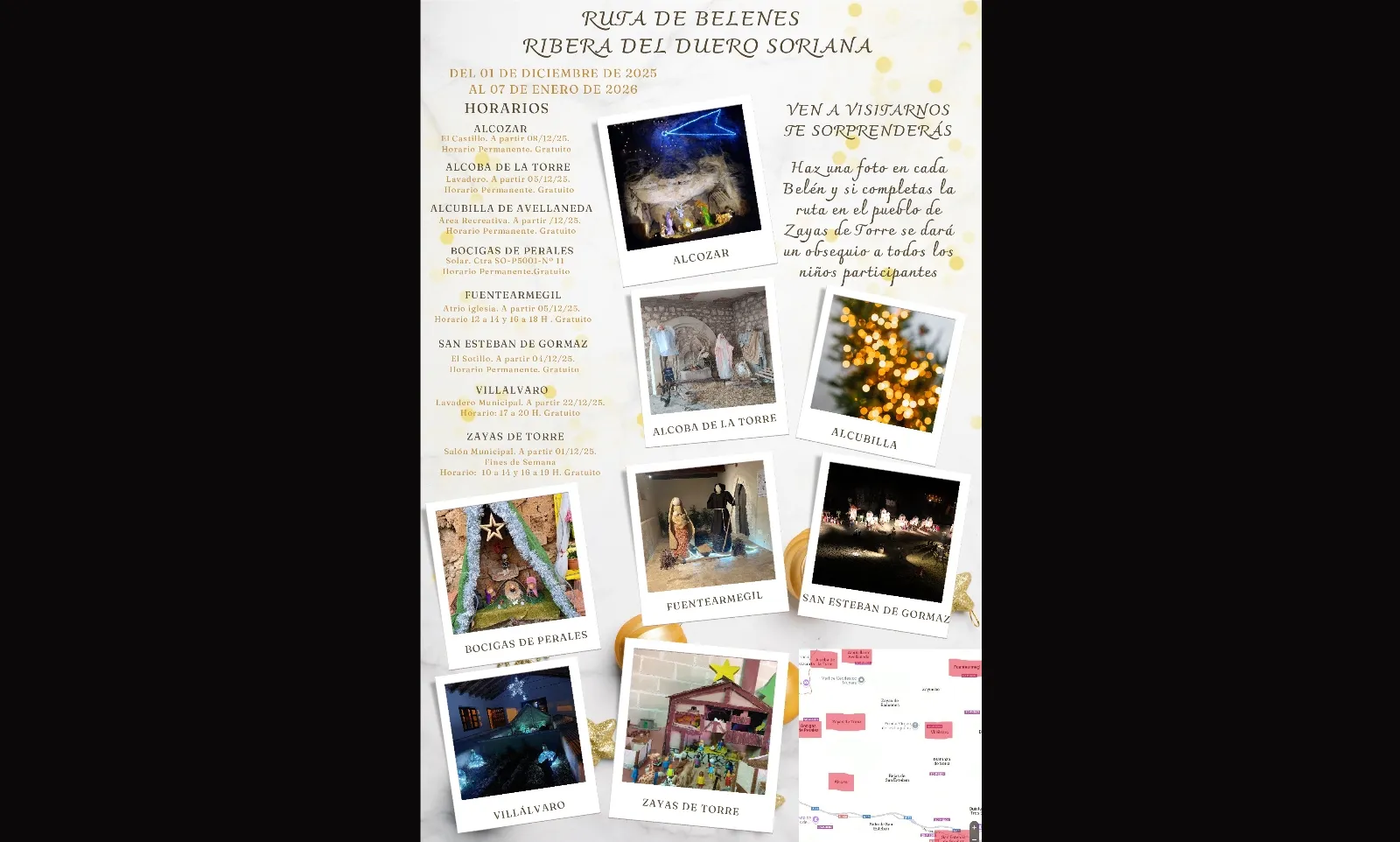 Otros pueblos han establecido franjas horarias específicas o fechas de apertura más tardías. Es el caso de Alcubilla de Avellaneda, cuyo belén en el salón municipal abre los fines de semana de 10.00 a 14.00 horas y de 16.00 a 19.00 horas. En Alcoba de la Torre, el nacimiento ubicado en el atrio de la iglesia recibe visitas de 12.00 a 14.00 y de 16.00 a 18.00 horas. Finalmente, cabe destacar que el belén del lavadero municipal de Villálvaro será el último en incorporarse al circuito, ya que su apertura está programada a partir del 22 de diciembre, con un horario de tarde de 17.00 a 20.00 horas.