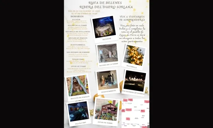 La Navidad sigue abriéndose paso por diversos lugares de la provincia. Una nueva propuesta busca unir territorios y fomentar el turismo de cercanía durante estas fechas. La Ribera del Duero Soriana ha puesto en marcha una ruta de belenes que conecta a ocho localidades de esta demarcación, ofreciendo a vecinos y visitantes un itinerario cultural y tradicional que estará activo hasta el 7 de enero. Esta iniciativa colaborativa invita a redescubrir los rincones de estos pueblos al amparo de una costumbre que traspasa hogares y sale al público.