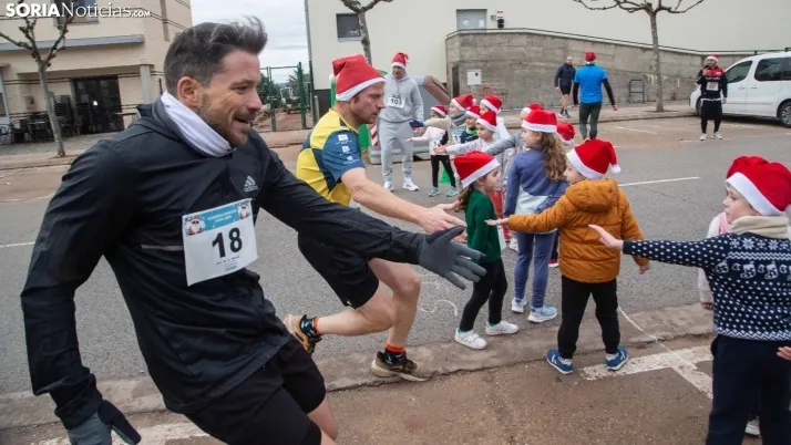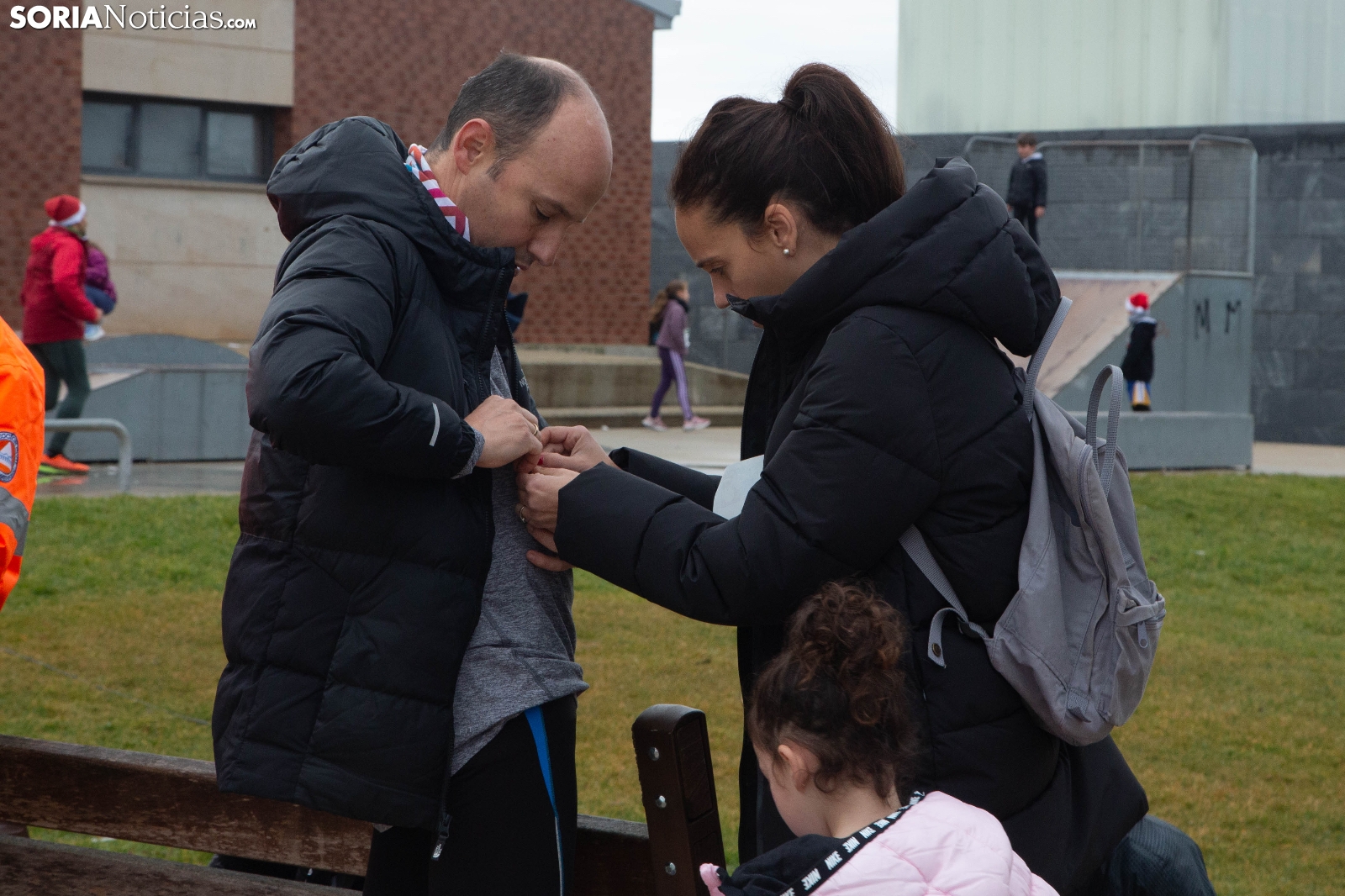Decenas de participantes se han dado cita hoy sábado en la urbanización Camaretas, en Golmayo, para disfrutar de la Carrera Familiar de Papá Noel. Con salida del centro cívico, mayores y pequeños por parejas han cumplido con los recorridos adaptados a cinco categorías de edad. Aunque el frío ha querido tomar protagomismo, la palma se la han llevado, por un lado la diversión conjunta y por otro, los lazos familiares.