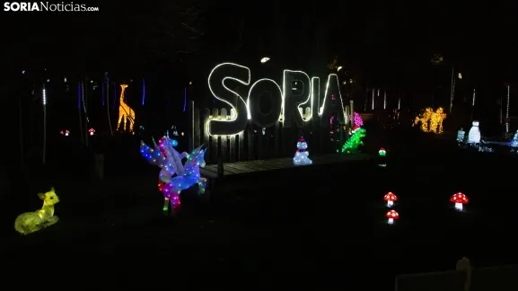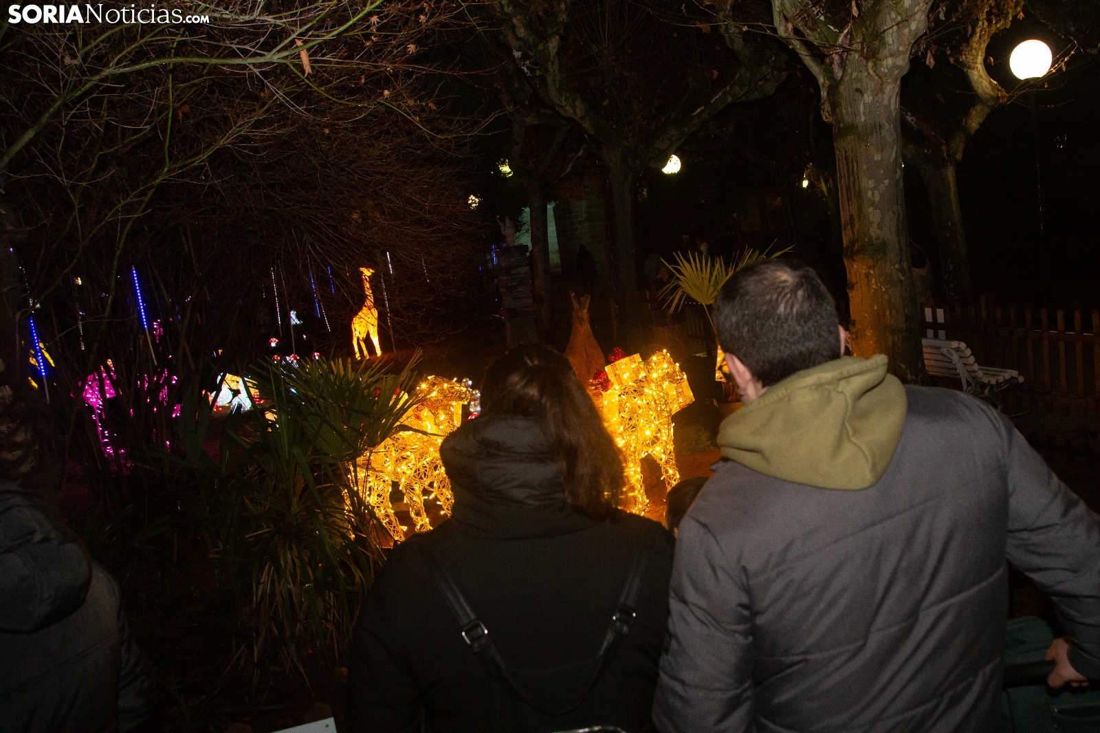 El Zoo Luminoso del parque de La Dehesa vuelve a ser un año más uno de los epicentros de la Navidad soriana. Como viene siendo habitual, esta céntrica ubicación soriana acoge una instalación llena de magia con animales de diferentes especies que enamoran a los más pequeños de la ciudad.