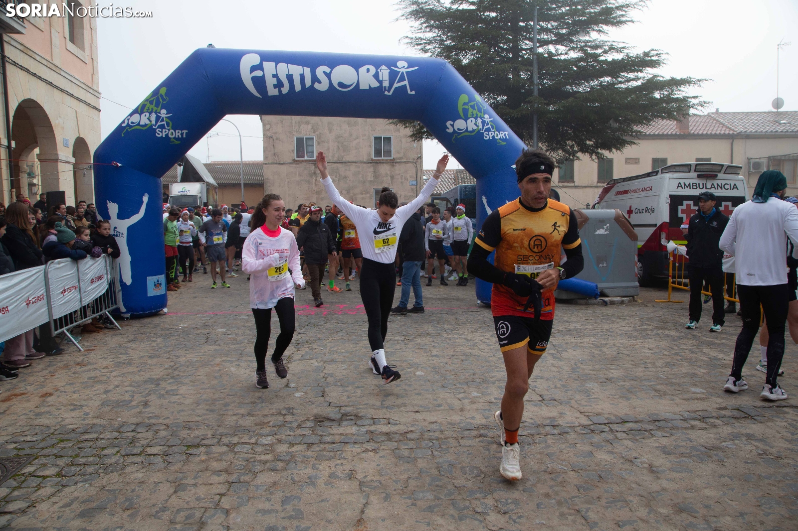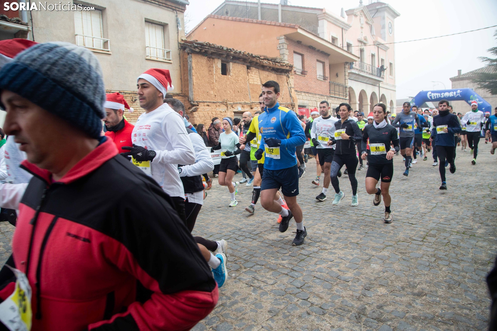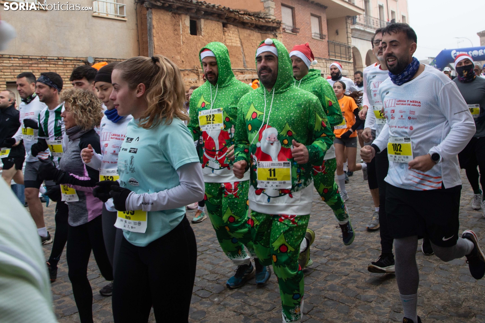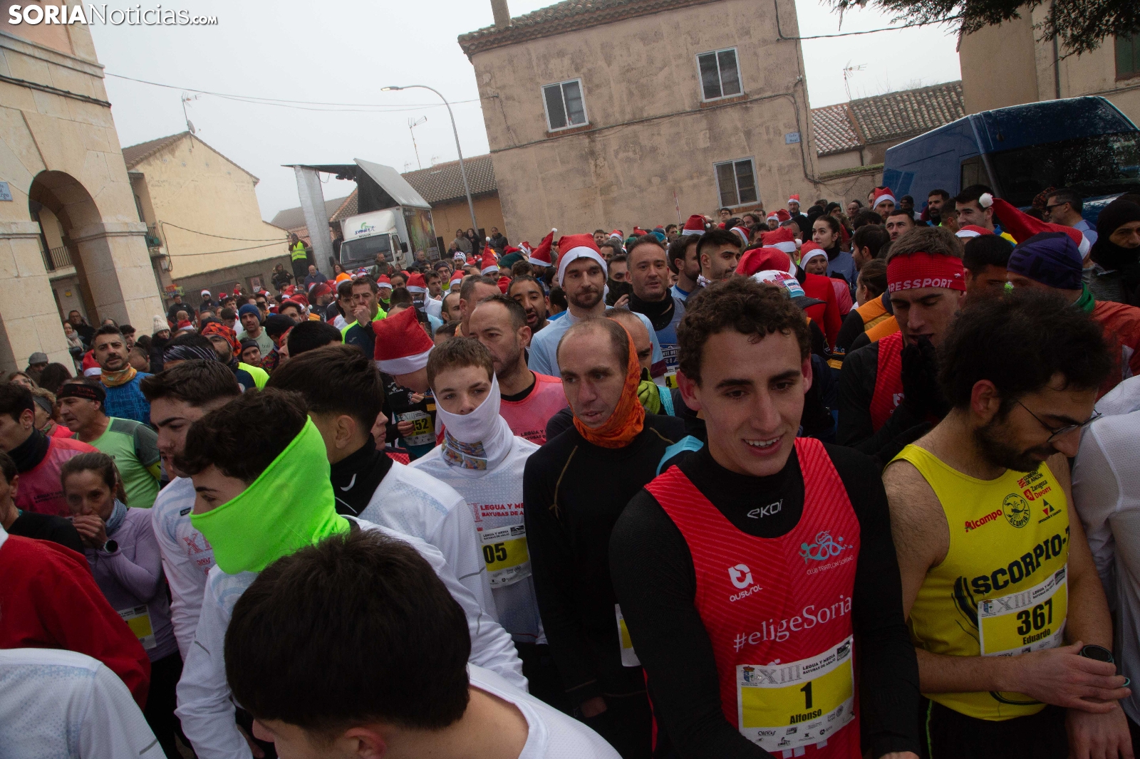 Centenares de corredores han dejado hueco para la cena de Nochebuena esta mañana al participar en la XIII edición de la Legua y Media de Bayubas de Abajo. Recibiendo atletas de todos los puntos de la provincia, la prueba ha vuelto a demostrar que es una de las carreras navideñas más espectaculares de la provincia de Soria. Los gorros de Papá Noel o las diademas de renos tampoco han faltado en una cita de profundo espíritu navideño.