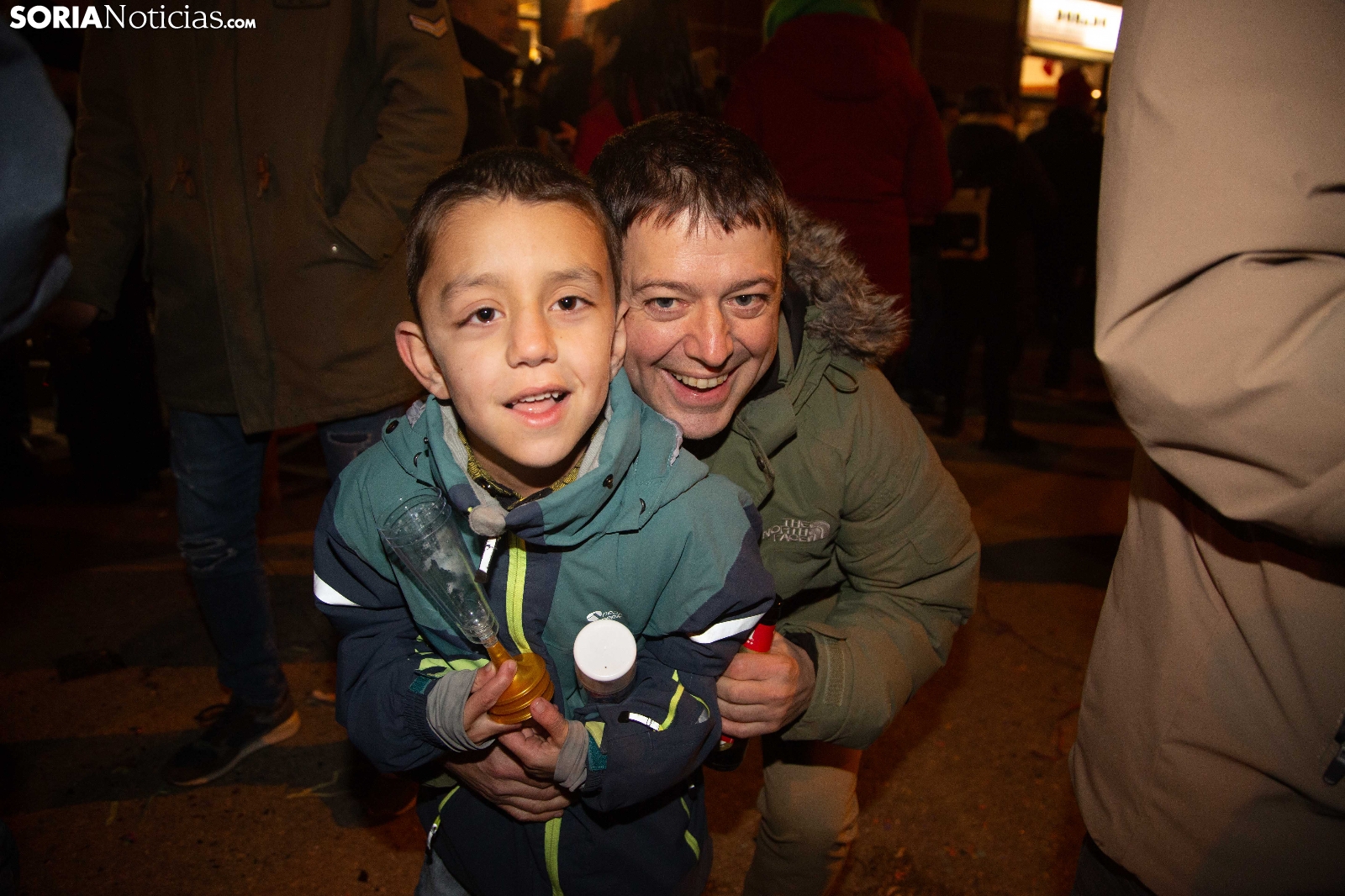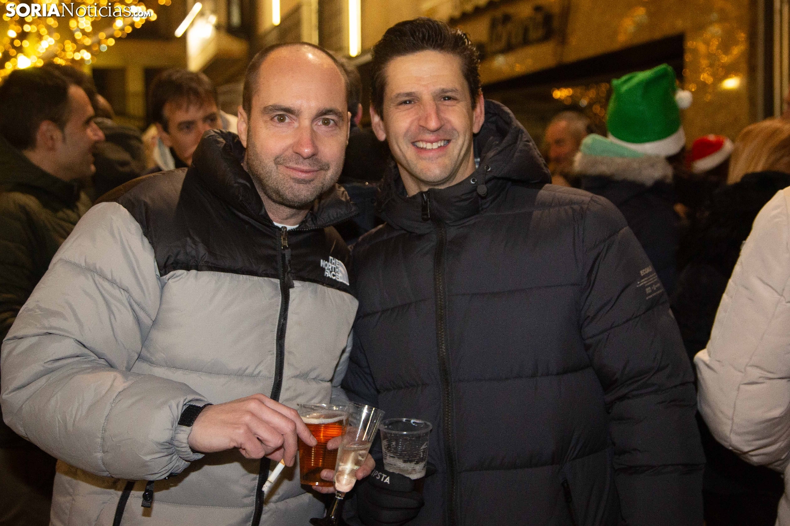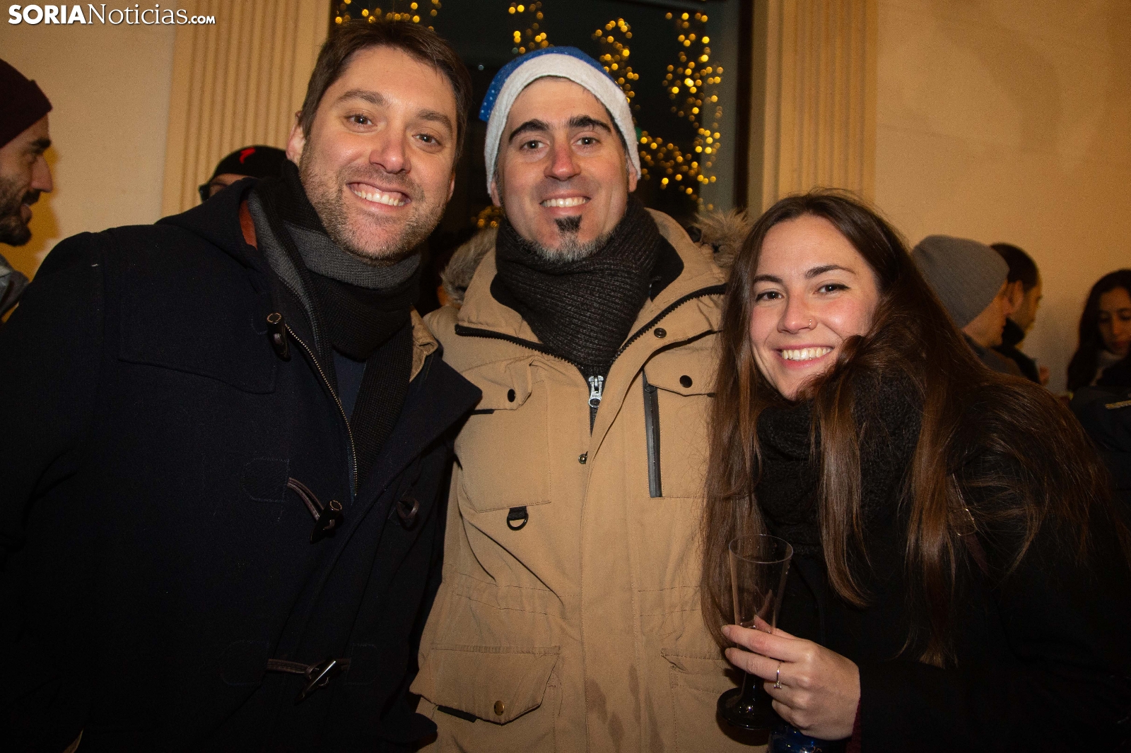 A pesar del frío, miles de sorianos han salido esta tarde noche a la Plaza Herradores de Soria capital para disfrutar de la Champanada de Nochebuena. Acompañados de familiares y amigos, han brindado por un fin de año lleno de buenas noticias. El ambiente no ha faltado con numerosos villancicos interpretados por atrevidos gaiteros.