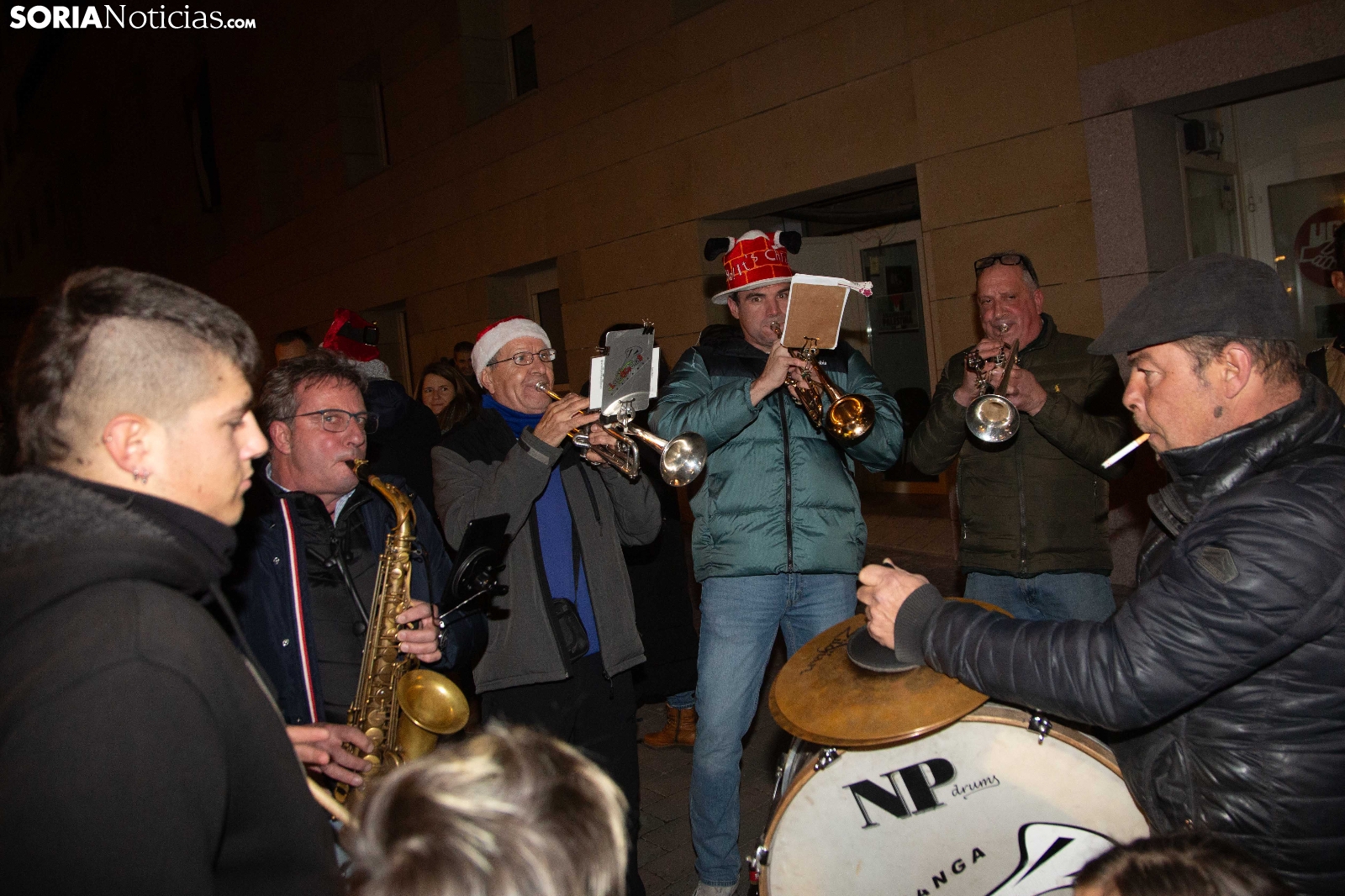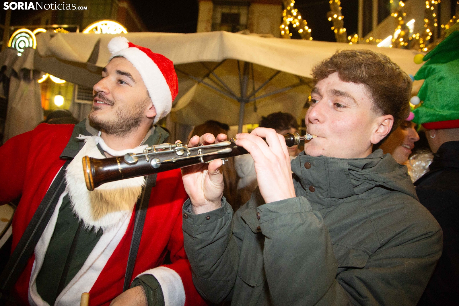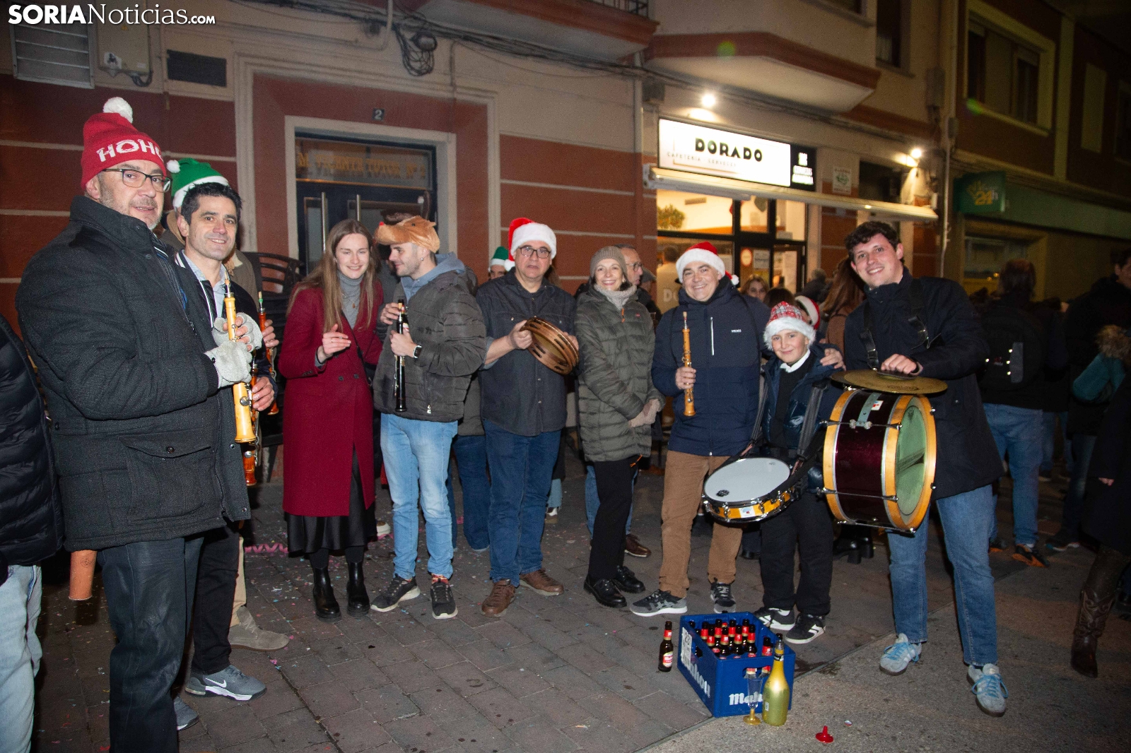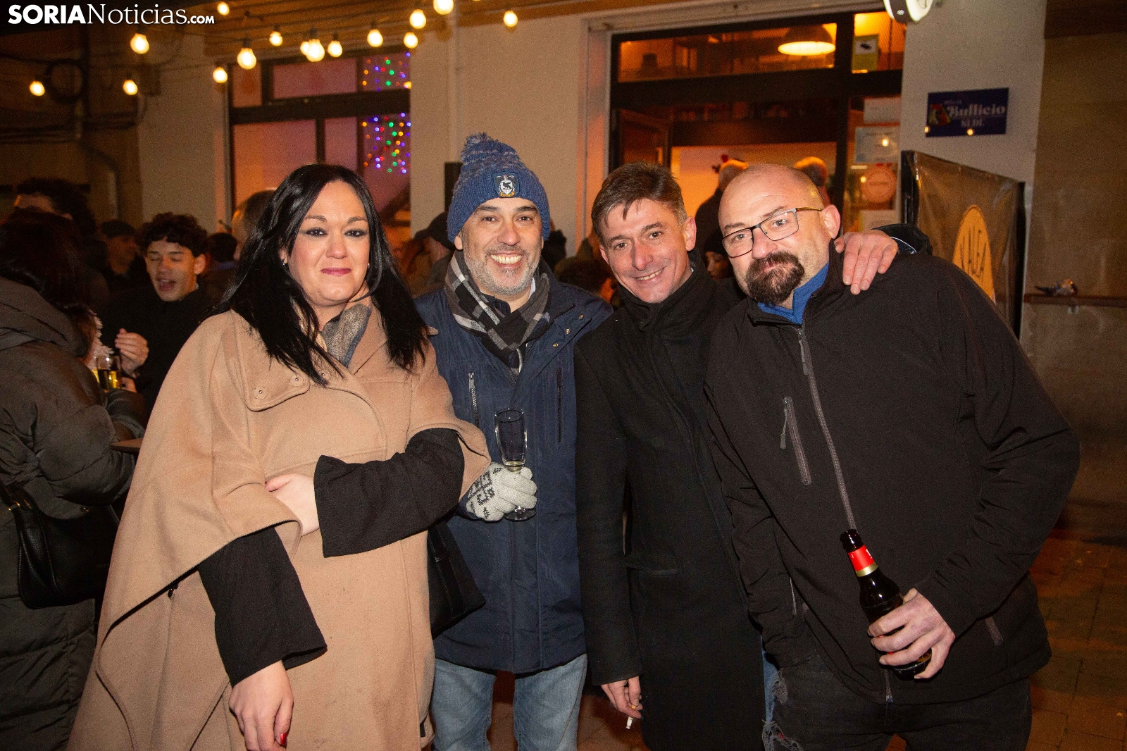 A pesar del frío, miles de sorianos han salido esta tarde noche a la Plaza Herradores de Soria capital para disfrutar de la Champanada de Nochebuena. Acompañados de familiares y amigos, han brindado por un fin de año lleno de buenas noticias. El ambiente no ha faltado con numerosos villancicos interpretados por atrevidos gaiteros.