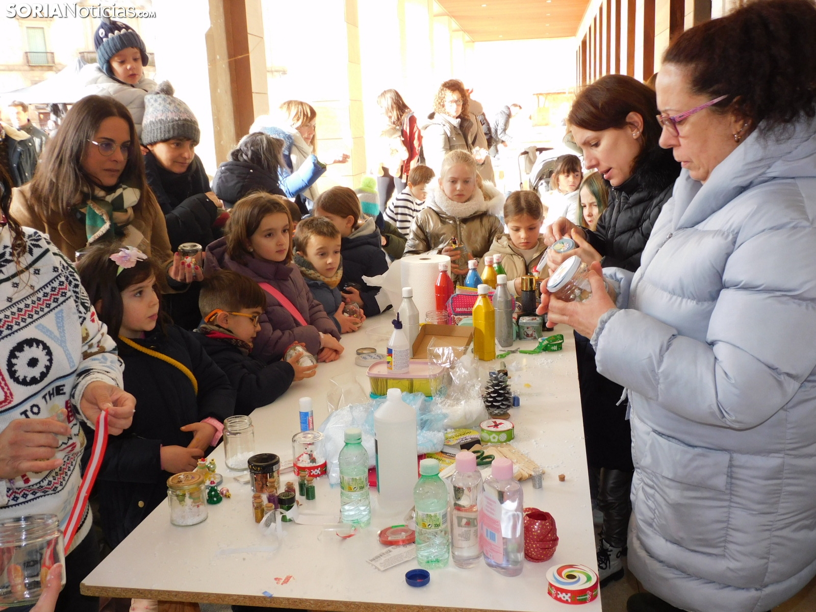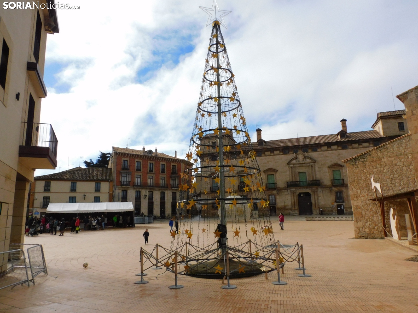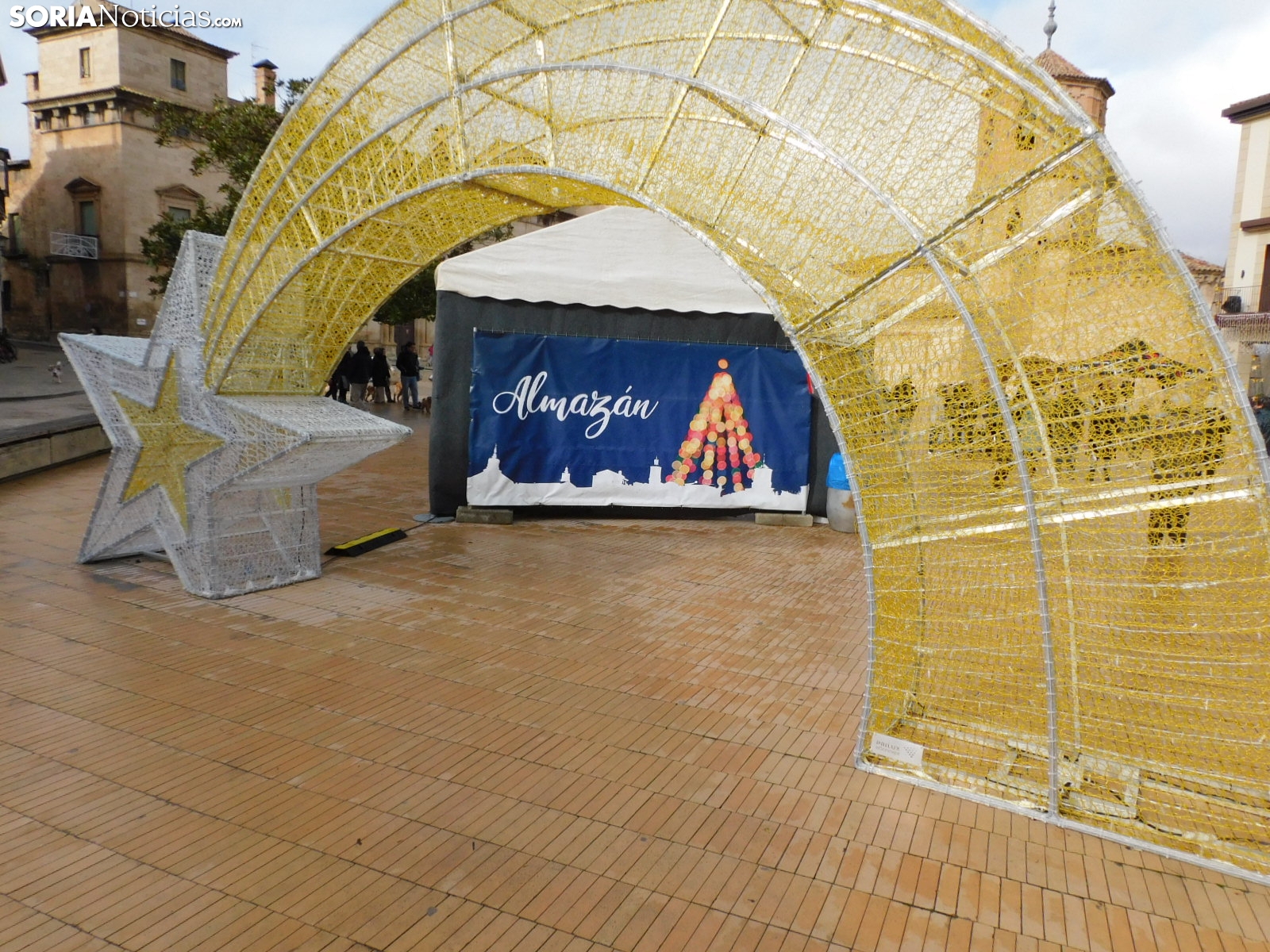 La Plaza Mayor de Almazán acoge durante todo el día de hoy un mercadillo navideño con numerosos puestos. En ellos, los adnamantinos pueden adquirir adornos navideños artesanos, dulces de todos los tipos o comida casera, entre otras muchas cosas. Además, los presentes están disfrutando de varios conciertos y de unos talleres destinados a los más pequeños de la Villa.