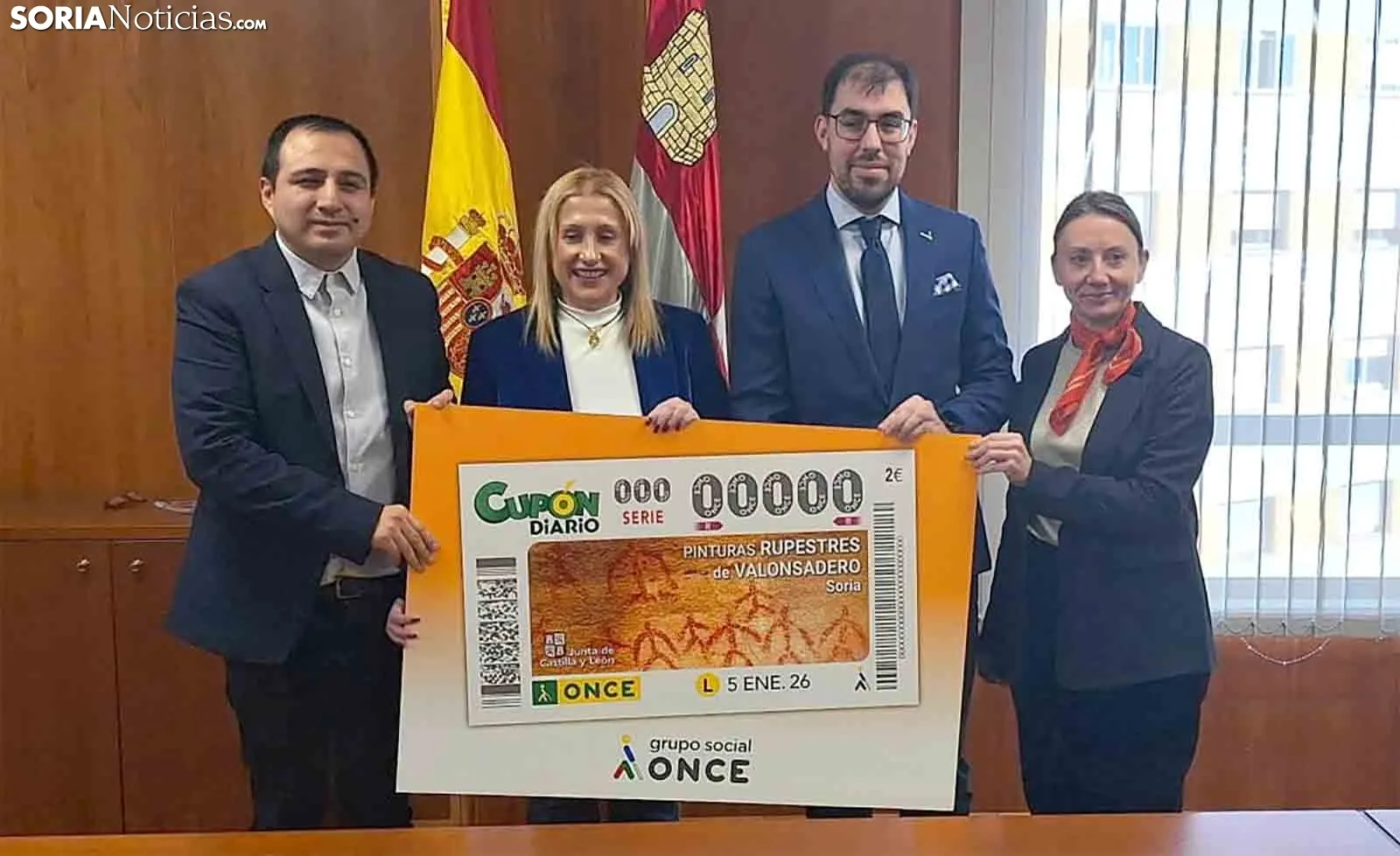 La presencia de Soria en los cupones de la ONCE continuará en las próximas semanas. Pareja, tras indicar que el cupón presentado hoy ya está a la venta, ha anunciado que próximamente Almazán y su muralla protagonizarán un sorteo, así como también de cara a la Semana Santa, cuando una cofradía soriana también encabezará un sorteo.