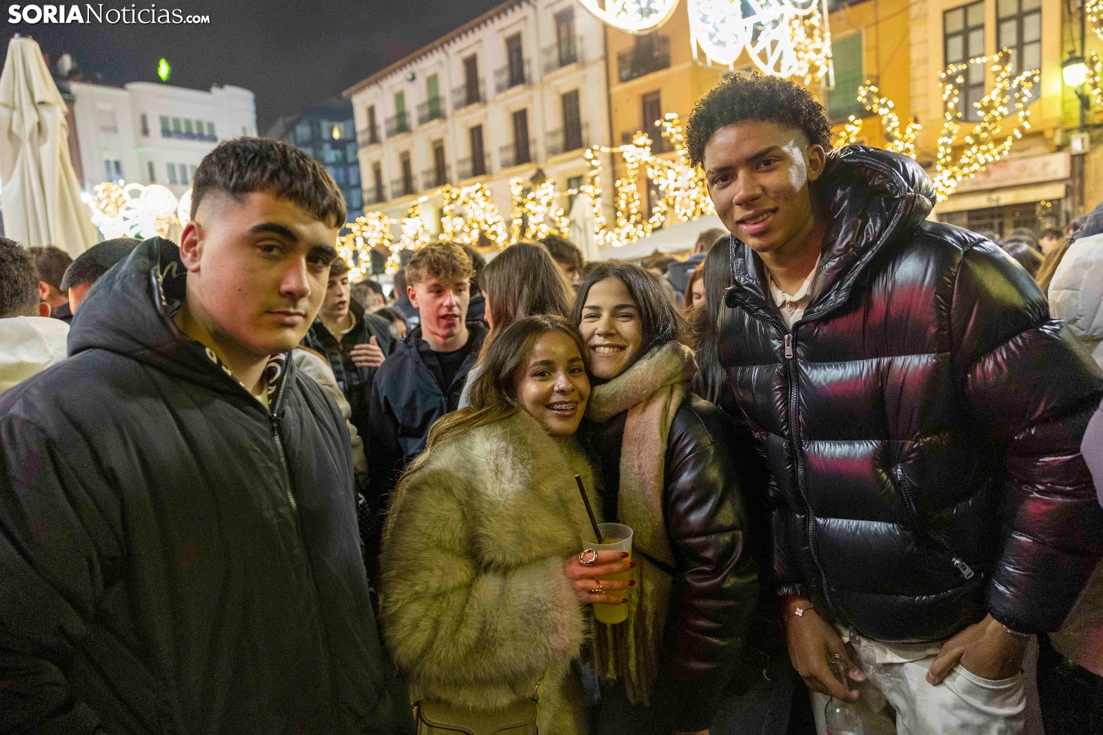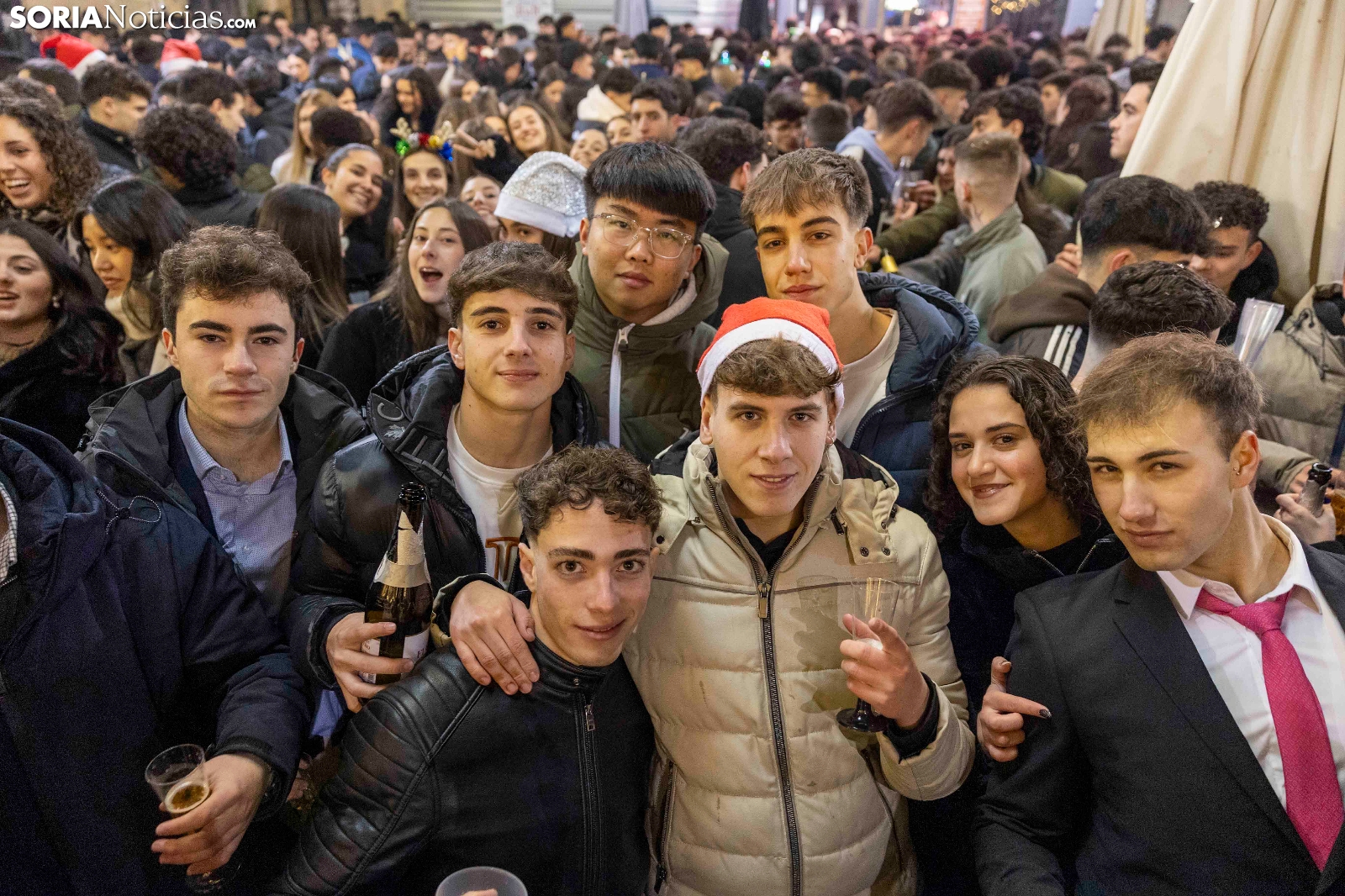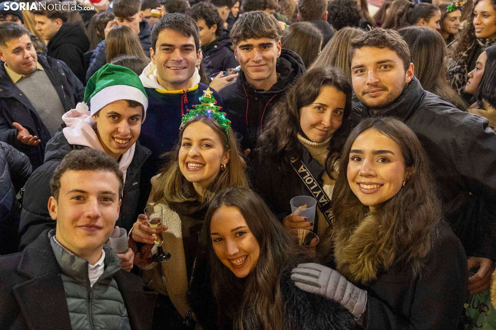 Al ritmo de los villancicos, y también de alguna que otra sanjuanera, cientos, sino miles, de sorianos han acudido al centro de la capital para pasar las últimas horas del año con amigos y compañeros antes de acudir a cenar con sus respectivas familias. Espumillón, matasuegras, gorros y todo tipo de complementos cualquier otro día considerados horteras pero hoy no solo permitidos sino celebrados. Entre botellines de cervezas y copas de champagne, Soria brinda por un 2026 llevo de salud, alegría y prosperidad. Deseo que compartimos en Soria Noticias con todos nuestros lectores y amigos.
