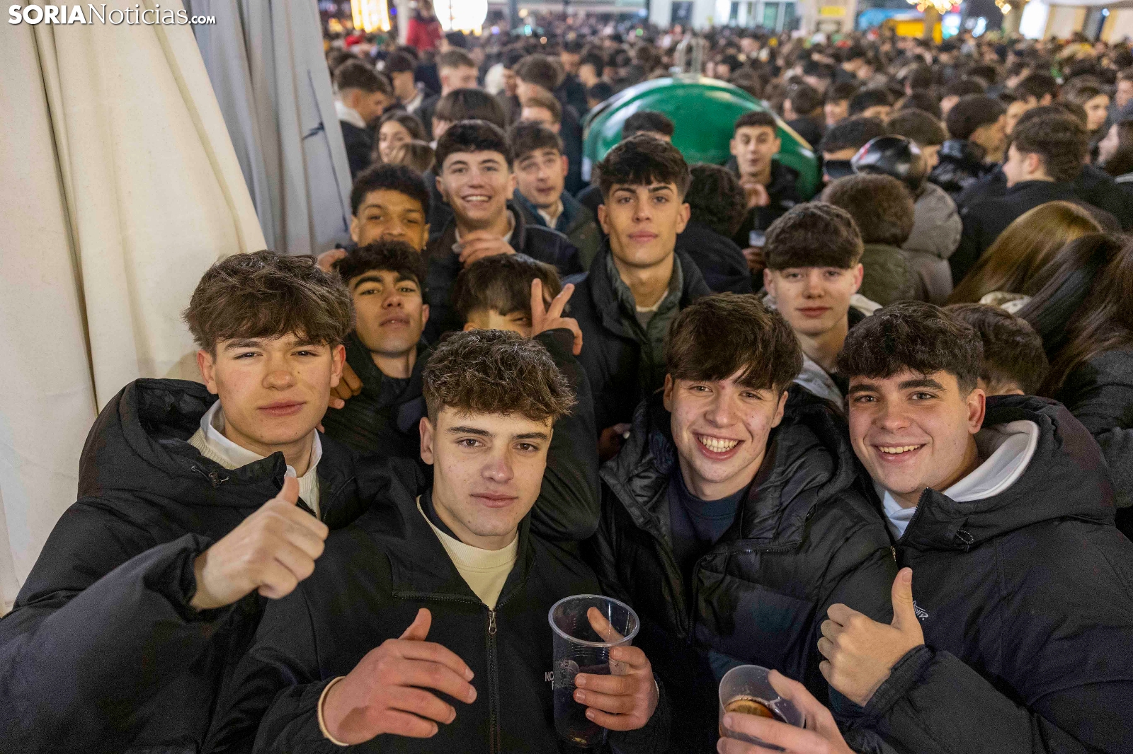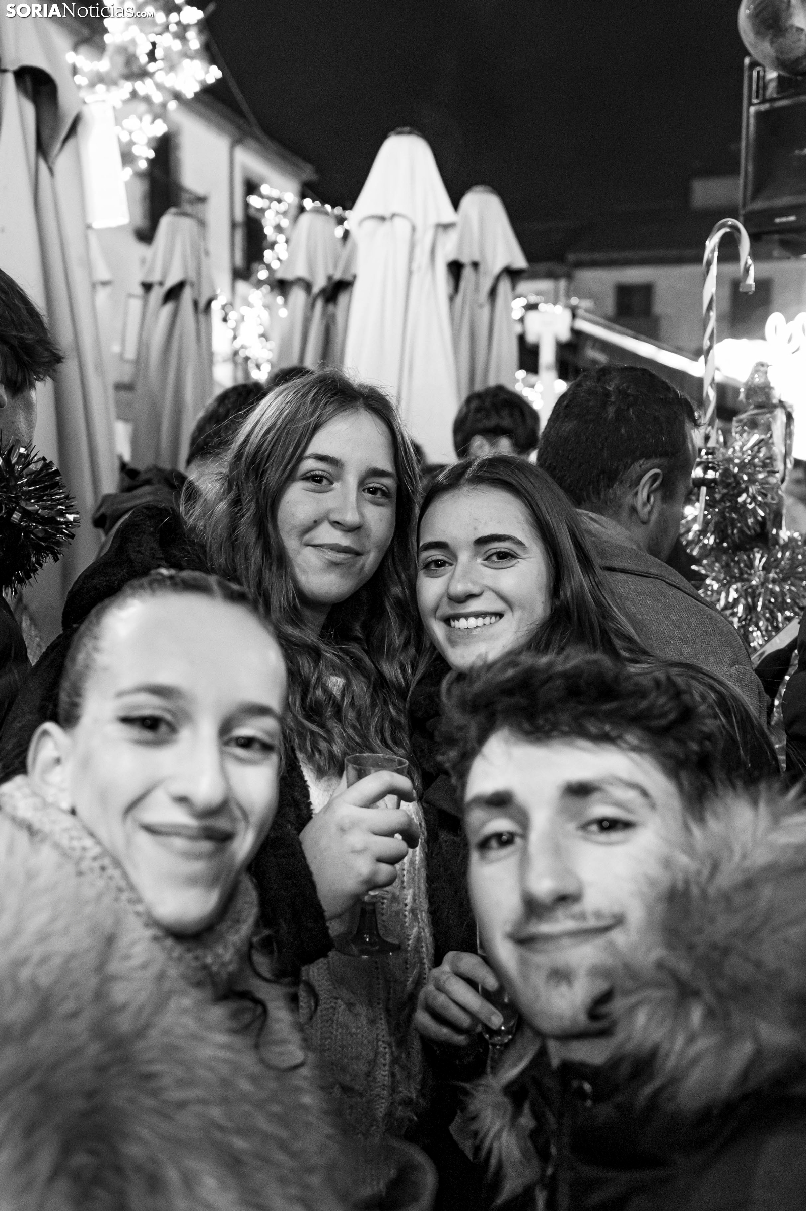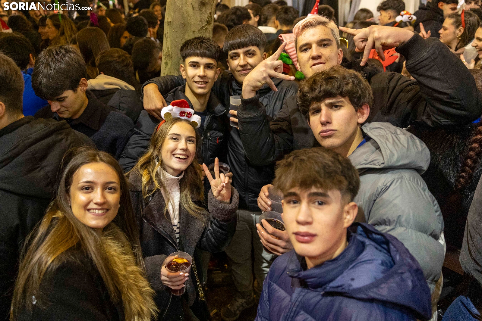 Al ritmo de los villancicos, y también de alguna que otra sanjuanera, cientos, sino miles, de sorianos han acudido al centro de la capital para pasar las últimas horas del año con amigos y compañeros antes de acudir a cenar con sus respectivas familias. Espumillón, matasuegras, gorros y todo tipo de complementos cualquier otro día considerados horteras pero hoy no solo permitidos sino celebrados. Entre botellines de cervezas y copas de champagne, Soria brinda por un 2026 llevo de salud, alegría y prosperidad. Deseo que compartimos en Soria Noticias con todos nuestros lectores y amigos.