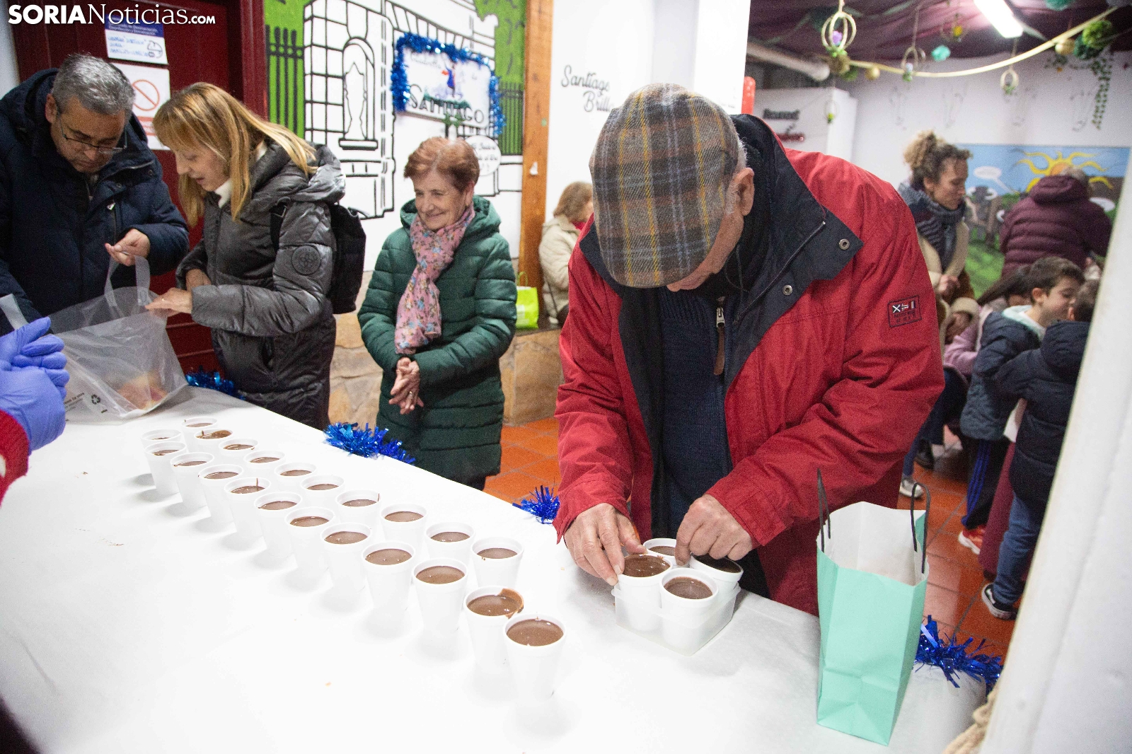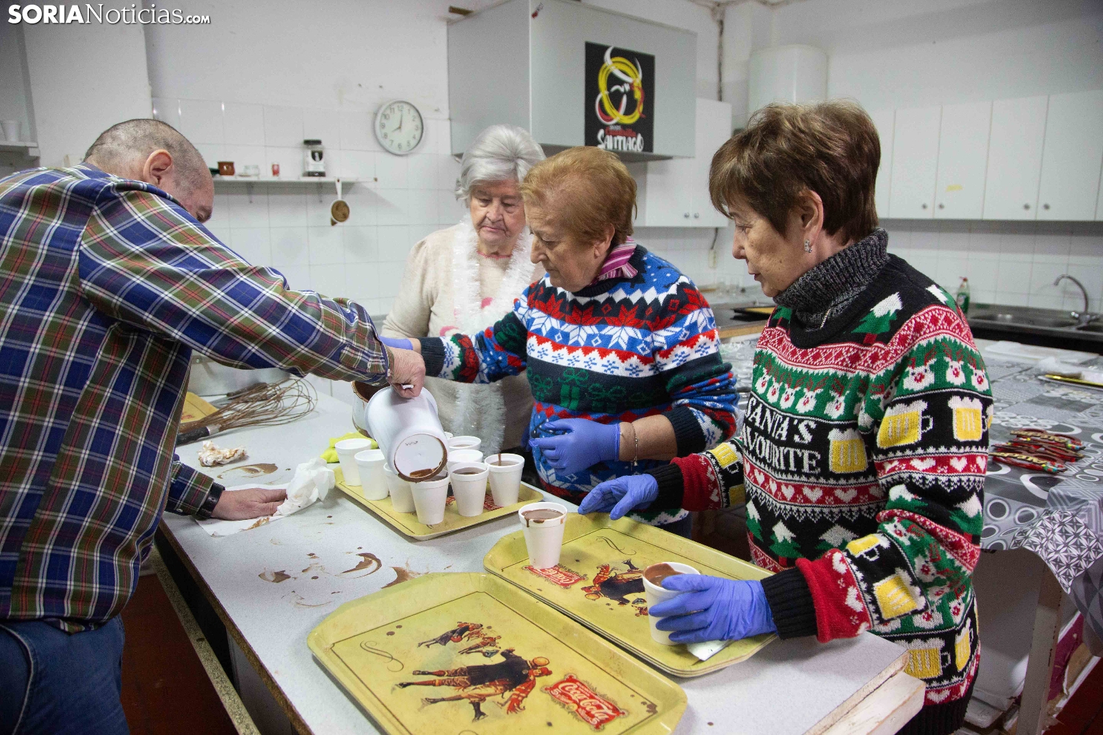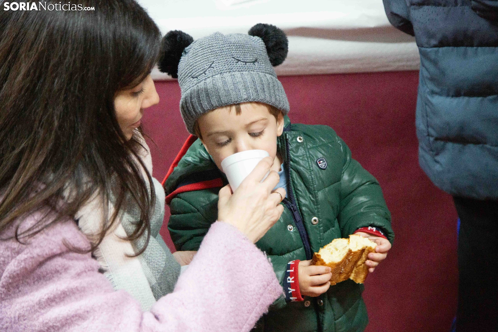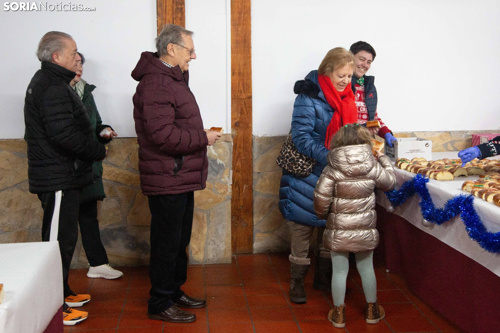 El local de la Cuadrilla de Santiago se ha convertido esta tarde de sábado en el punto de encuentro para decenas de vecinos del barrio del Calaveron que han querido compartir una jornada de convivencia previa a la festividad de la Epifanía. En un ambiente distendido y familiar, sorianos de todas las edades se han reunido para degustar una tradicional chocolatada acompañada del clásico roscón de reyes, adelantándose así a la celebración del próximo lunes. La actividad ha permitido ver disfrutar juntos a los más veteranos del barrio y a los niños, quienes viven con especial ilusión estos días previos a la llegada de Sus Majestades de Oriente, reforzando los lazos de hermandad entre los jurados y vecinos de la cuadrilla en pleno invierno.