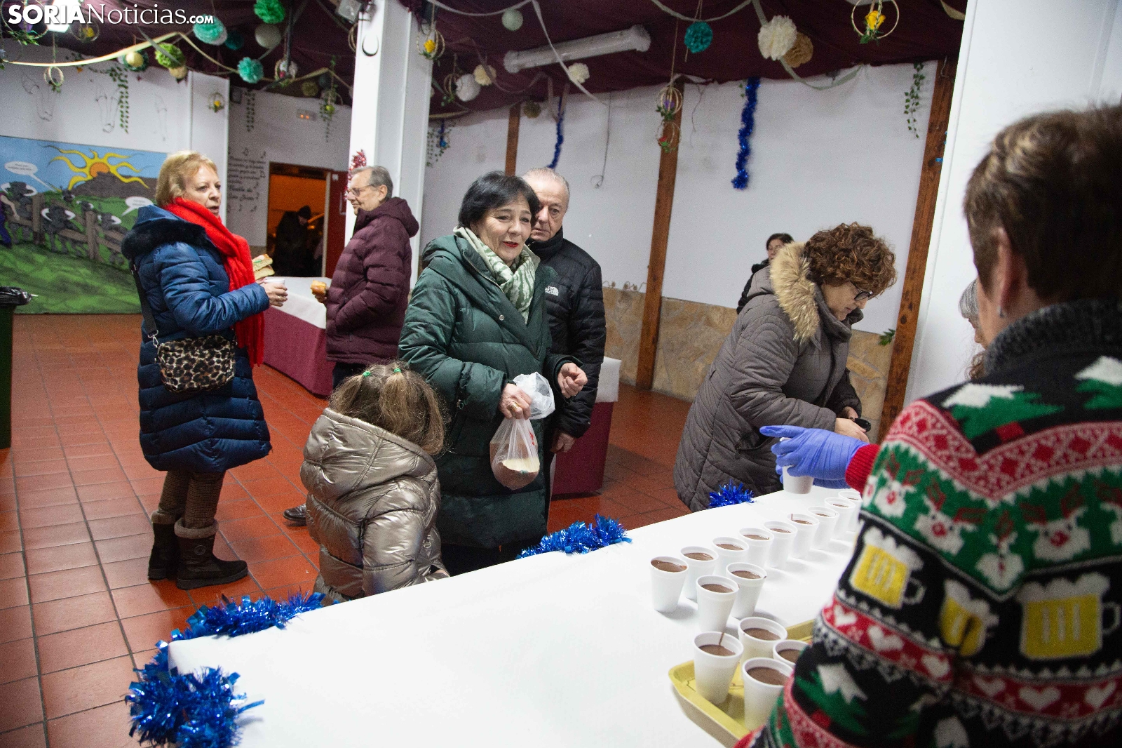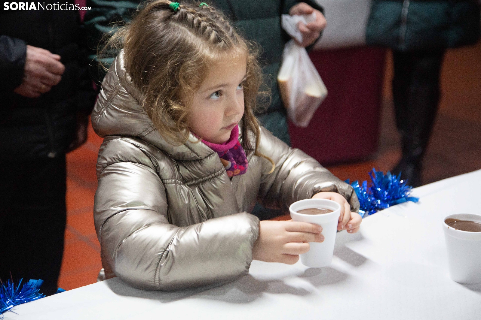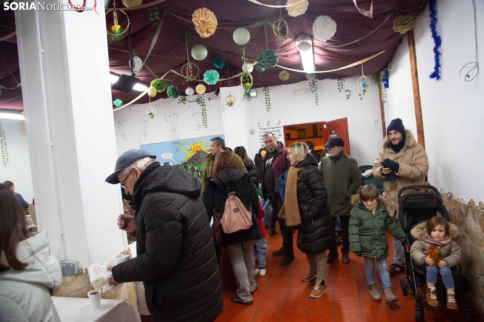 El local de la Cuadrilla de Santiago se ha convertido esta tarde de sábado en el punto de encuentro para decenas de vecinos del barrio del Calaveron que han querido compartir una jornada de convivencia previa a la festividad de la Epifanía. En un ambiente distendido y familiar, sorianos de todas las edades se han reunido para degustar una tradicional chocolatada acompañada del clásico roscón de reyes, adelantándose así a la celebración del próximo lunes. La actividad ha permitido ver disfrutar juntos a los más veteranos del barrio y a los niños, quienes viven con especial ilusión estos días previos a la llegada de Sus Majestades de Oriente, reforzando los lazos de hermandad entre los jurados y vecinos de la cuadrilla en pleno invierno.