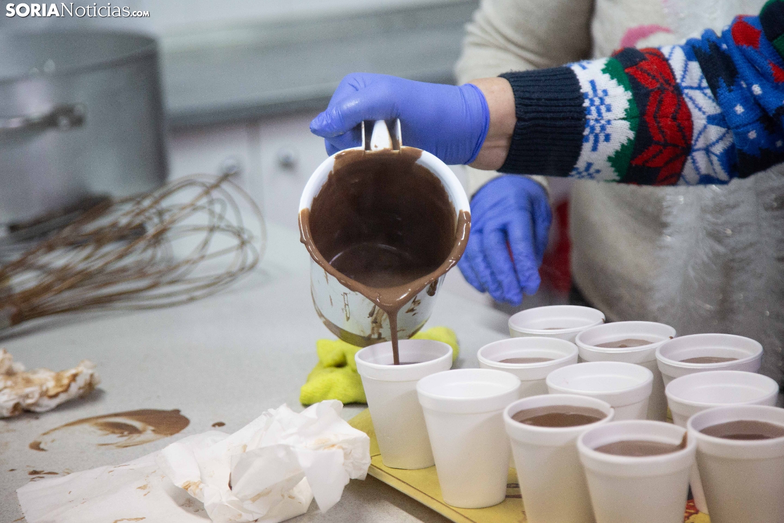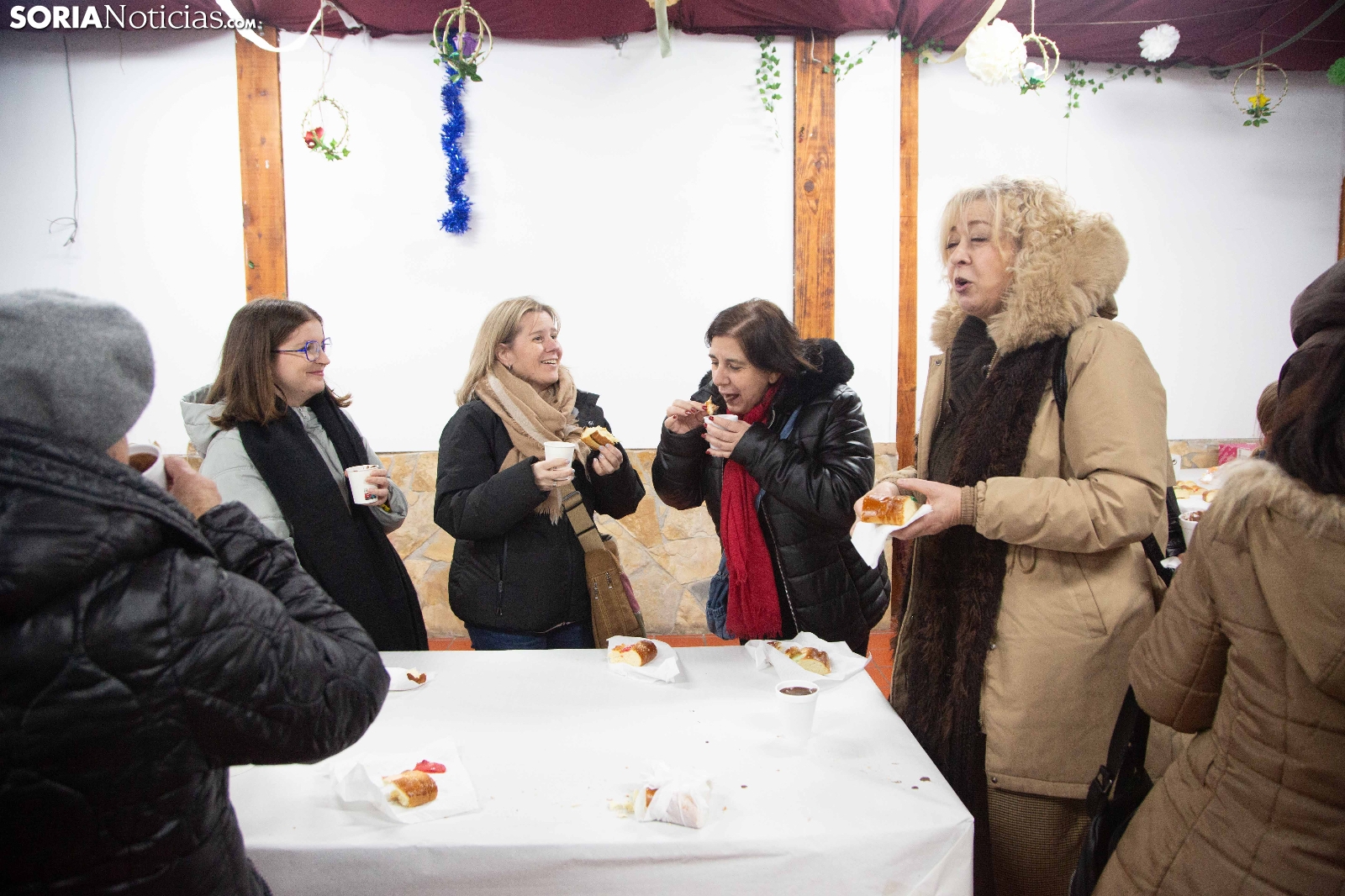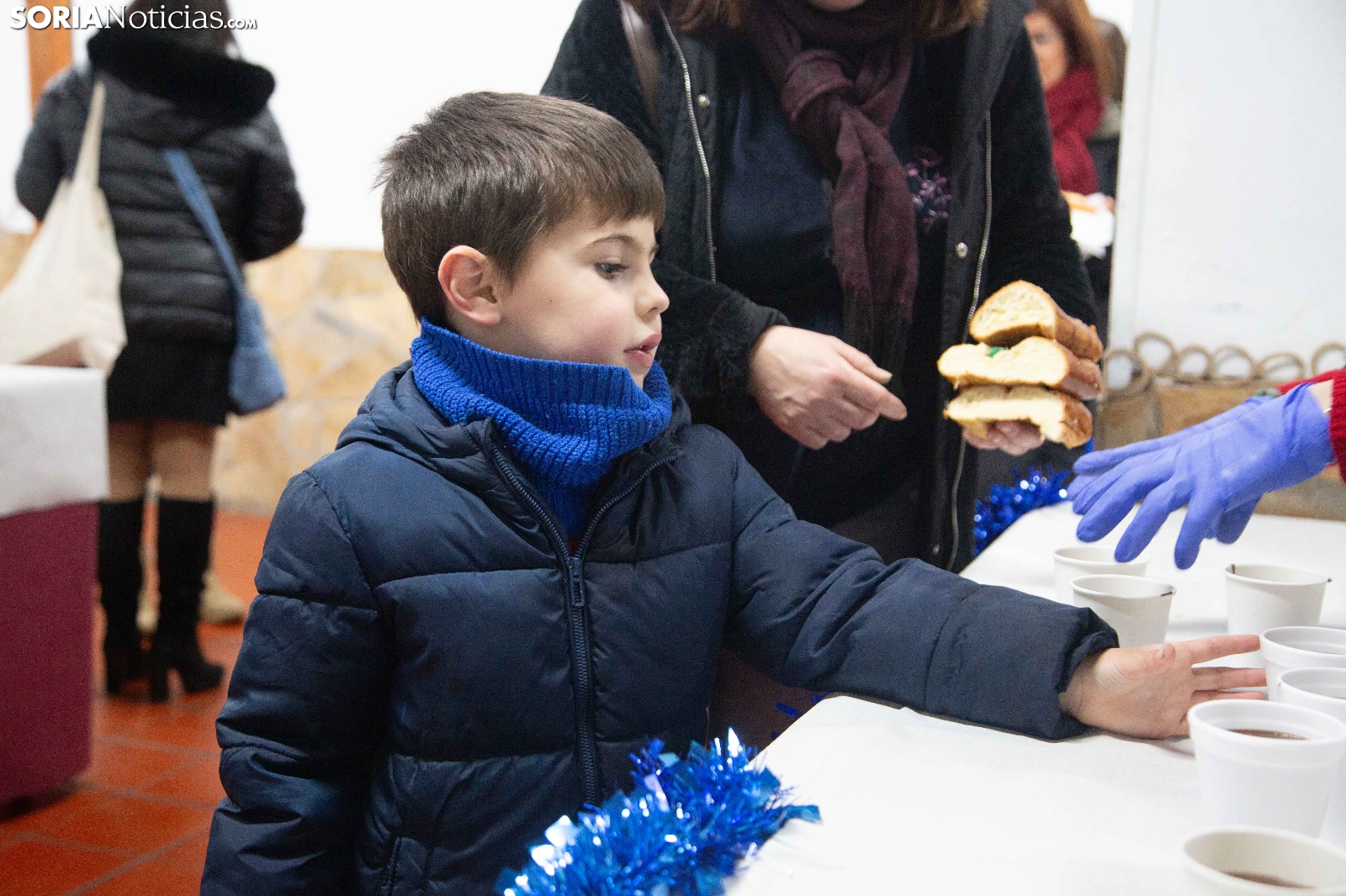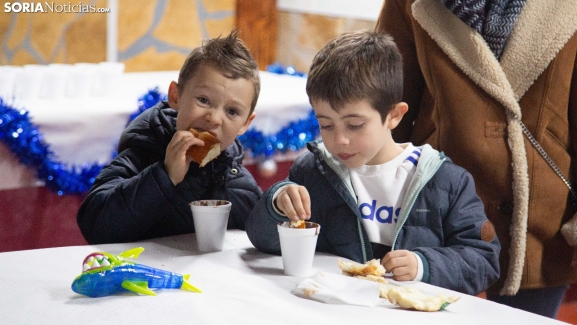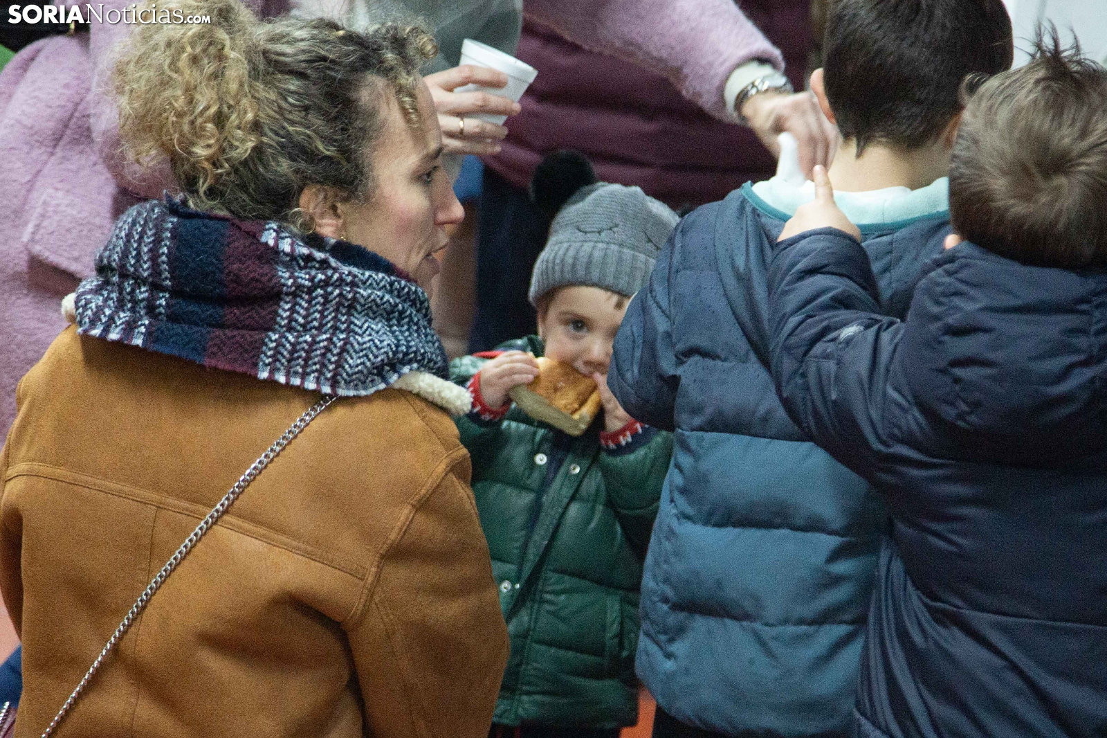 El local de la Cuadrilla de Santiago se ha convertido esta tarde de sábado en el punto de encuentro para decenas de vecinos del barrio del Calaveron que han querido compartir una jornada de convivencia previa a la festividad de la Epifanía. En un ambiente distendido y familiar, sorianos de todas las edades se han reunido para degustar una tradicional chocolatada acompañada del clásico roscón de reyes, adelantándose así a la celebración del próximo lunes. La actividad ha permitido ver disfrutar juntos a los más veteranos del barrio y a los niños, quienes viven con especial ilusión estos días previos a la llegada de Sus Majestades de Oriente, reforzando los lazos de hermandad entre los jurados y vecinos de la cuadrilla en pleno invierno.