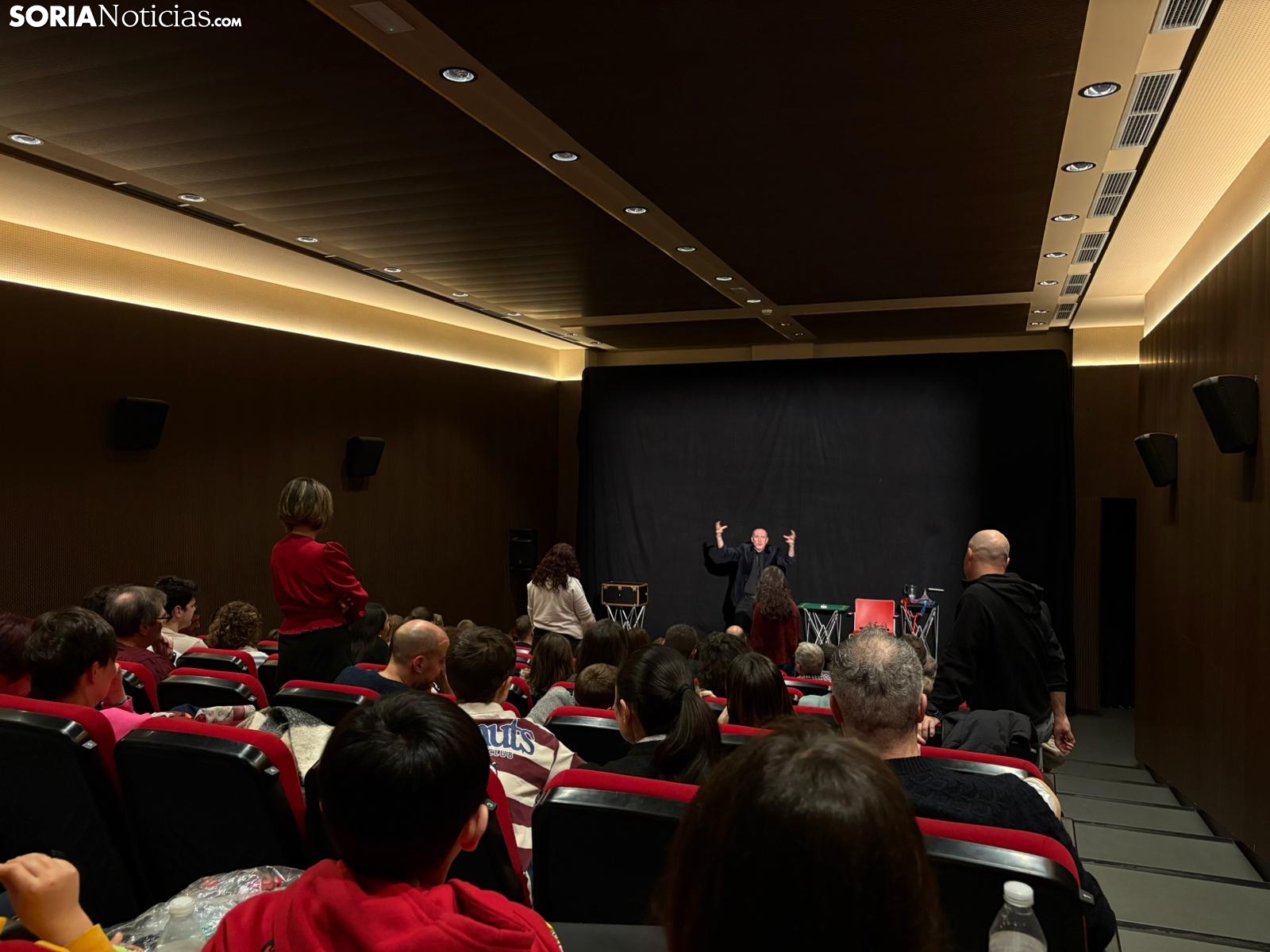La programación ha continuado en los espacios interiores, concretamente en los Cines Mercado, donde el mago Joaquín Matas ha ofrecido una propuesta caracterizada por la cercanía y la técnica depurada. Durante el espectáculo, la participación del público ha sido fundamental, convirtiendo a los espectadores en protagonistas activos de los juegos de ilusionismo. Las risas y la complicidad entre el artista y el patio de butacas han marcado la tónica general de una función que ha colgado el cartel de completo en la sala soriana.