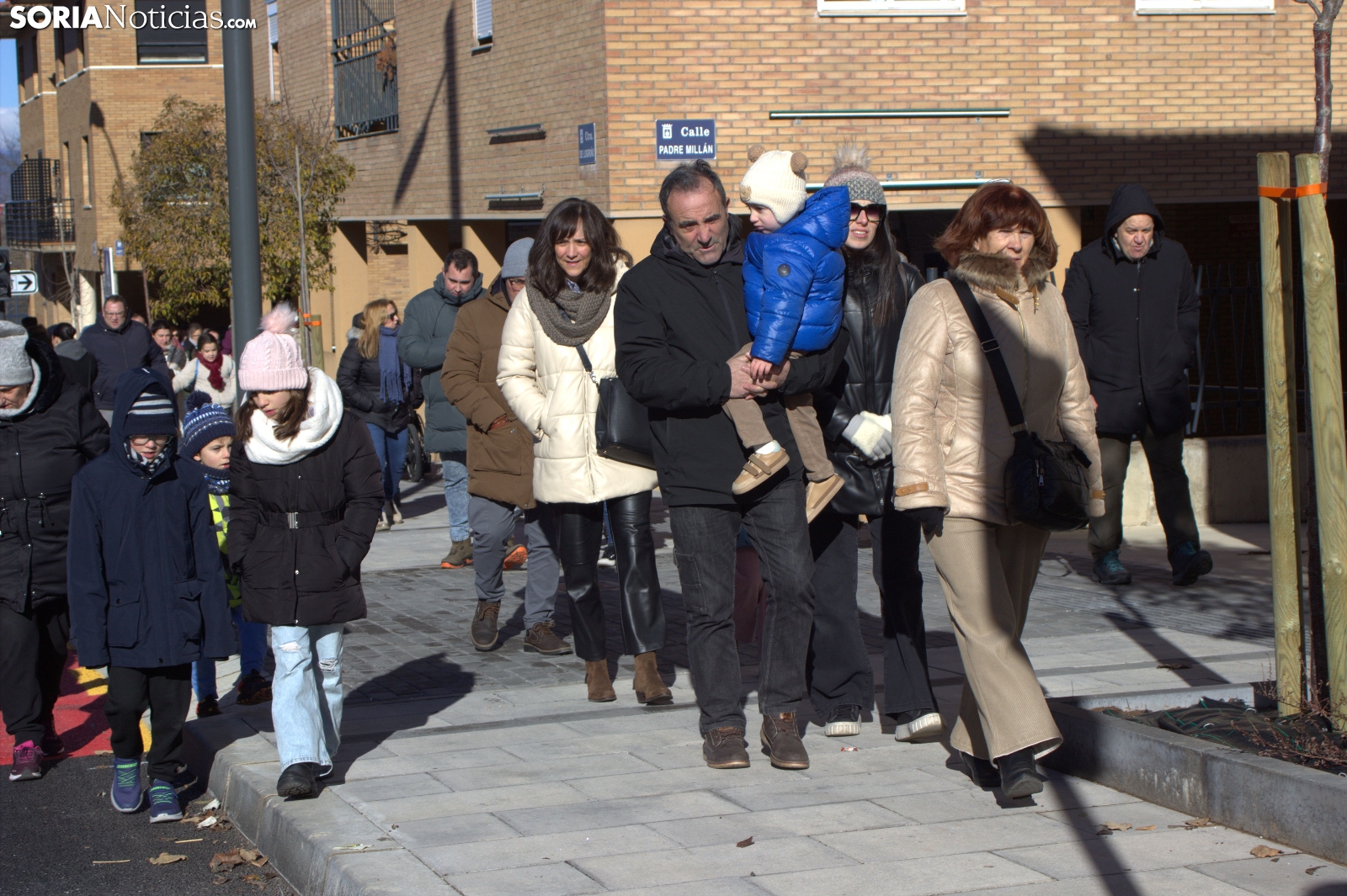 En su apretada agenda de hoy, los Reyes Magos han querido volver a cumplir con su compromiso visitando la sede de ASPACE Soria antes de la cabalgata de esta noche. Centenares de personas han querido recibir a Sus Majestades en su llegada que ha tenido una gran acogida con grupos de gaitas y de charanga también. Diversos personajes infantiles se han sumado igualmente a una nutrida comitiva. Al final del recorrido, chocolate caliente para los congregados. Un mediodía soleado aunque con bajas temperaturas, no así en los corazones.