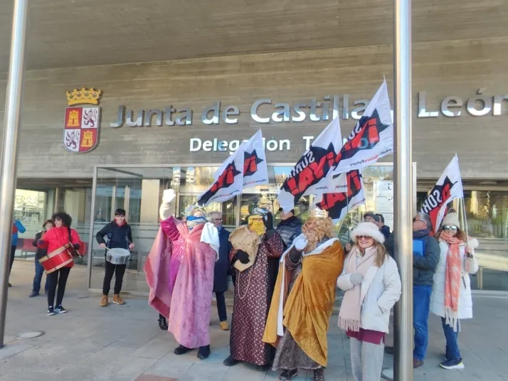 Es ya un clásico de la Navidad soriana. Los Reyes Magos de Soria ¡Ya! han traído carbón a la Junta de Castilla y León en la mañana de este 5 de enero. Hasta la delegación del ejecutivo autonómico se han desplazado los 3 personajes, acompañados de los procuradores Ángel Ceña y Vanessa García y de una veintena de adeptos a la causa, entre ellos varios gaiteros.