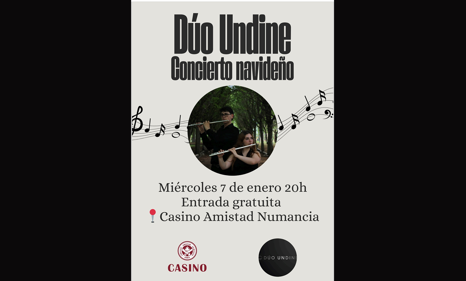 La actividad cultural no se detiene en el Círculo Amistad Numancia tras la festividad de Reyes. Para la jornada de este miércoles, día 7 de enero, la entidad ha programado una actuación musical que tendrá lugar en el salón Gerardo Diego. La cita arrancará a las 20:00 horas y estará protagonizada por el Dúo Undine, una formación joven que acercará al público soriano un repertorio acorde a las fechas que se acaban de despedir.