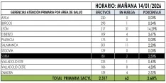 El mapa de la protesta en la región muestra una incidencia muy desigual, siendo León la provincia donde el paro se ha dejado sentir con mayor intensidad, alcanzando un 14,2 % con 31 médicos ausentes. En el extremo opuesto se sitúan Ávila, Palencia y Segovia, donde ningún facultativo ha secundado la huelga, manteniendo sus plantillas al completo. Por su parte, Burgos ha registrado un 0,34 %, Valladolid Este un 0,43 %, Salamanca un 2,2 %, Zamora un 2,5 %, El Bierzo un 3,6 % y Valladolid Oeste un 4,3 %.