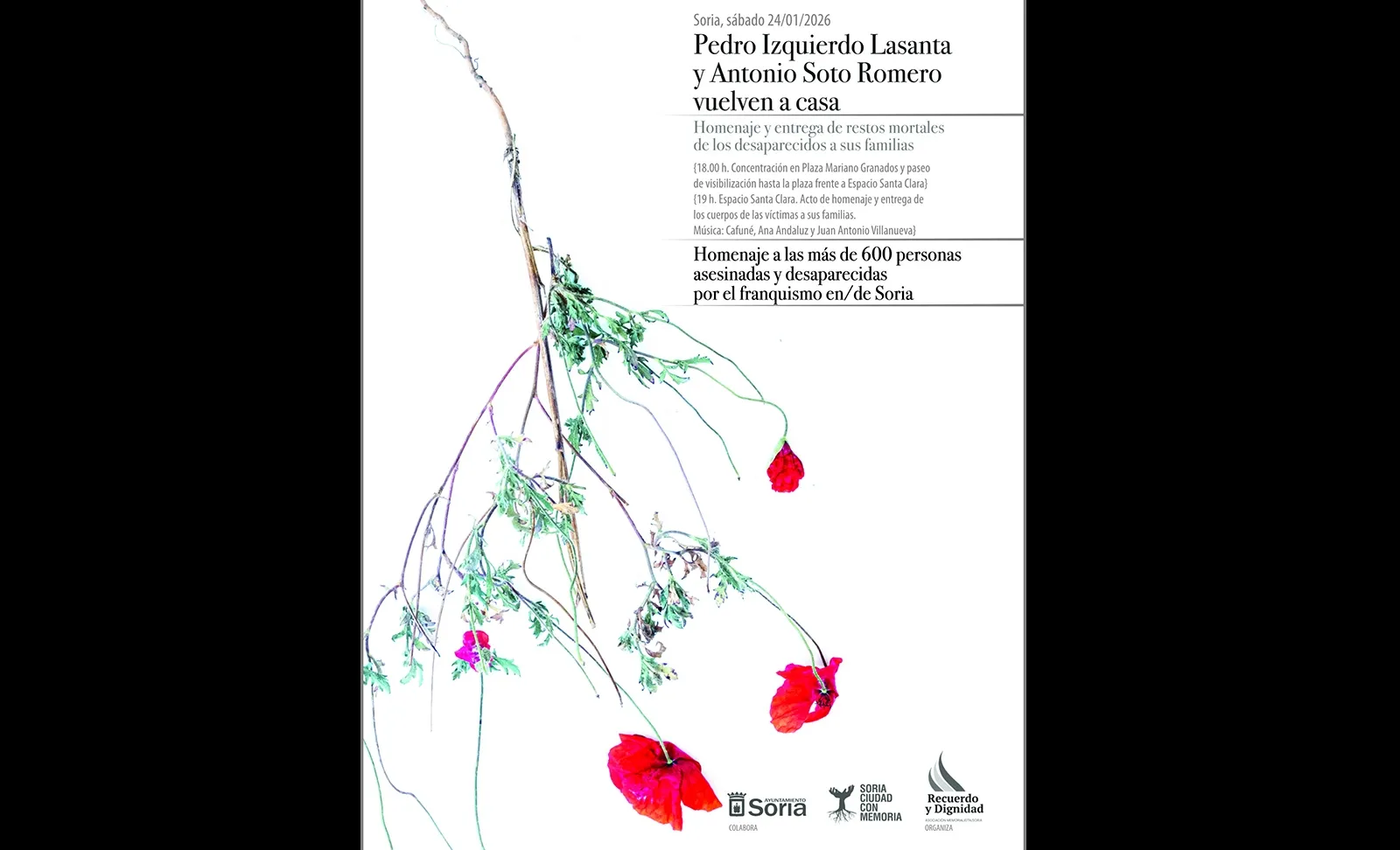 La capital soriana acoge el día 24 un acto de reparación que incluye una marcha desde Mariano Granados hasta el Espacio Santa Clara. La cita sirve también para recordar a las más de 600 personas represaliadas en la provincia.