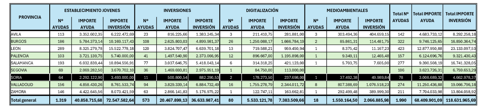 A lo largo de 2025 la Consejería de Agricultura, Ganadería y Desarrollo Rural ha abonado a lo largo un total de 3.008.689,32 euros en ayudas dirigidas a la incorporación de jóvenes agricultores y ganaderos y a la mejora y modernización de explotaciones agraria en Soria. En el total de Castilla y León el montante asciende a 68,4 millones de euros, con un grado de ejecución un 21% superior al año anterior.