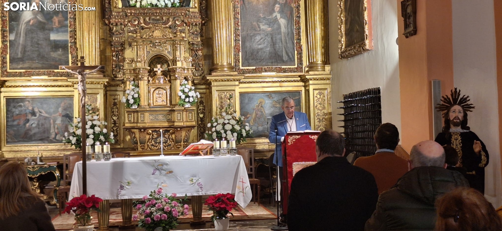 Uno de los anuncios más relevantes hechos este sábado fue la incorporación de nuevo patrimonio artístico y devocional para la Semana Santa soriana. El 22 de febrero será una de las fechas centrales de este aniversario. Para esa jornada la agrupación ha previsto la llegada de nuevas imágenes que completarán su comitiva procesional. "Vamos a bendecir las tres tallas de los apóstoles durmientes: San Pedro, Santiago y Juan, que formarán parte de nuestro paso titular", detallaba el hermano mayor. Estas imágenes, de tamaño natural, han sido adquirir a un taller de imaginería y con las que "completamos la escena de la Oración en el Huerto" que da nombre a la hermandad. El acto culminará con un concierto en la iglesia del Carmen.
