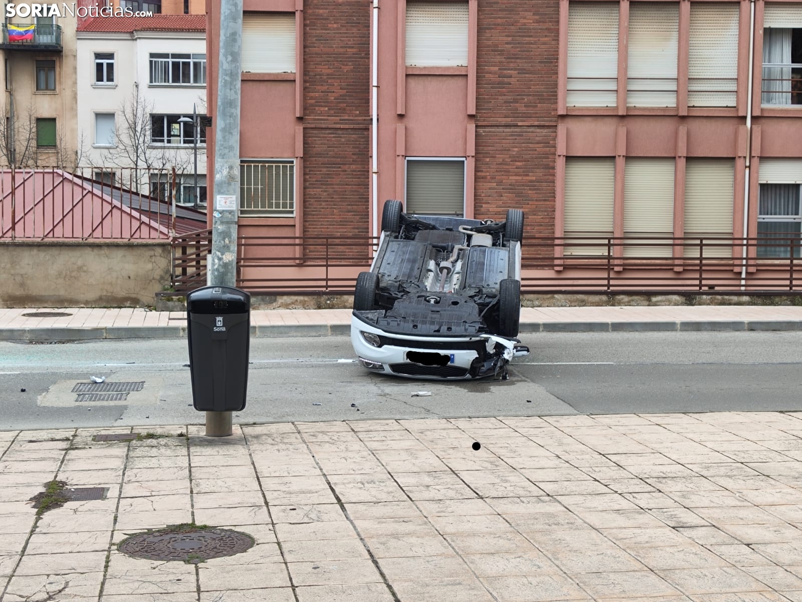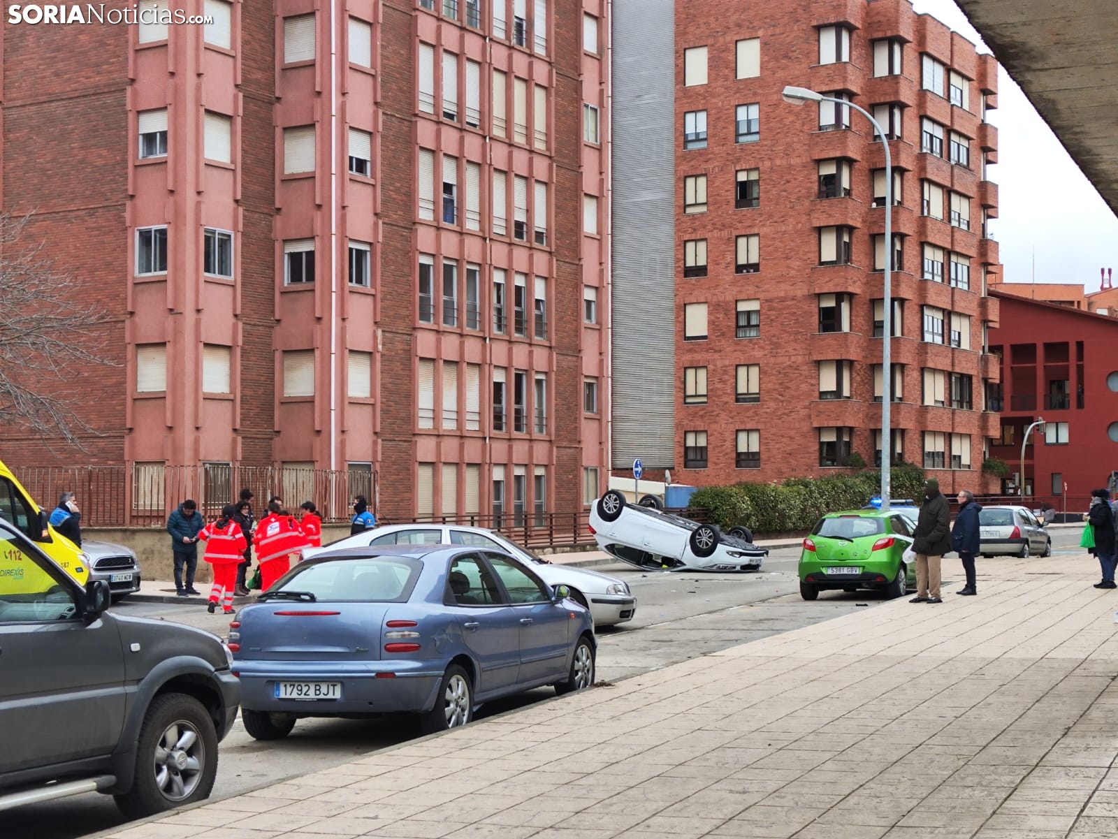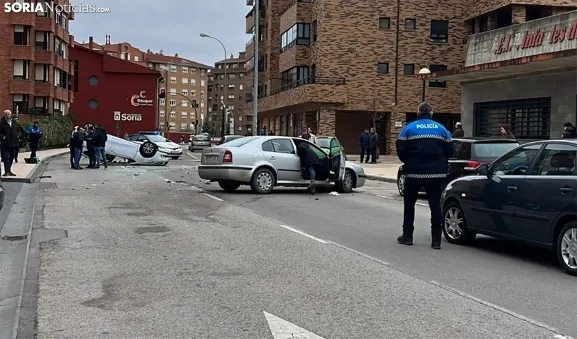 En torno a las doce del mediodía de este miércoles, 21 de enero, se producía un siniestro de circulación en el casco urbano de Soria, concretamente en la avenida Duques de Soria a la altura del CEIP Infantes de Lara. En el accidente se han visto involucrados dos turismos, uno de los cuales volcaba sobre la calzada.