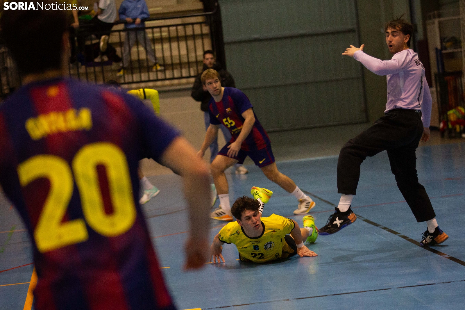 El Balonmano Soria ha perdido esta tarde por 28-30 ante el filial del F.C. Barcelona. A pesar del enorme encuentro de los de Oriol Castellarnau, llegando a estar por delante en los minutos finales, varias perdidas y alguna que otra decisión arbitral discutible en los minutos finales han desnivelado la balanza en favor de los blaugranas. El San Andrés ha presentado una entrada y un ambiente espectacular que ha recordado al de las grandes noches.