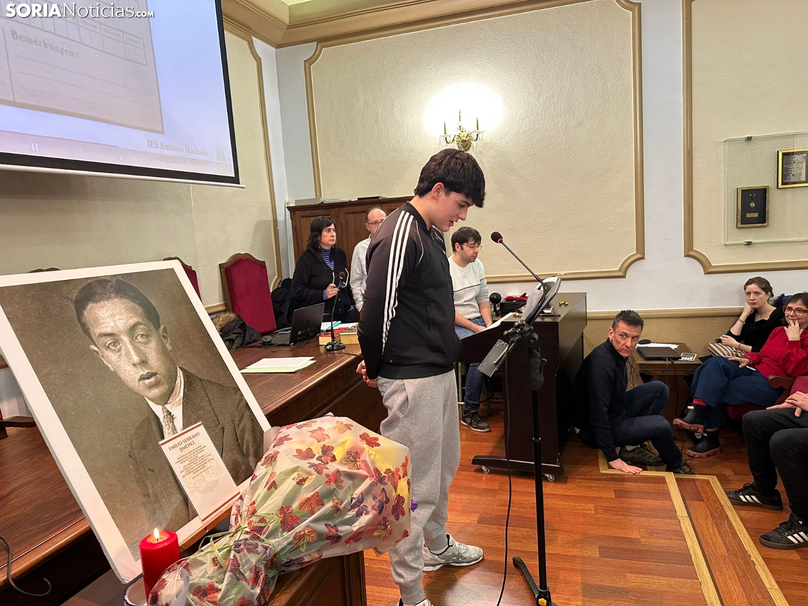 Soria ha vuelto a cumplir con su cita anual con la historia y la memoria democrática. En un acto cargado de simbolismo, la capital ha honrado a las víctimas del Holocausto, poniendo el foco especialmente en los deportados sorianos que sufrieron el horror de los campos de concentración nazis. La ceremonia, que inicialmente estaba prevista en la Plaza del Vergel, se ha trasladado al Salón Rojo del Instituto Antonio Machado debido a las inclemencias meteorológicas, tal y como han explicado los organizadores al inicio del evento.