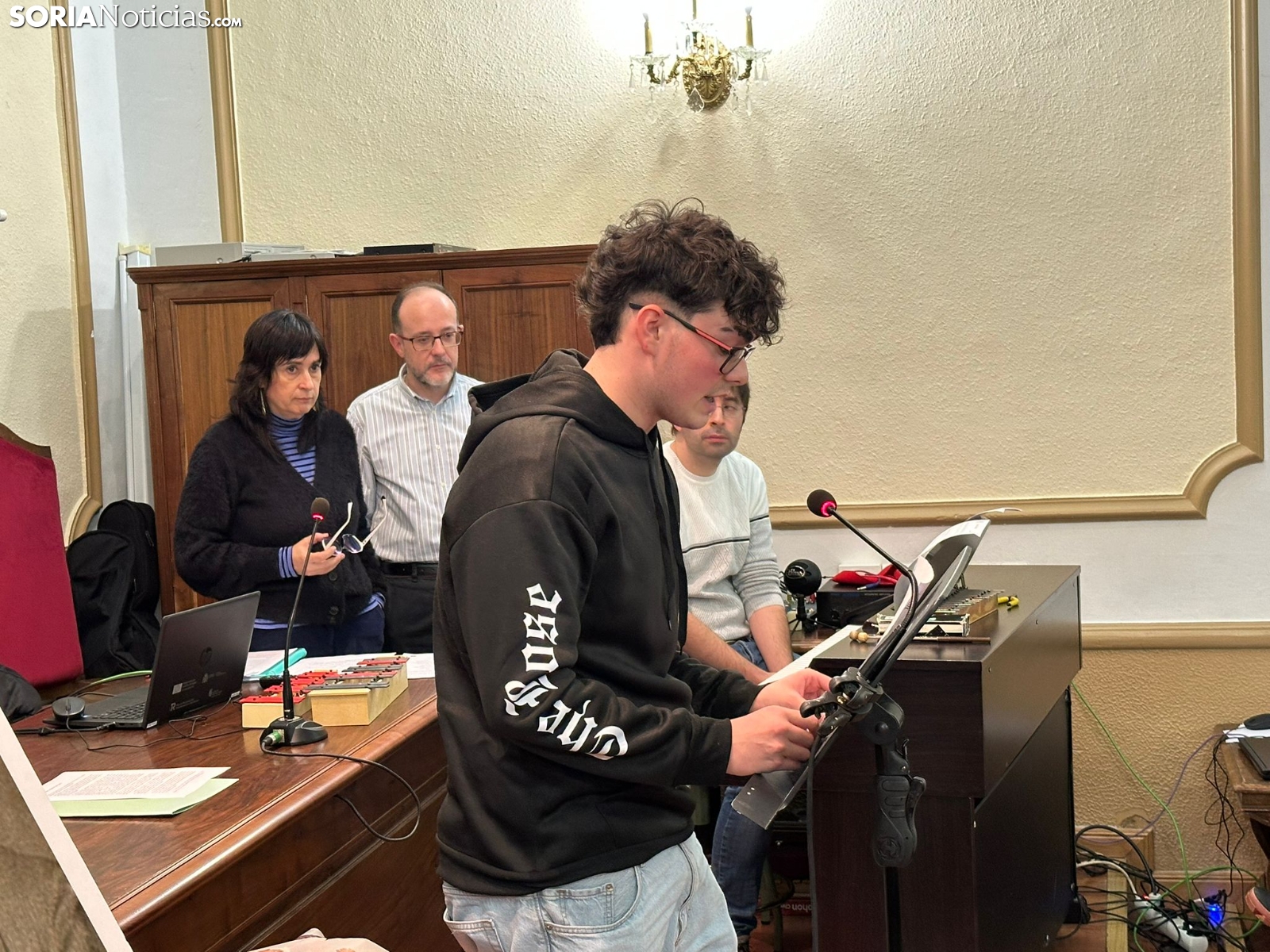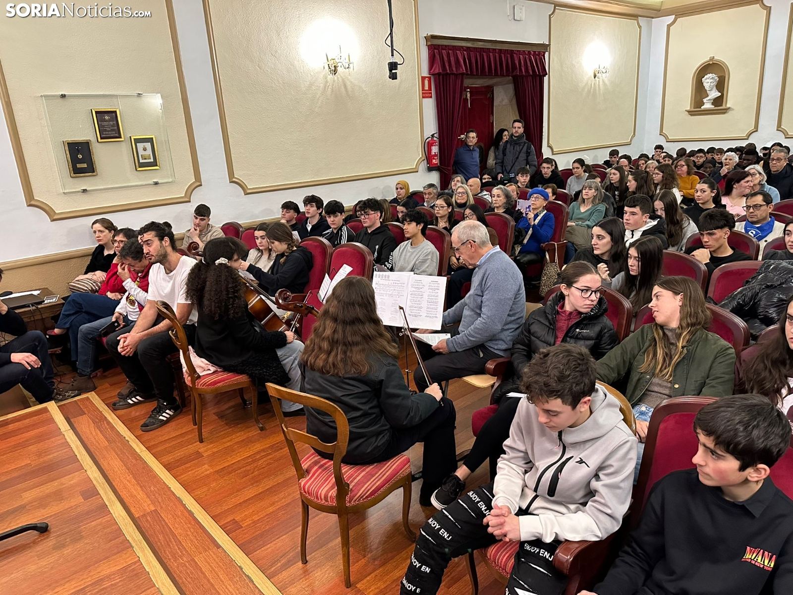 Hoy hace 81 años que el Ejército Rojo, de la Unión Soviética, liberó el campo de concentración de Auschwitz. En conmemoración al paso que dieron los soviéticos para poner fin al Holocausto, Soria homenajea a sus víctimas en dicha barbarie cada 27 de noviembre. Este año, el homenaje se ha hecho en el Salón Rojo del IES Antonio Machado, con los alumnos de este instituto y del Castilla recitando poemas y tocando piezas musicales.