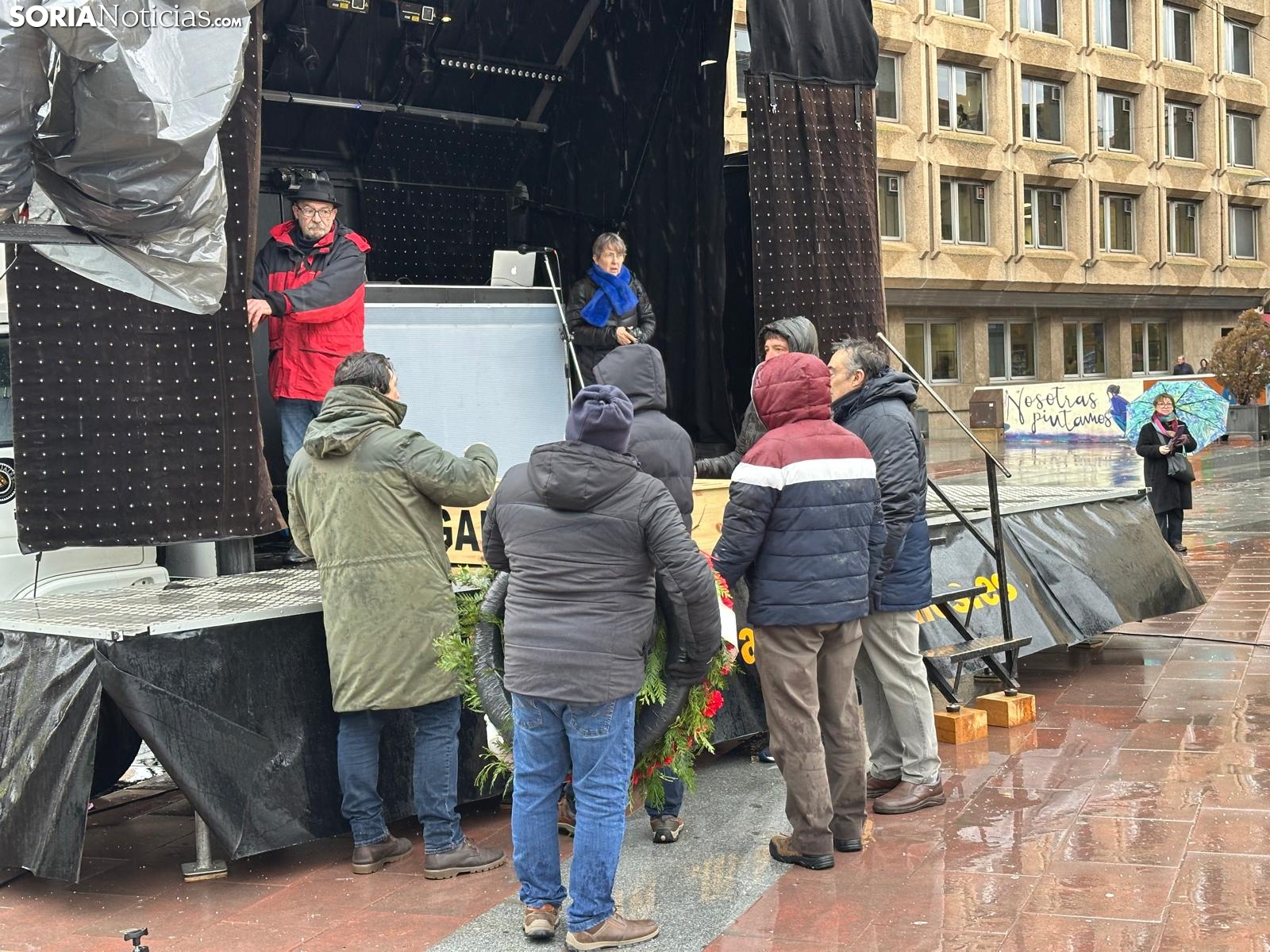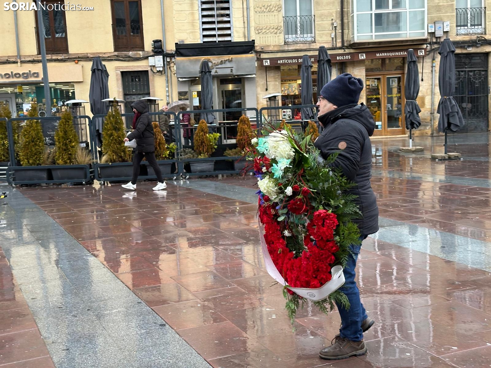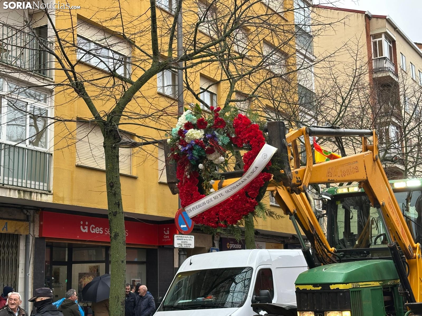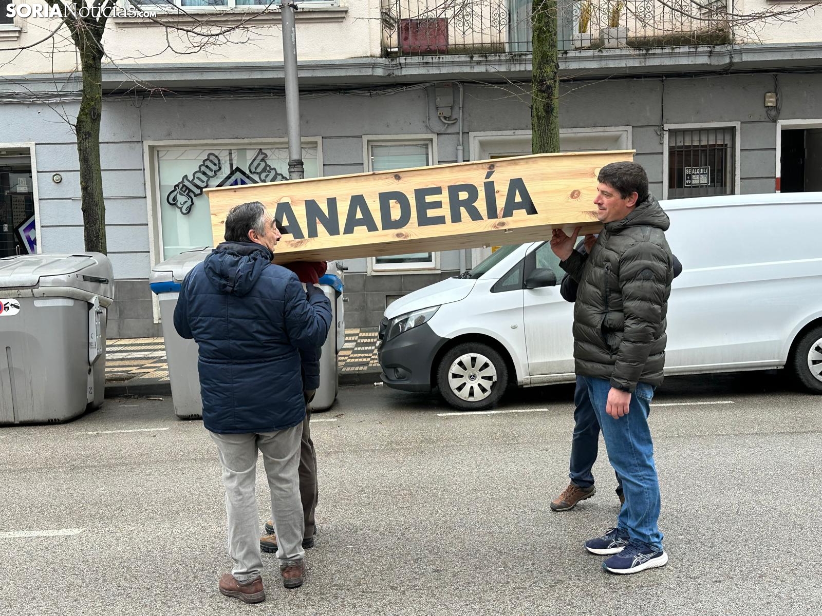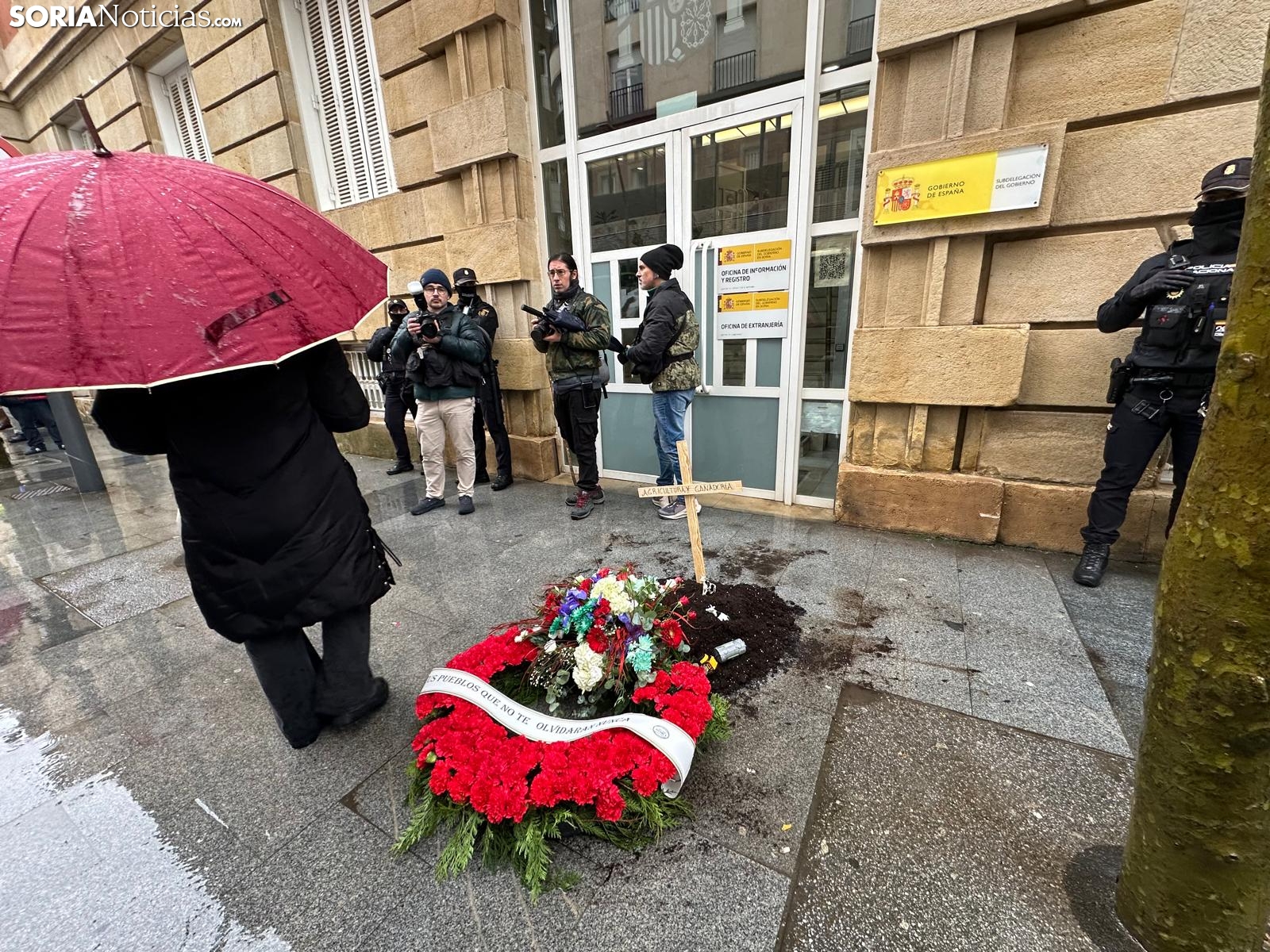 Los agricultores y ganaderos han dicho basta esta mañana en la capital de la provincia. A partir de las 12 de la tarde se han congregado en el inicio de la avenida Mariano Vicén para mostrar su descontento con los acuerdos comerciales firmados por la Unión Europea con Mercosur y otros contratos internacionales que perjudicarán a todos aquellos que forman parte del sector primario en Europa. Tractores y una masa humana han desfilado a lo largo de la avenida hasta llegar a la plaza Mariano Granados. Los silbatos que portaban los viandantes, el claxon de los tractores y un sonido que emulaba a una sirena, dando la voz de alarma, desde un megáfono han sido la sintonía que ha acompañado a la procesión, en la que se simulaba el funeral de la ganadería y la agricultura. En su trayecto han hecho escala en la Delegación Territorial de la Junta de Castilla y León y en la Subdelegación del Gobierno. En ambas paradas, han vertido frente a la puerta de las instituciones un saco de abono y han clavado una cruz de madera, emulando las tumbas de doña Agricultura y Ganadería. Además, han dejado en ambas instituciones cartas dirigidas a Alfonso Fernández-Mañueco y Pedro Sánchez en las que reflejan sus preocupaciones y piden unas mejores condiciones para el sector. Ya en Mariano Granados, ha tenido lugar la lectura del manifiesto y se ha depositado el féretro, con una vistosa corona de flores, para que todo el mundo pueda ver a la difunta Agricultura y Ganadería de Europa.