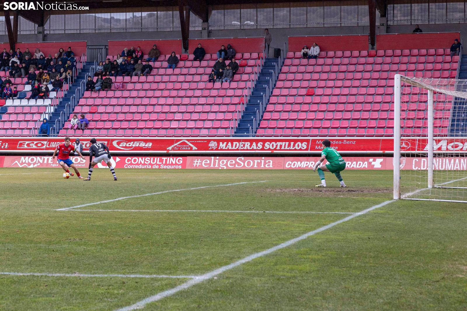 El conjunto de Ángel Rodríguez no ha sido capaz de ganar en casa al penúltimo clasificado, el Lealtad, y ha perdido por 0-1. El sueño del ascenso directo parece que ya se ha esfumado y la presencia en el play off cada vez está más cara. Los aficionados desplazados al campo, donde han combatido al frío, se van a casa con un sabor de boca amargo, y no es para menos, pues los últimos 7 partidos del Numancia están siendo dignos de estudio, con tres derrotas en casa. Los rojillos podrían caer a la novena posición, en función de lo que haga el Ávila esta tarde. El liderato les queda a nueve puntos (estando el Fabril y el Vetusta con un partido menos) y la promoción a tres (misma situación para Ourense y Salamanca).