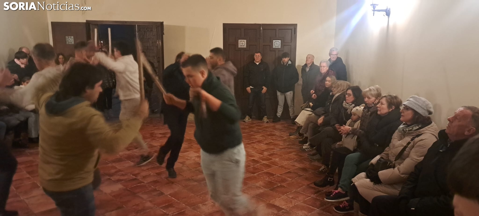 Como es tradición, los danzantes del paloteo regalaban a los vecinos el avance de este baile que se sucederá en dos ocasiones estos días, hoy y mañana. Una puesta en escena era celebrada en las ermitas de la Virgen de la Vega y en la de San Blas, para concluir en el templo parroquial.